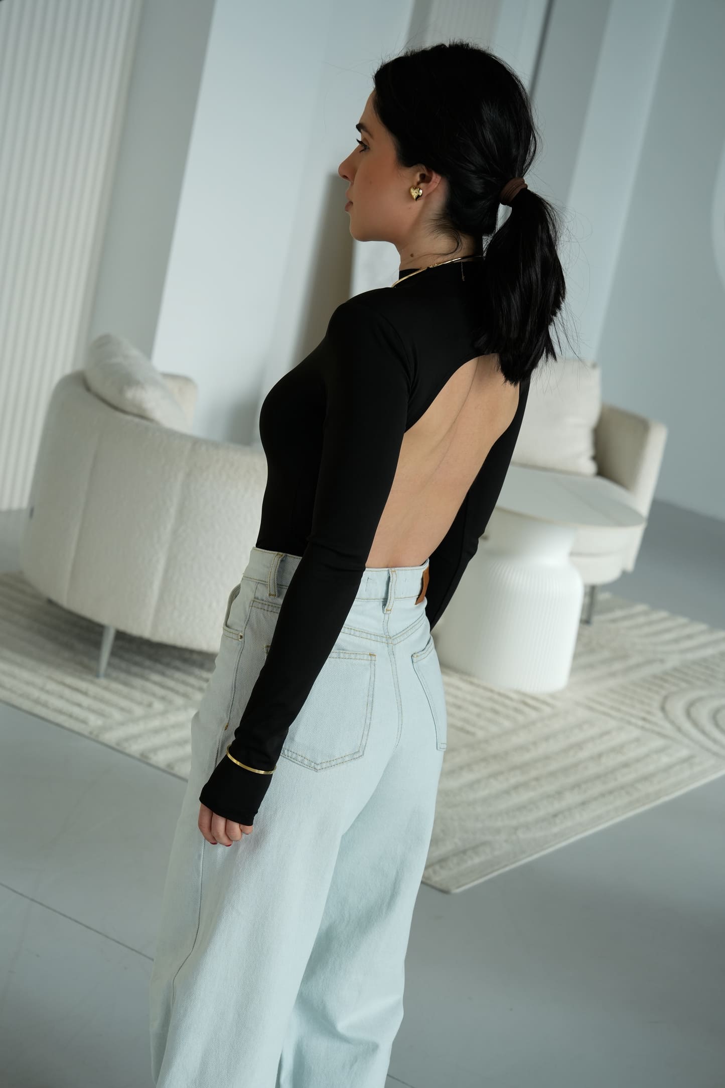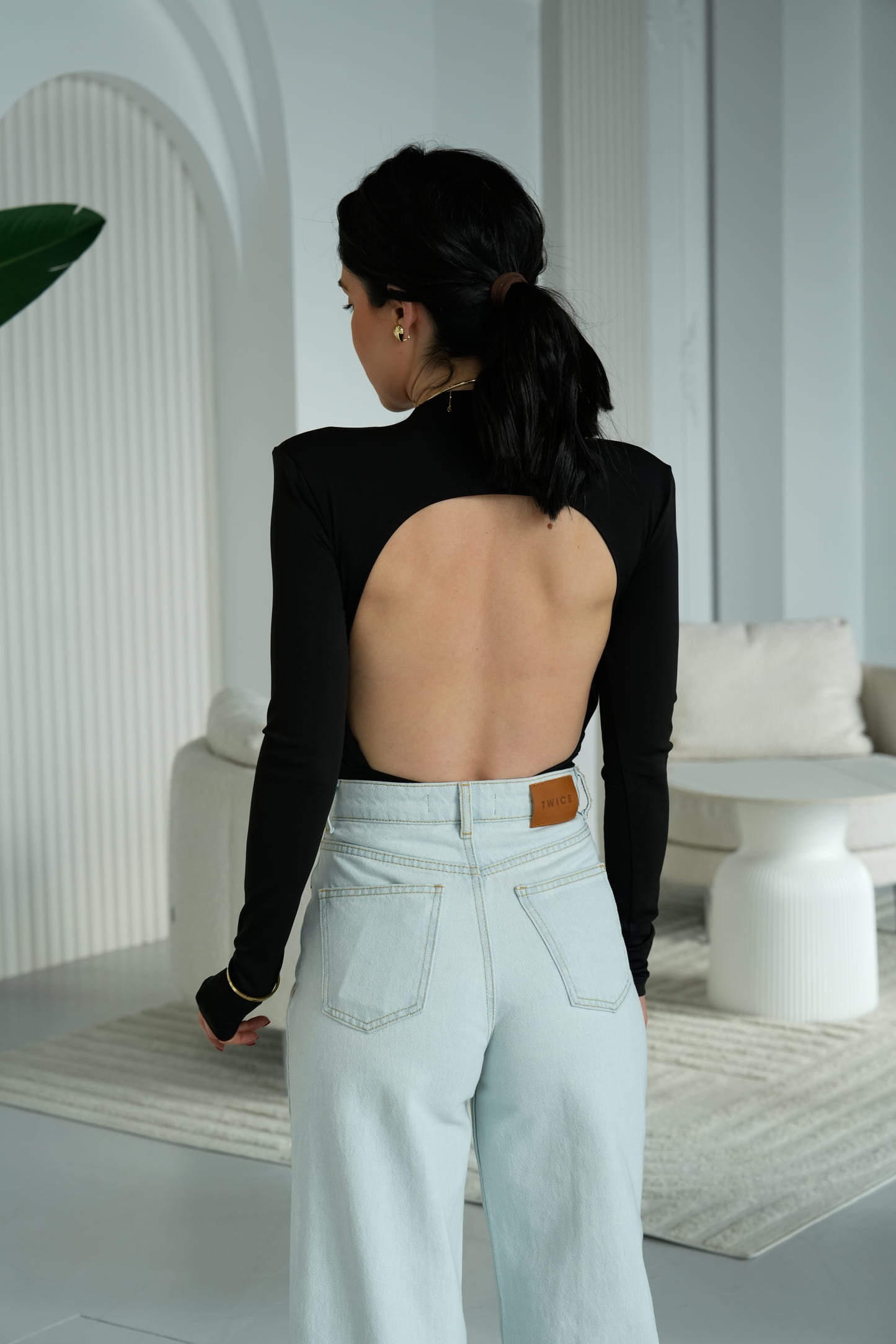 Головна деталь — відкрита спинка, яка виглядає контрастно до стриманого переду. Вона додає образу жіночності та робить боді акцентним елементом навіть у мінімалістичних поєднаннях.