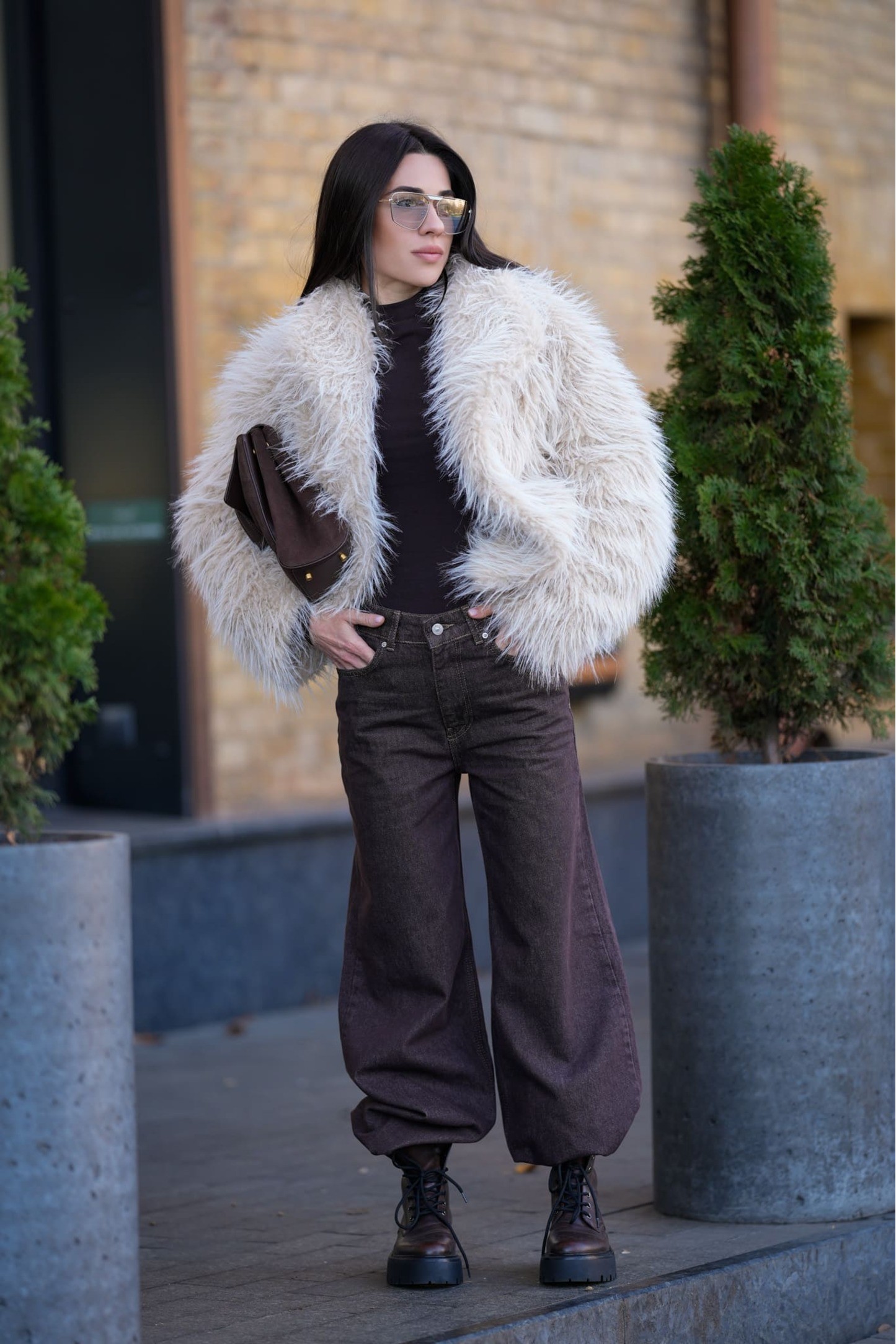 Такі джинси легко поєднуються з базовими гольфами, об’ємними светрами, хутряними шубками або шкіряними куртками — ідеальні для модних міських образів.