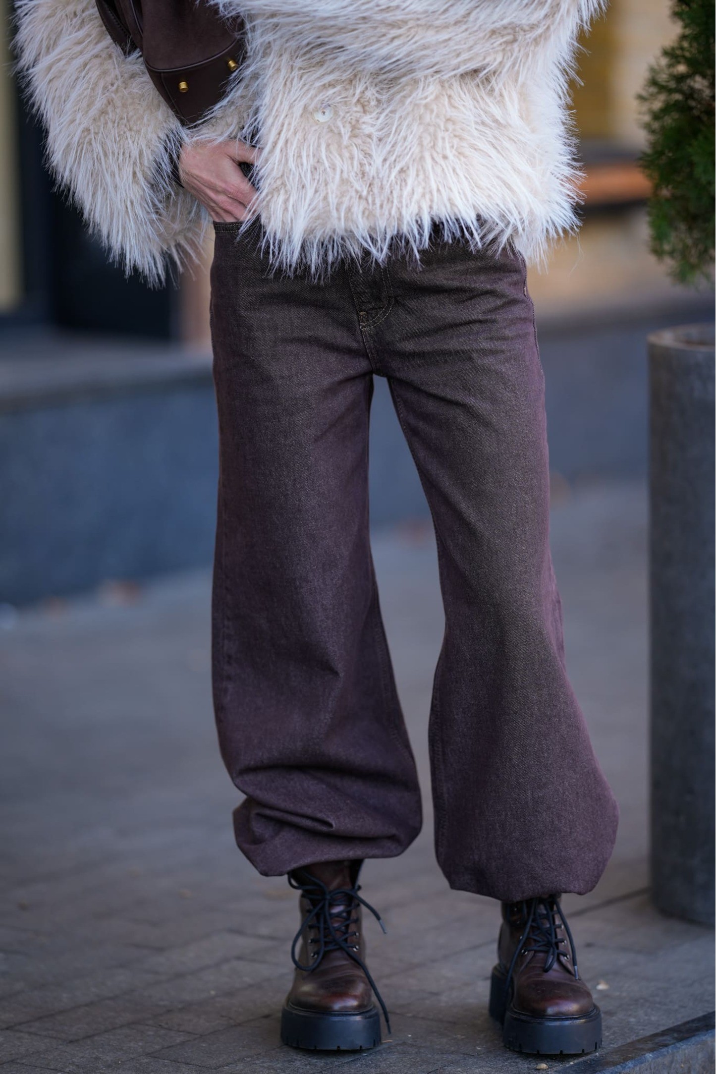 Джинси Coffee Wide виконані з щільного деніму насиченого кавового відтінку. Мають стильний широкий крій по всій довжині, що створює сучасний силует та комфорт у русі. Тканина тримає форму, не розтягується, завдяки складу 100% cotton.