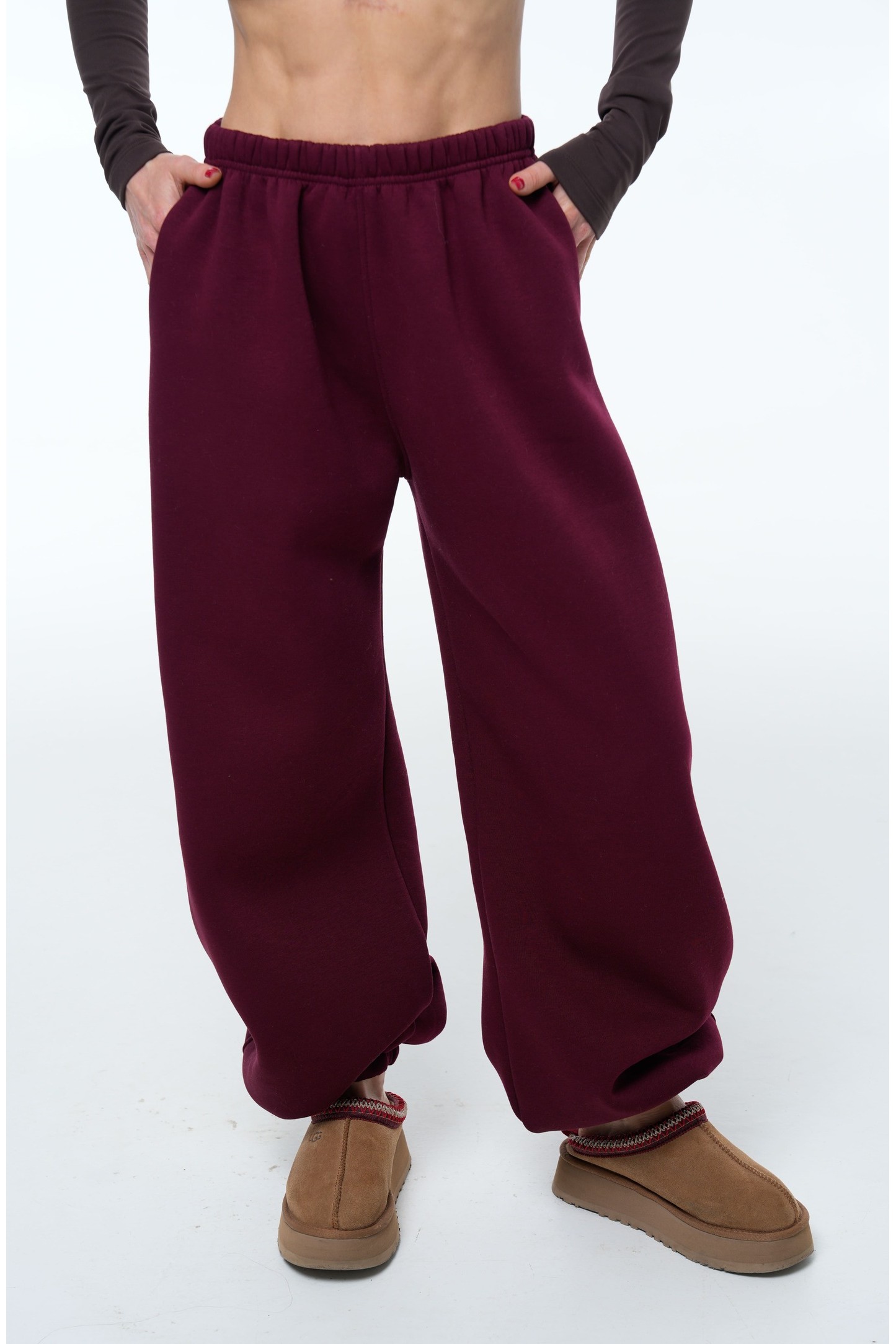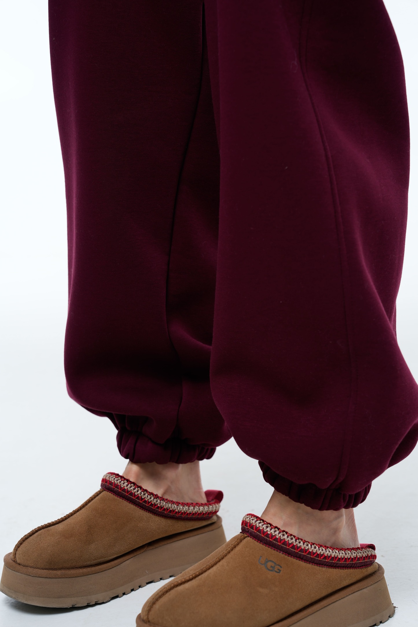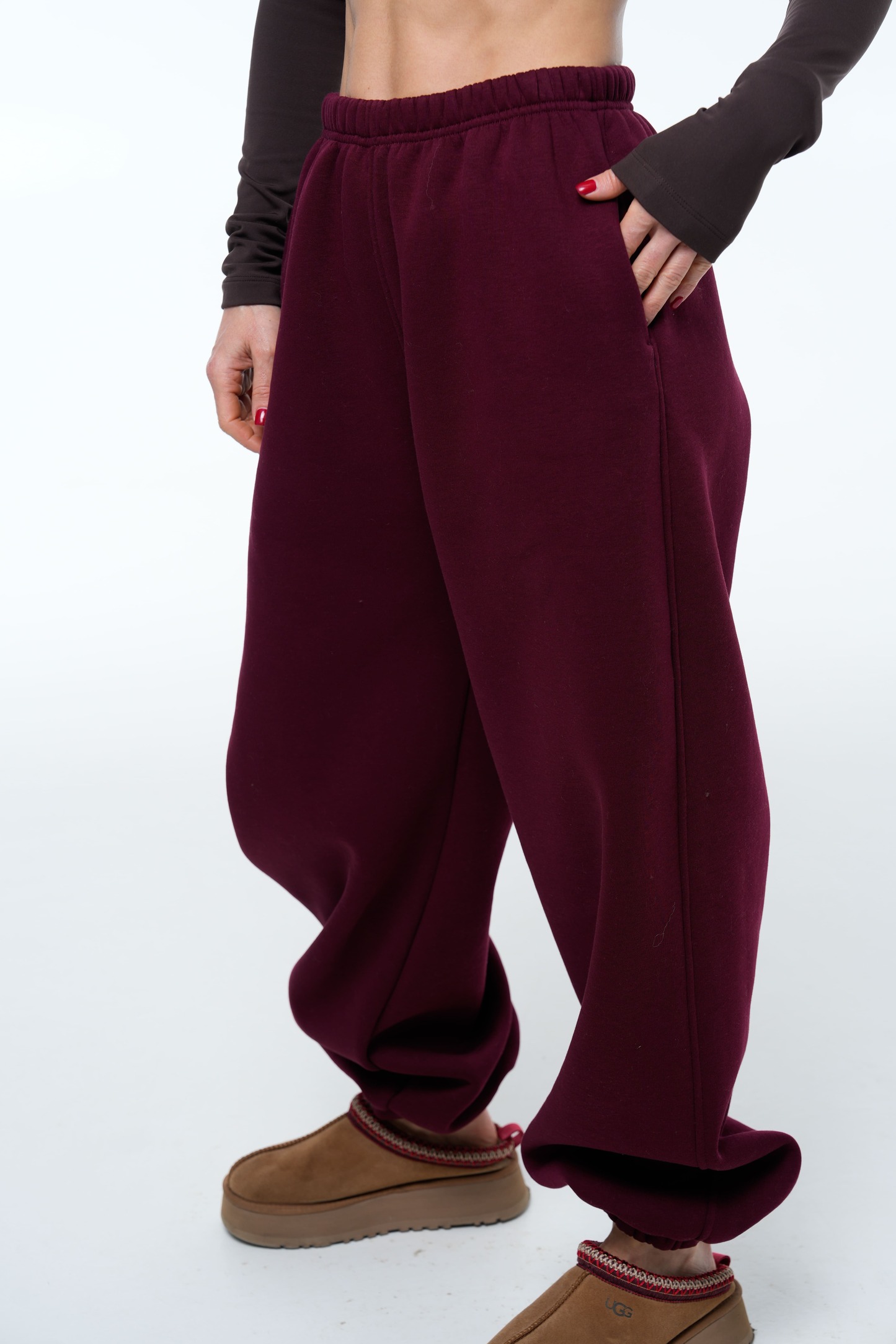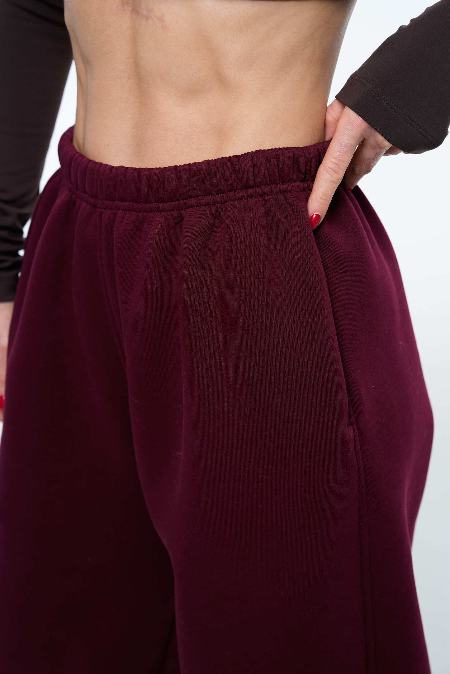 Стильні та універсальні джогери Cozy Line у глибокому відтінку бордо створені для максимального комфорту в холодний сезон. Модель виконана з футеру тринитки на флісі, що забезпечує приємну м’якість, утеплення та довговічність тканини. Широкий силует додає образу трендовості та невимушеності.