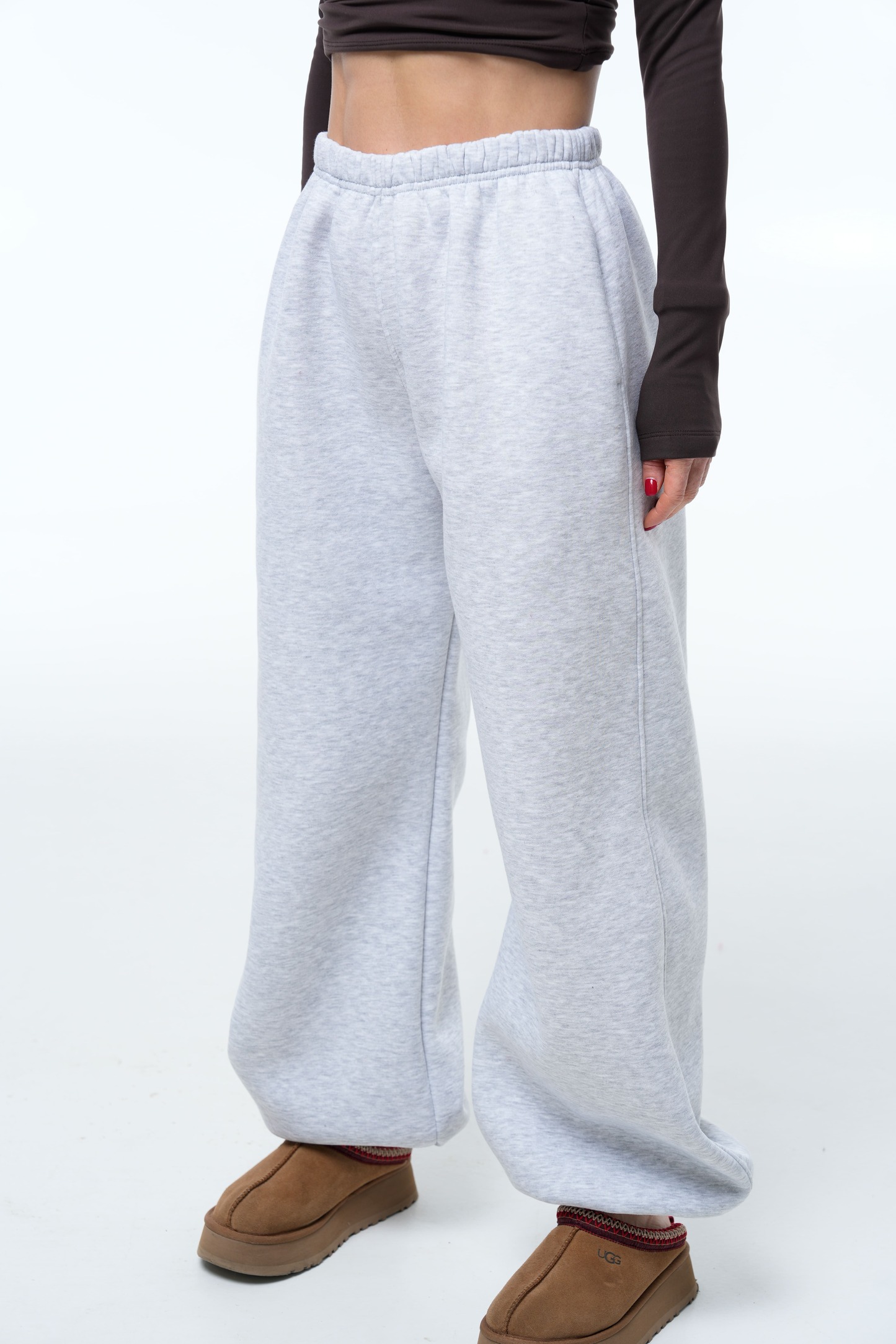 Низ штанин: також на резинці, що дозволяє регулювати посадку та створює акуратний об’єм.