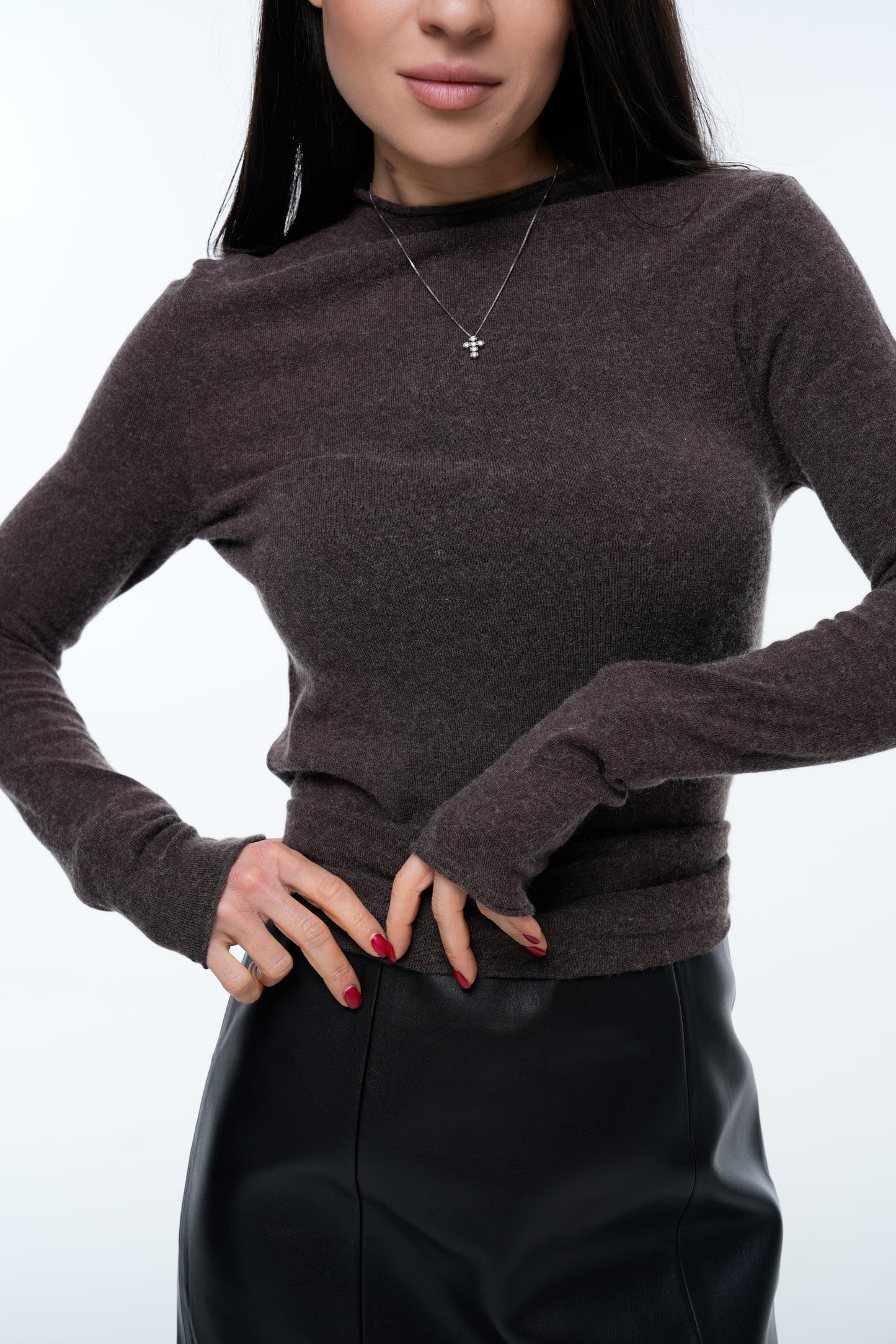 Актуальний шоколадний відтінок робить модель ідеальною для осінньо-зимового гардероба.