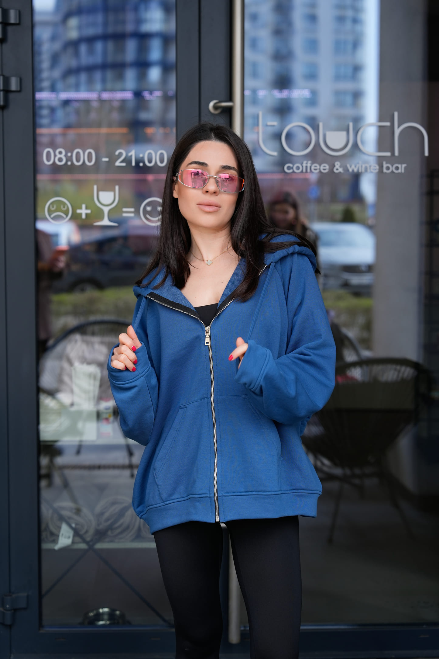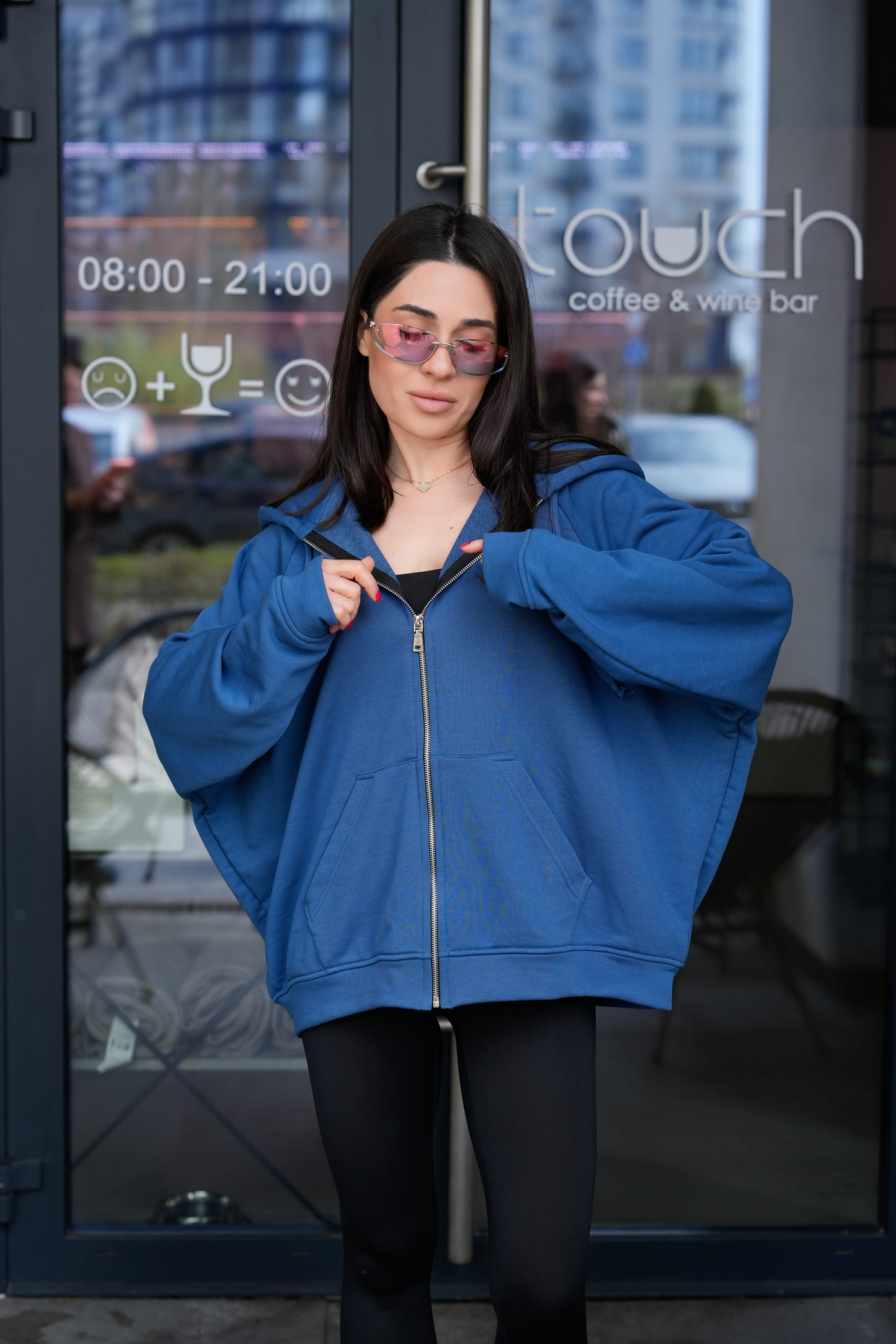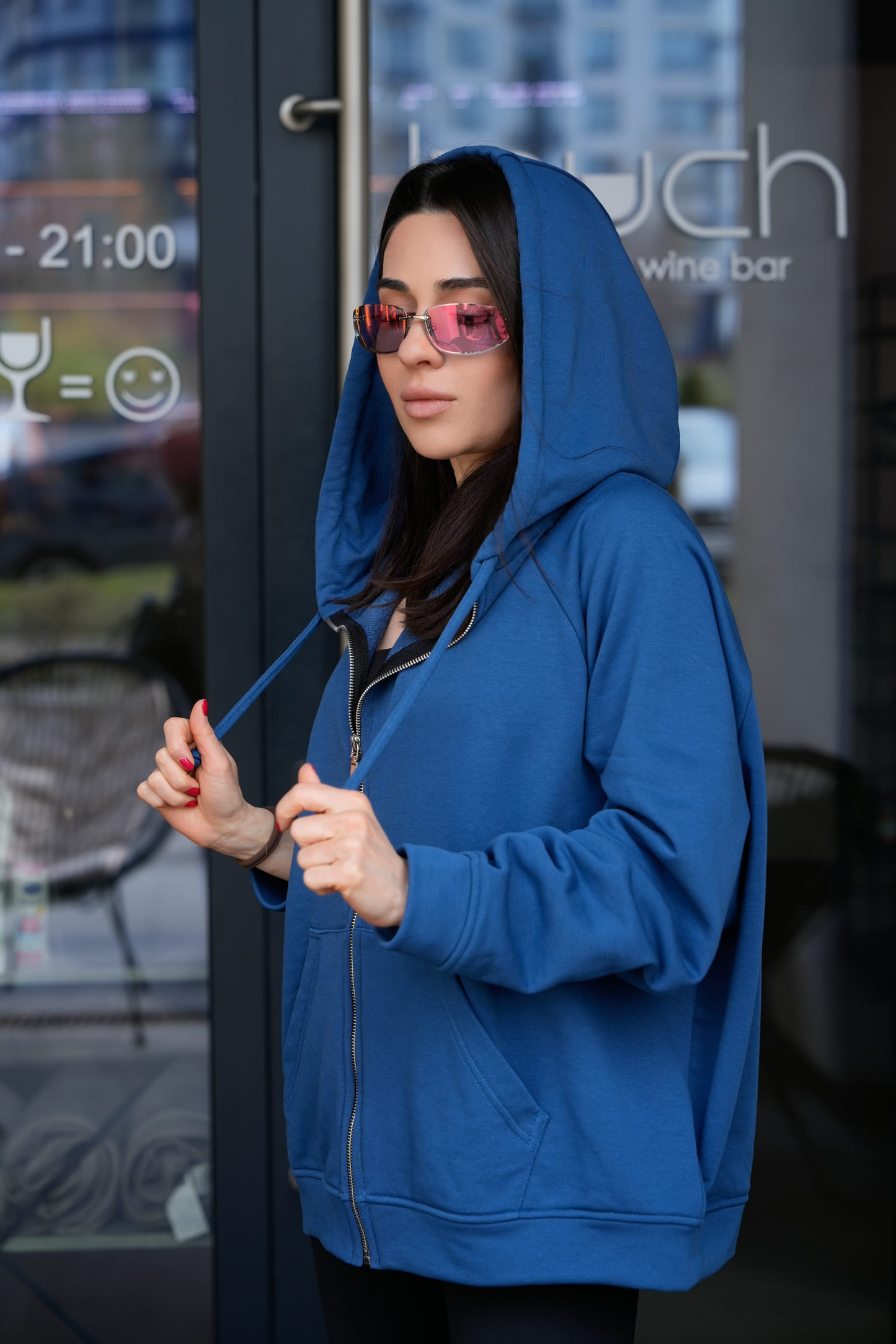 Металева блискавка по центру додає функціональності та створює чіткий вертикальний акцент, який візуально витягує силует. Подвійний капюшон виглядає об’ємно, тримає форму та забезпечує додатковий комфорт. Шнурок дозволяє регулювати посадку капюшона залежно від потреб.