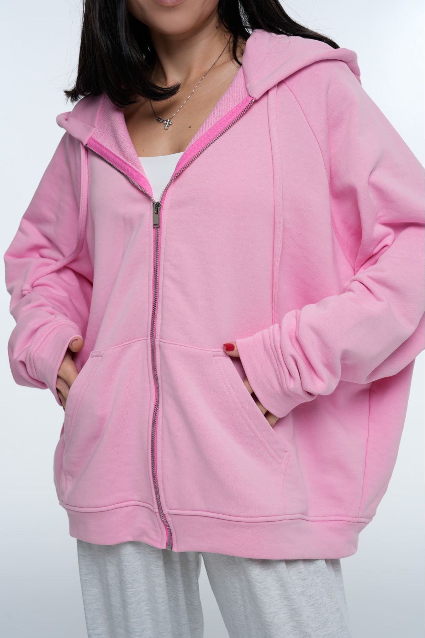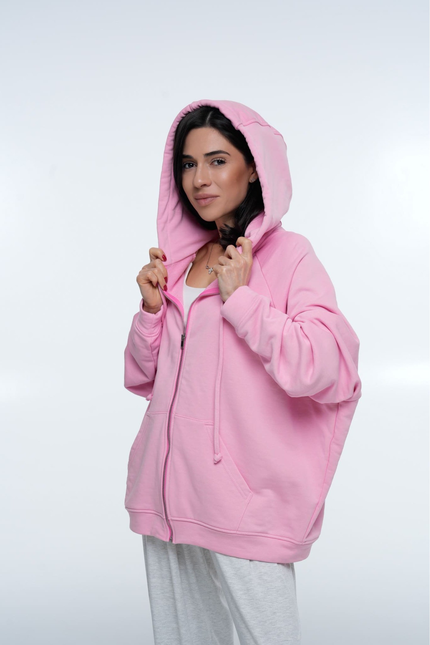 Худі на блискавці Hoodie Zip Pink — це універсальна модель oversize, створена для комфорту та ніжного повсякденного образу. Виконана з м’якої тринитки-петлі, вона приємна до тіла та зберігає красиву форму. Подвійний капюшон забезпечує додаткову щільність та охайний об’єм, а металевий замок робить виріб практичним та стильним. Спереду розміщені дві глибокі функціональні кишені. Рукави та низ завершені еластичними манжетами, що додає акуратності посадці. Ніжний рожевий відтінок робить худі акцентом у будь-якому casual-луку.