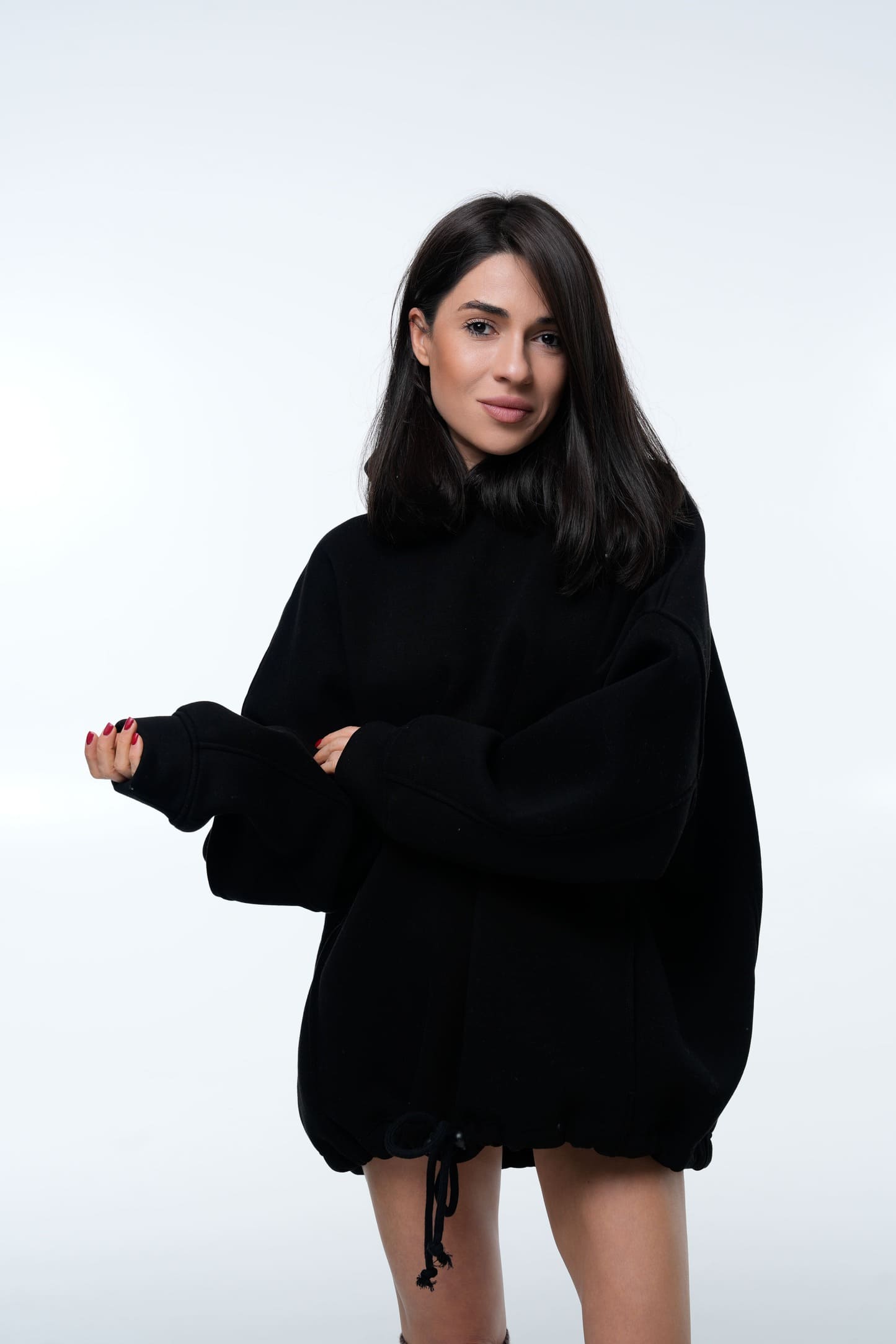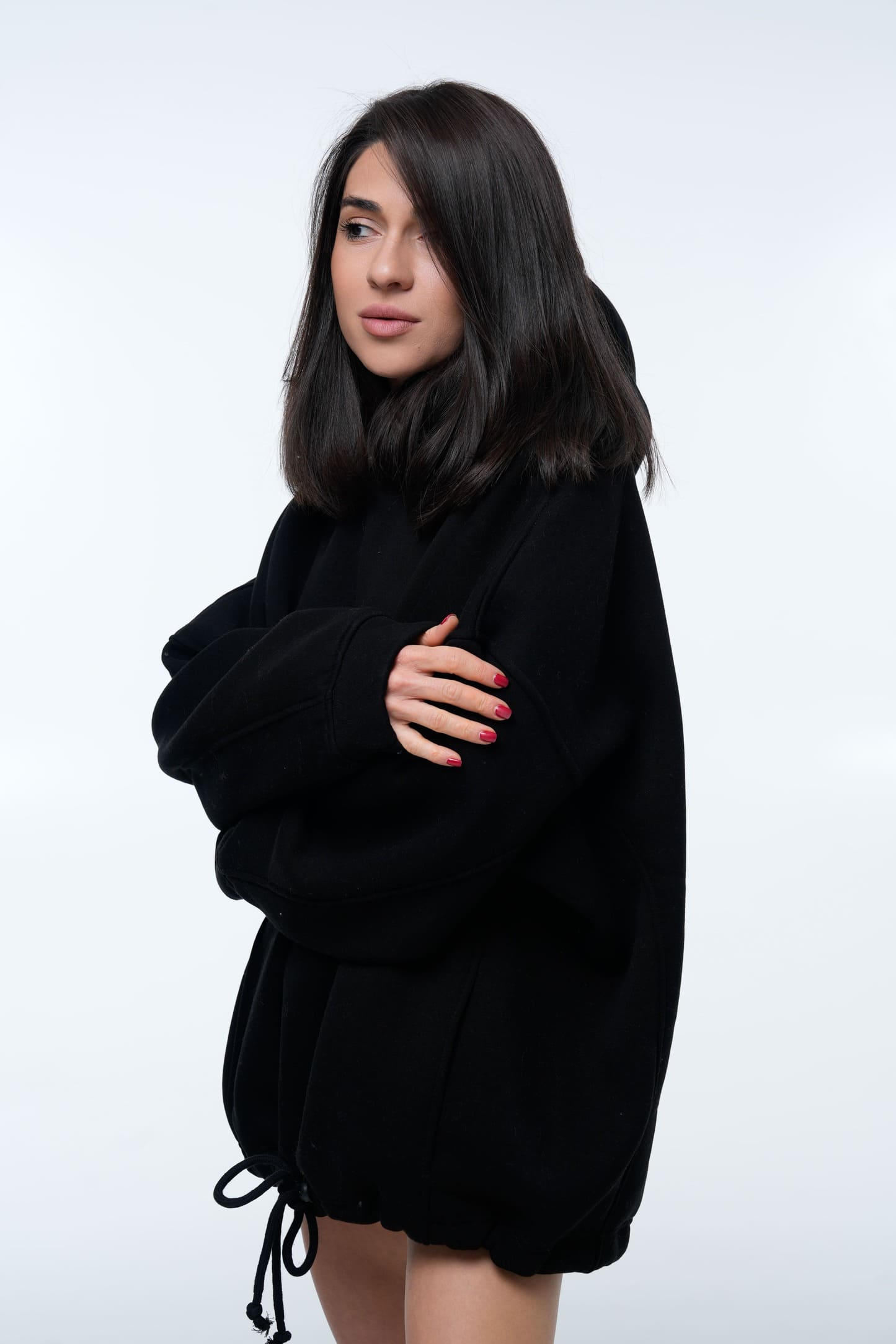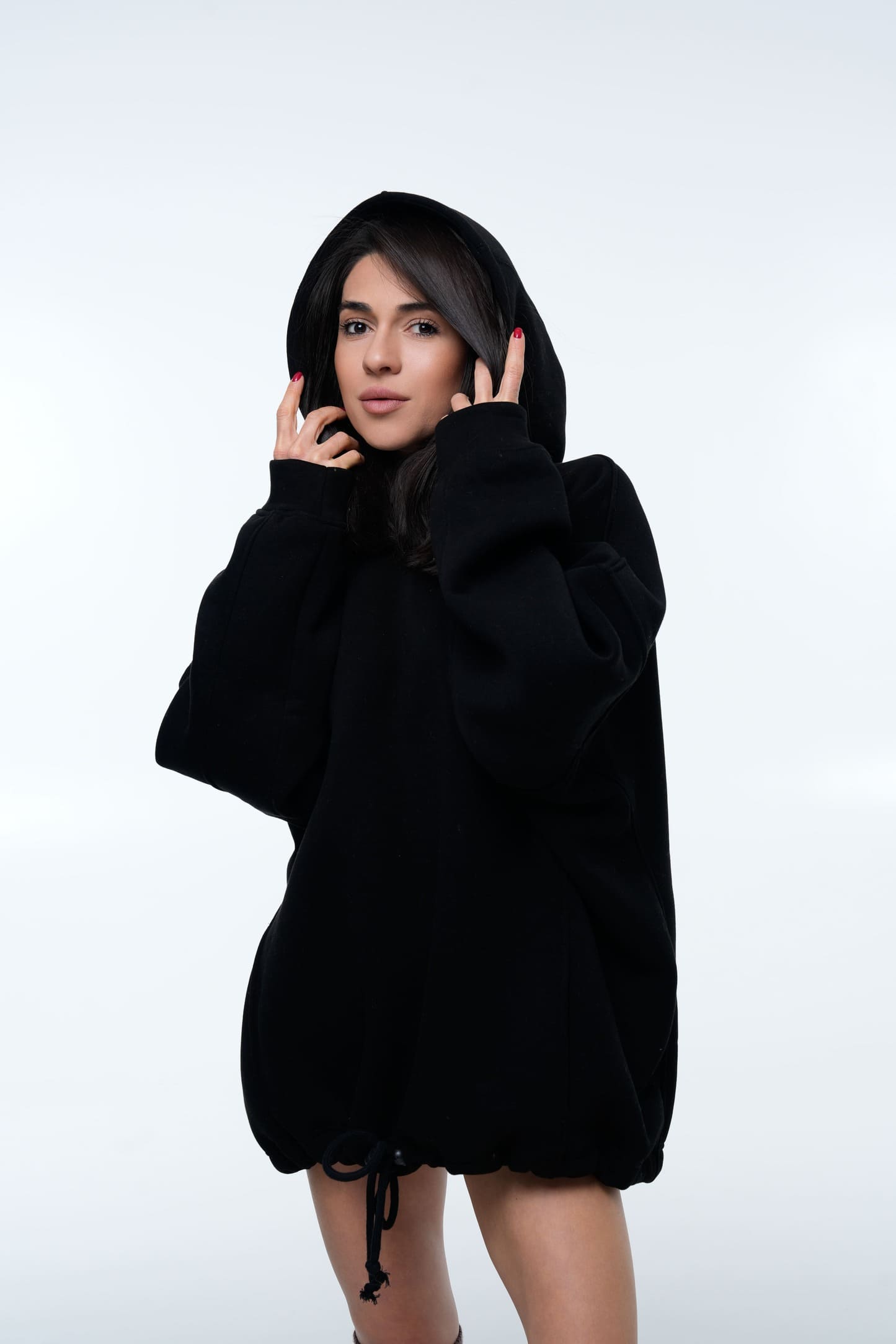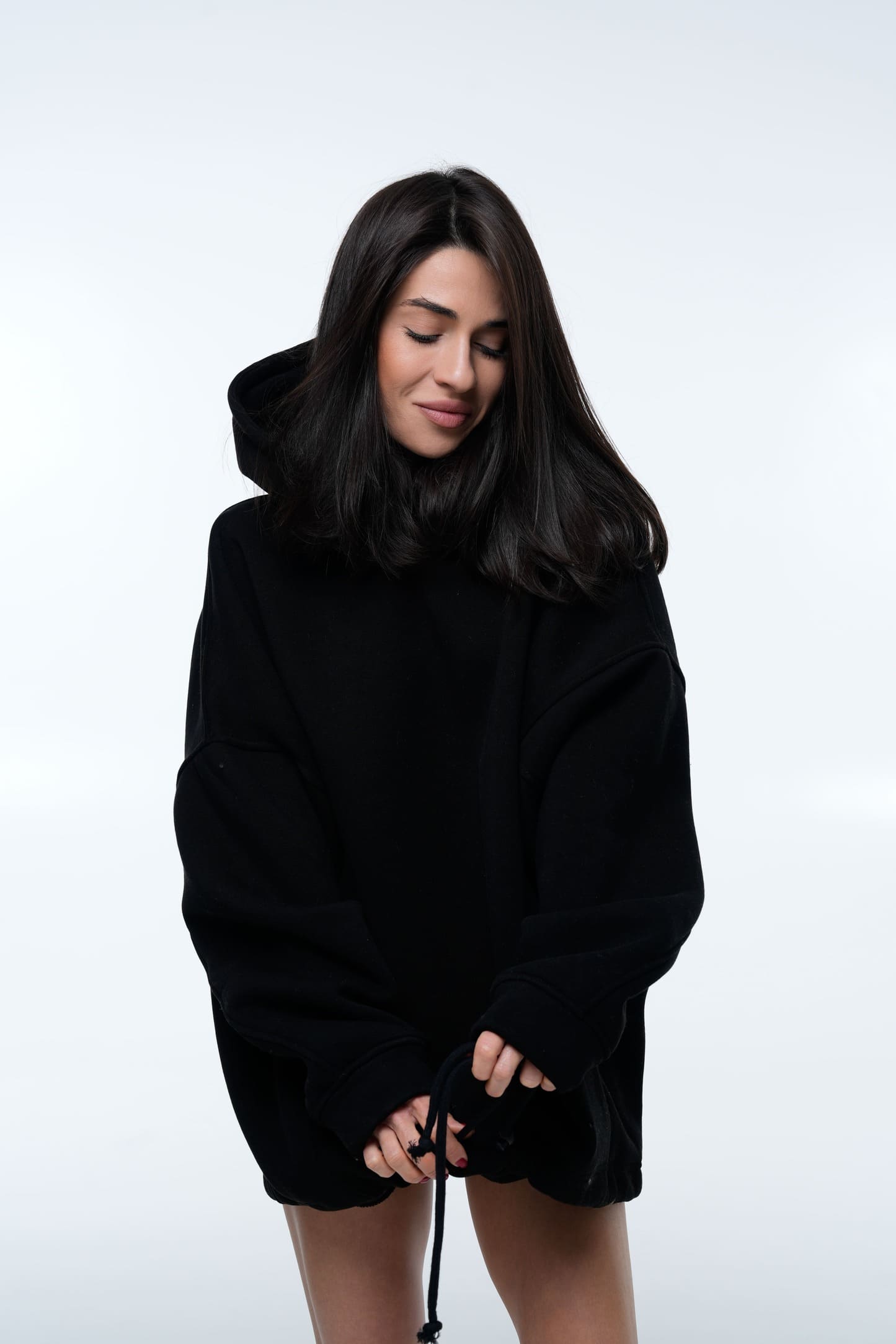 Стильне об’ємне худі в глибокому чорному кольорі, створене для максимального комфорту та тепла. Модель виконана з м’якого бавовняного трикотажу з флісовим утепленням, що робить її ідеальною для прохолодної погоди. Фірмовий силует Volume Sphere додає образу виразності завдяки oversize-крою та характерним акцентам.