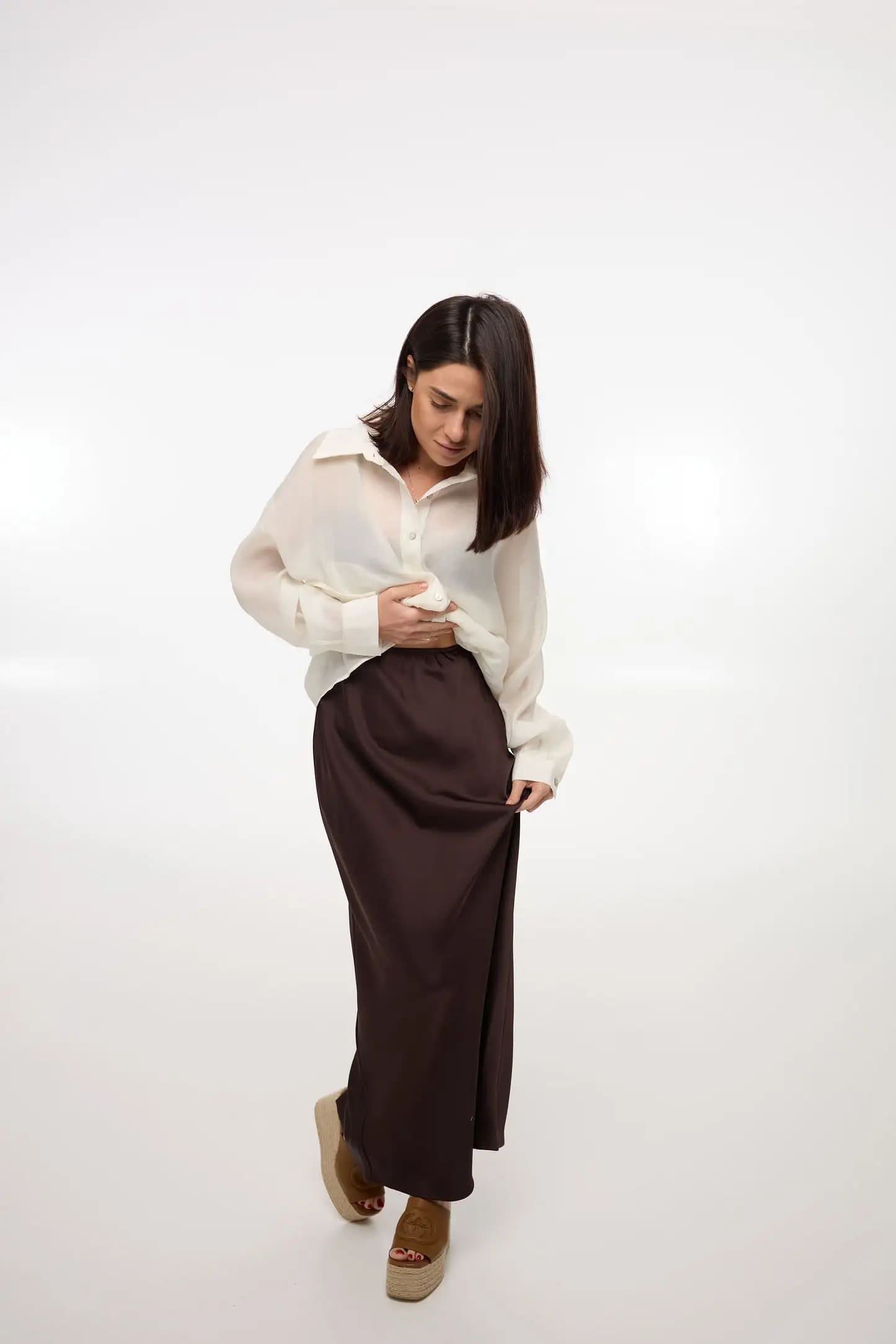 Пряма спідниця — це лаконічна й універсальна модель, яка не облягає фігуру так сильно, як олівець, але зберігає струнку лінію силуету. Вона має однакову ширину по всій довжині або ледь розширюється до низу, створюючи релаксований та комфортний образ.