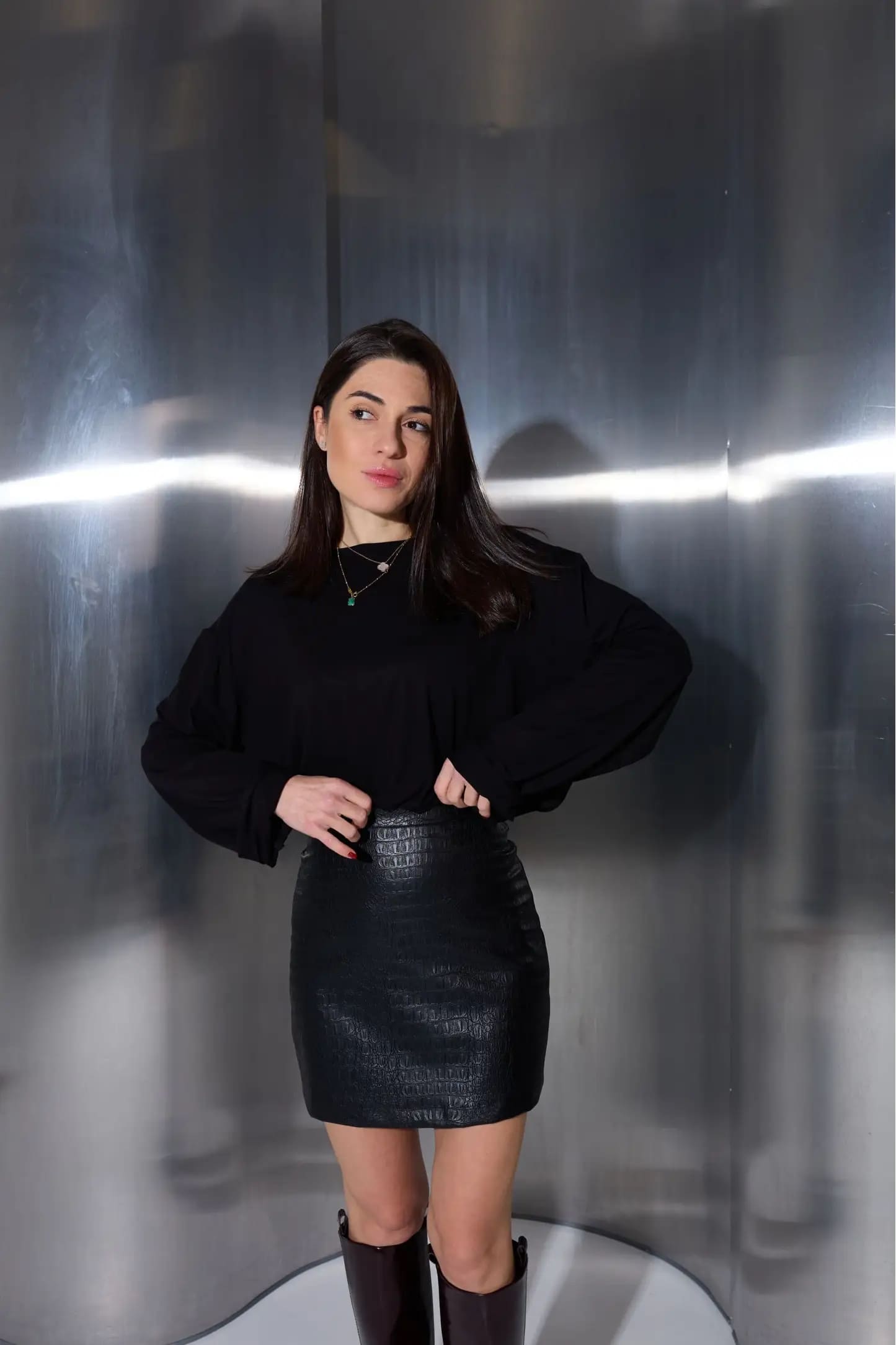 - Шкіряні спідниці та моделі з екошкіри представлені у всіх можливих фасонах — від облягаючих олівців до розкльошених міді. Шкіра поєднує елегантність, дерзість та практичність.