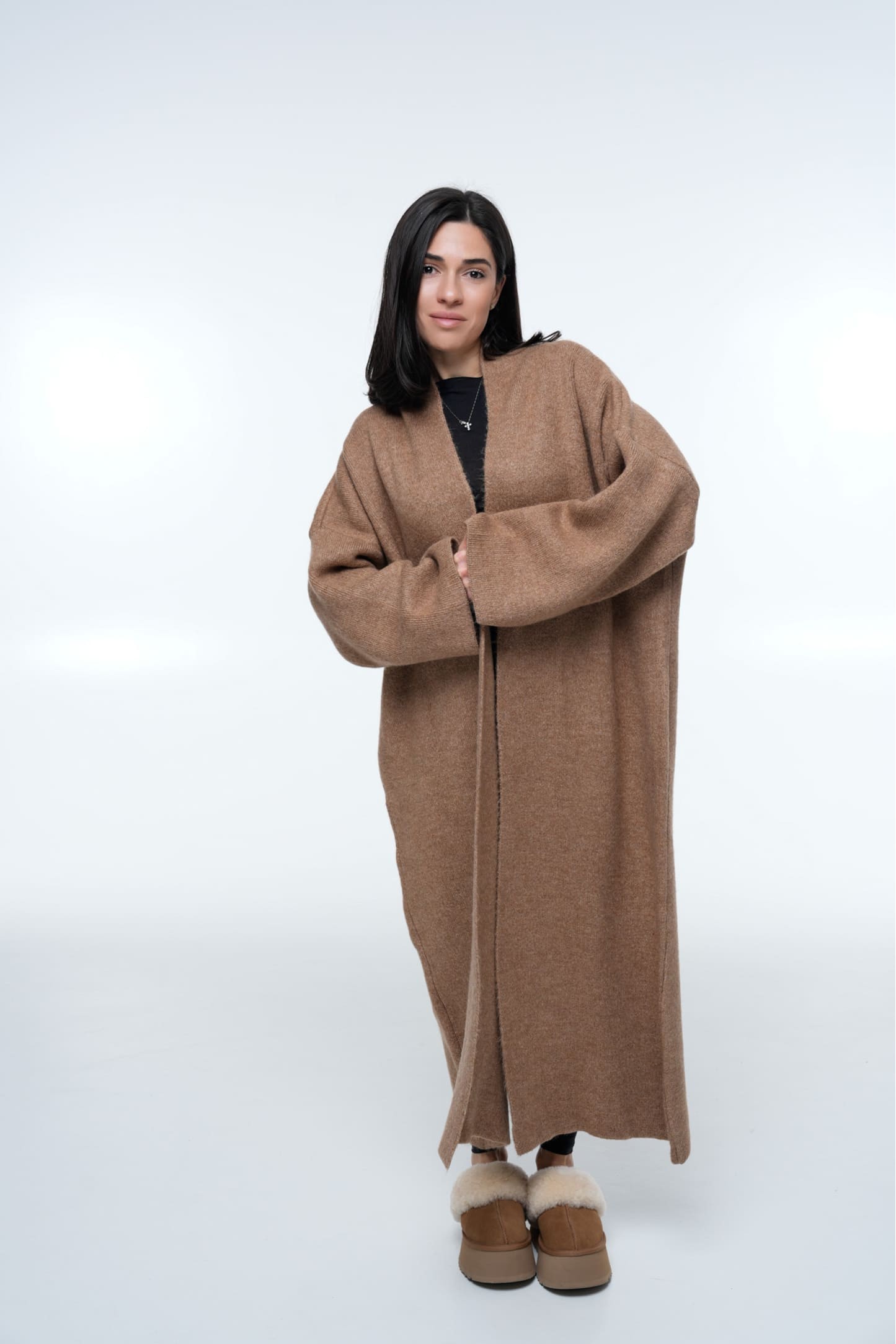 Кардиган Long Warm Knit Кемел — це елегантна довга модель у благородному відтінку camel, створена для тепла, комфорту та стильних повсякденних образів. Виконаний із м’якої трикотажної пряжі, він приємний до тіла, злегка пухнастий та теплий, ідеально підходить для прохолодних сезонів.