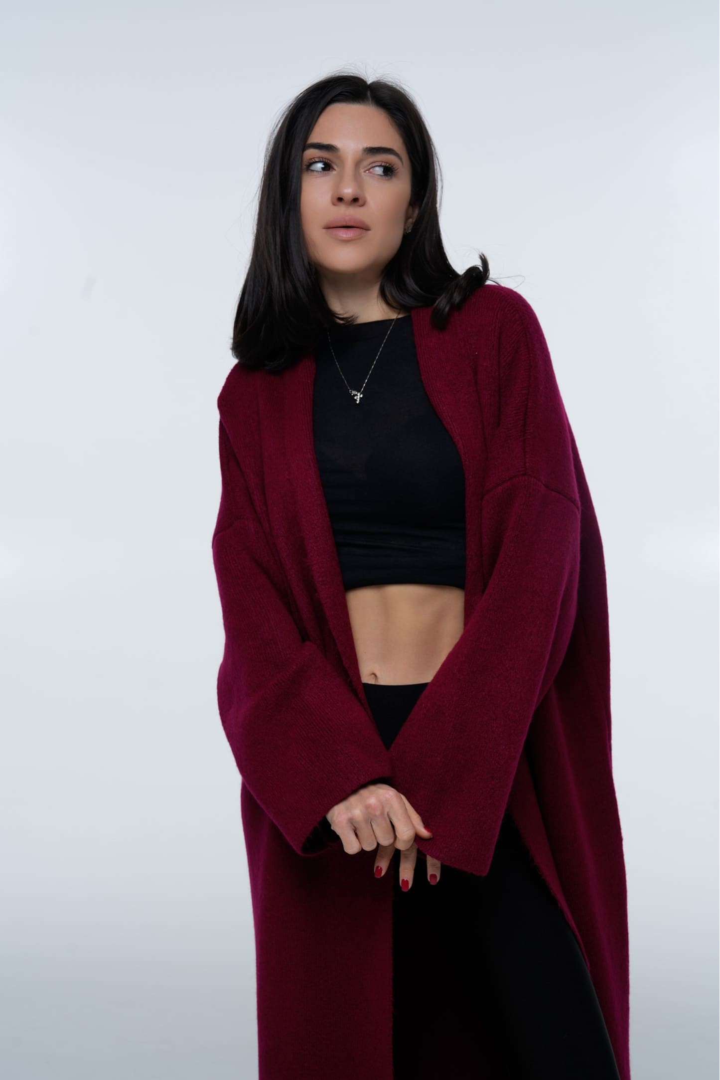 Глибока винна палітра, яка виглядає дорого й акцентує образ.