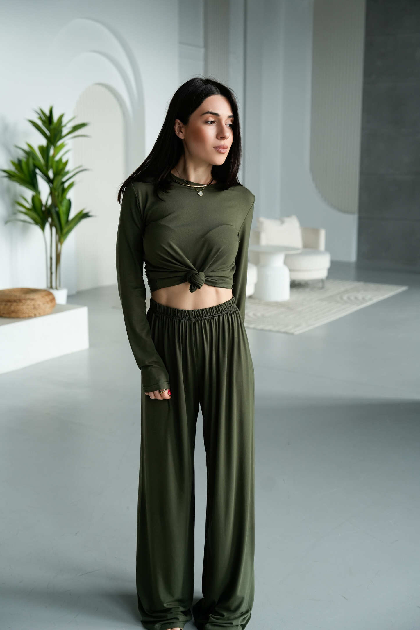Костюм Comfort Code у відтінку хакі — це сучасний баланс між базовістю та характером. Глибокий природний колір додає образу стриманої виразності, роблячи комплект універсальним для щоденного гардероба з акцентом на стиль і комфорт.