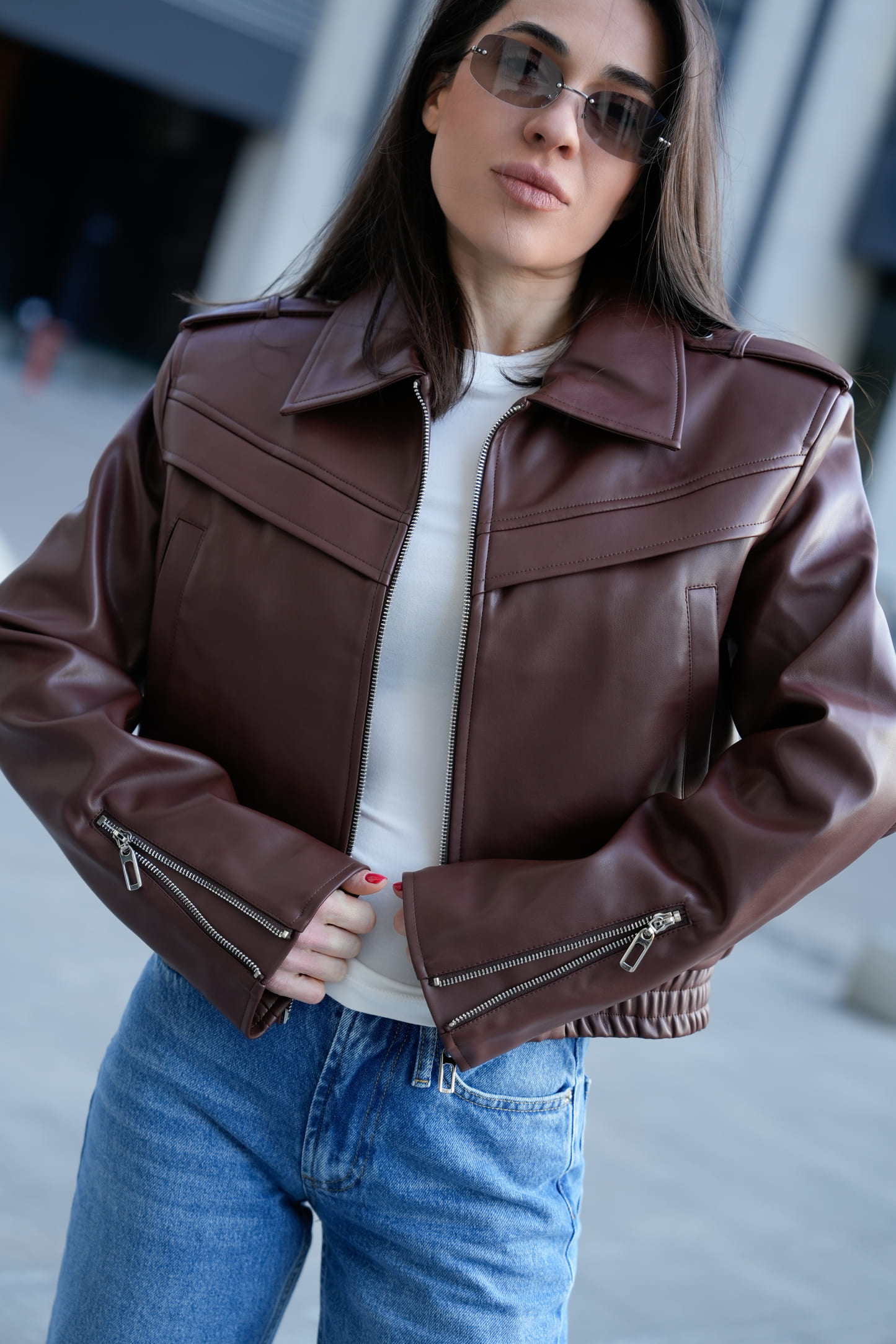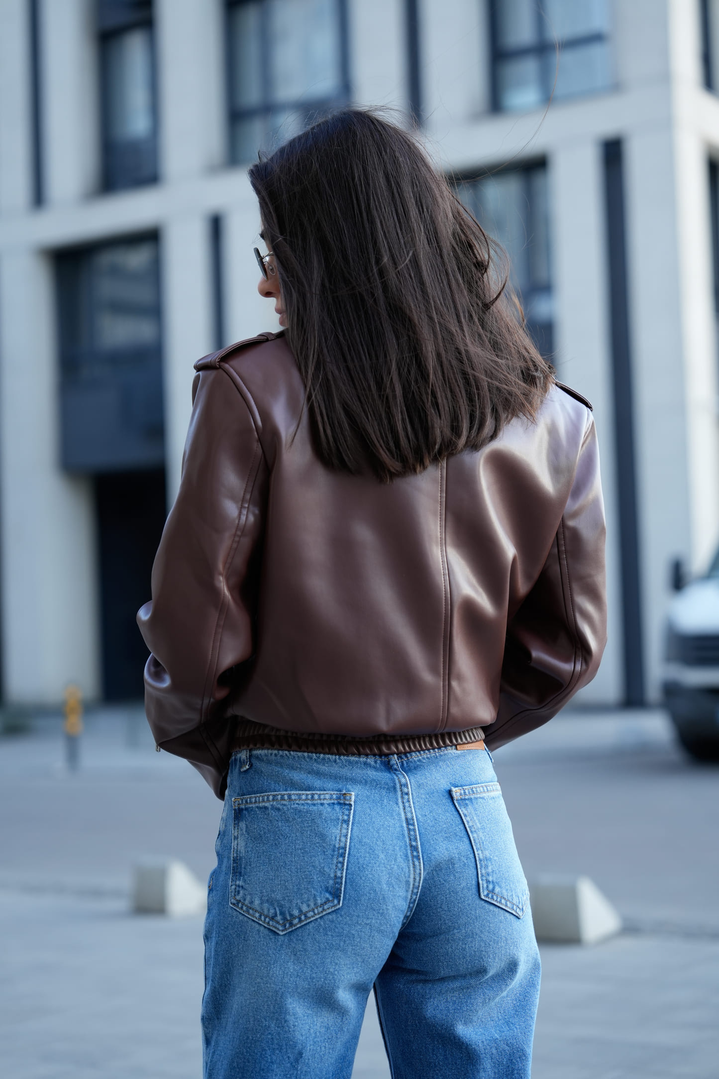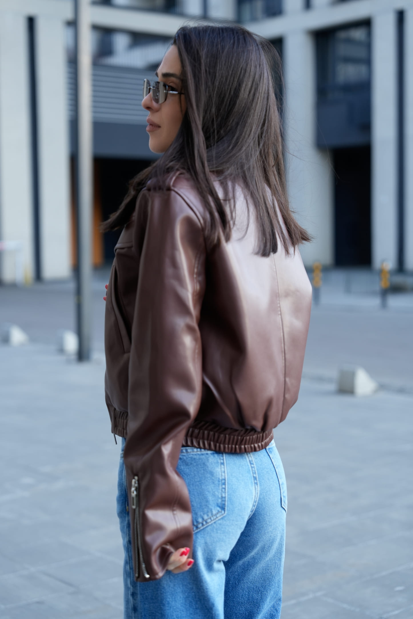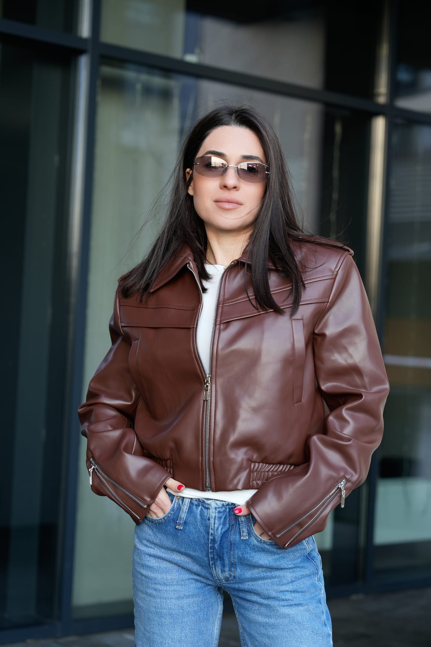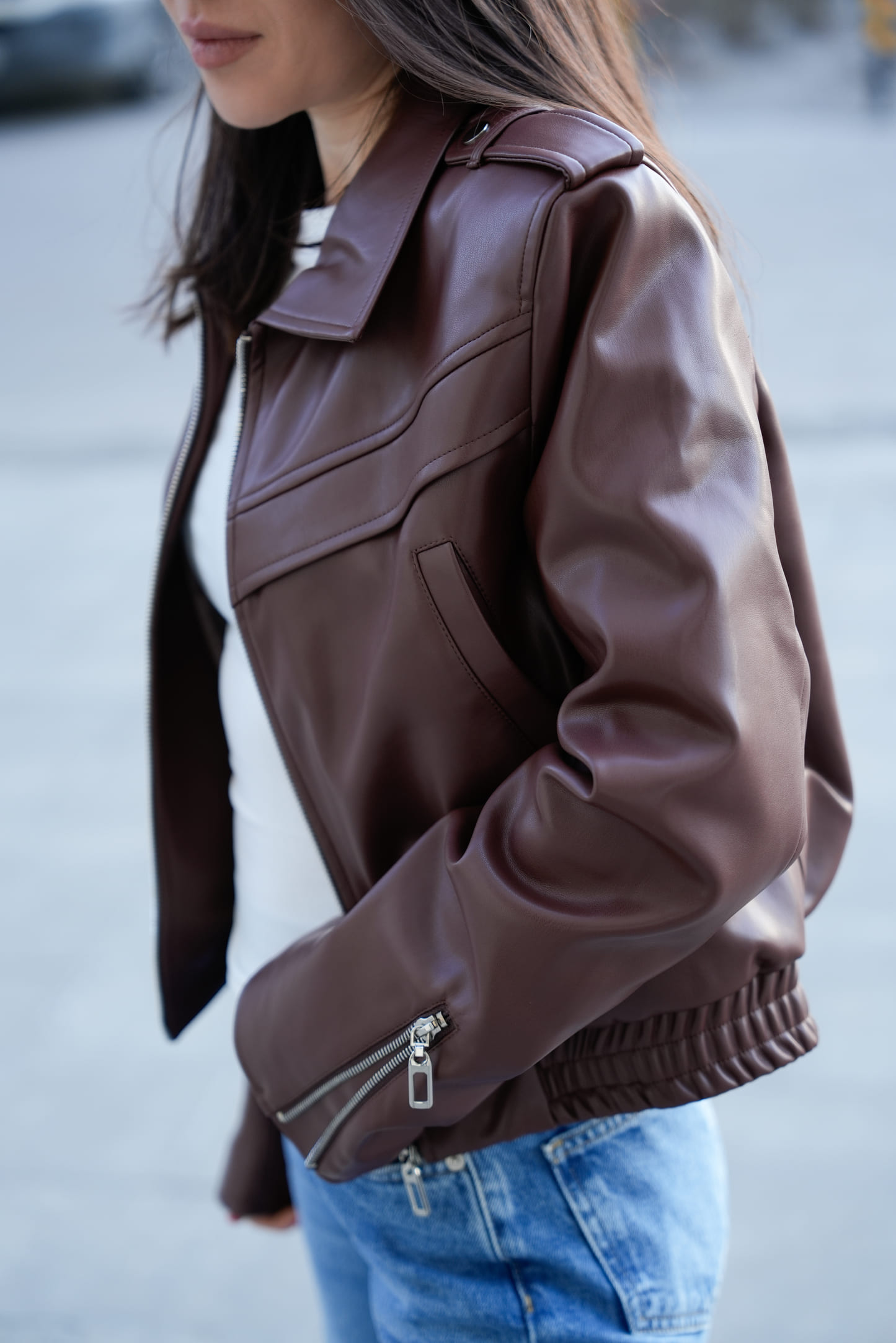 Ця куртка — ідеальне поєднання міського стилю та сучасної бази з характером. Глибокий шоколадний відтінок виглядає стримано й дорого, додаючи образу елегантності навіть у повсякденних поєднаннях. Модель легко інтегрується як у casual, так і в більш зібрані аутфіти, підкреслюючи силует і додаючи структурності.