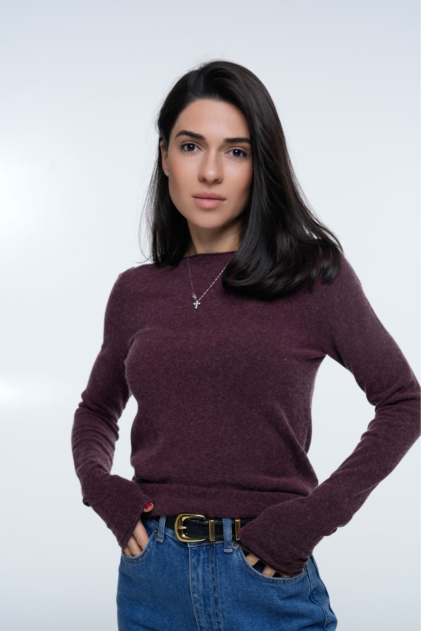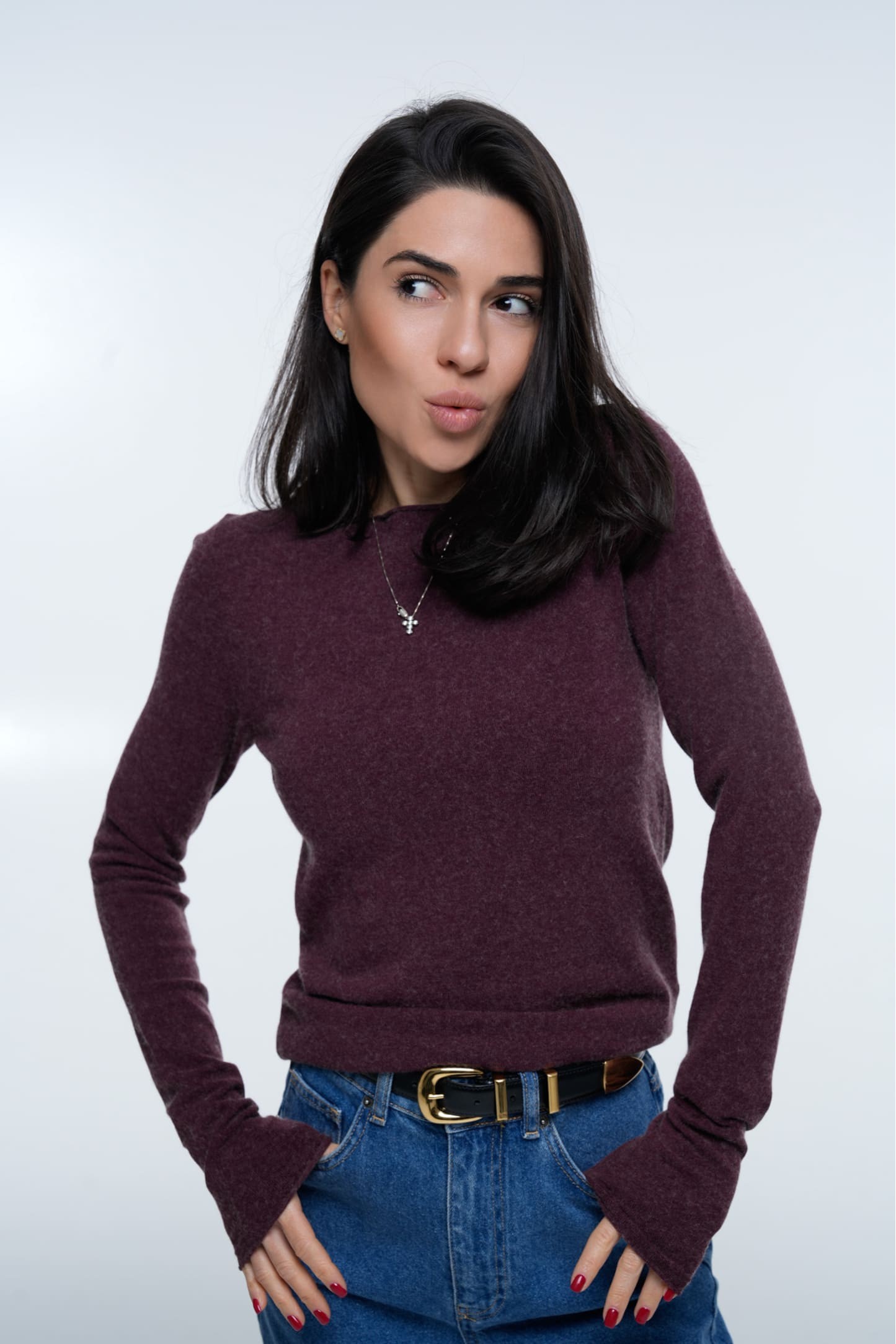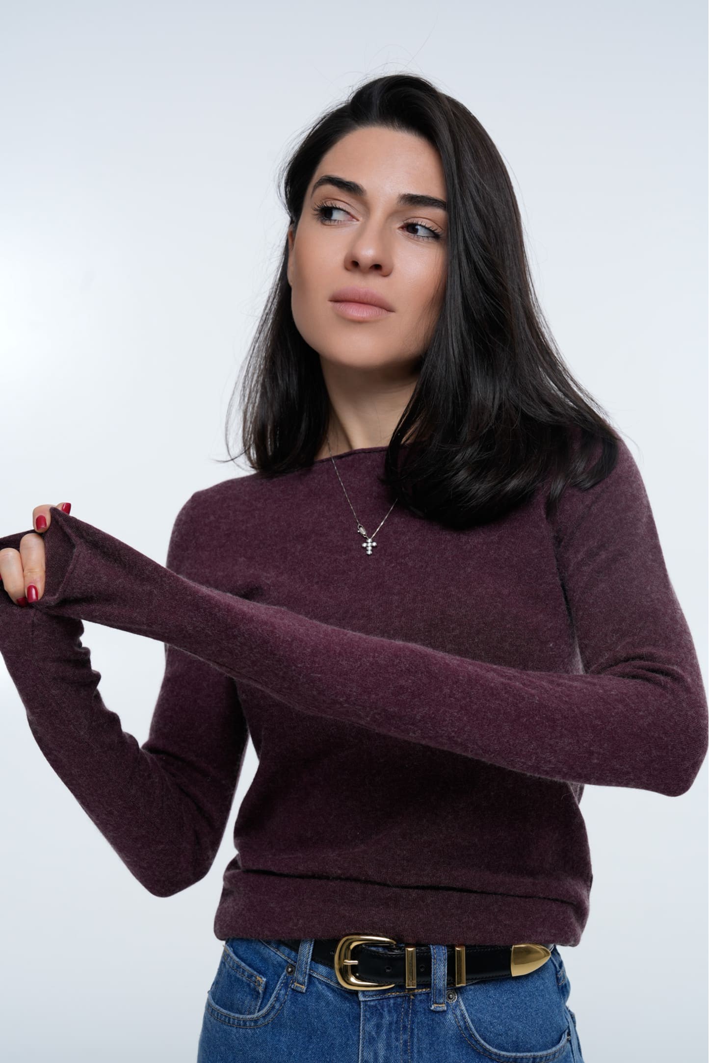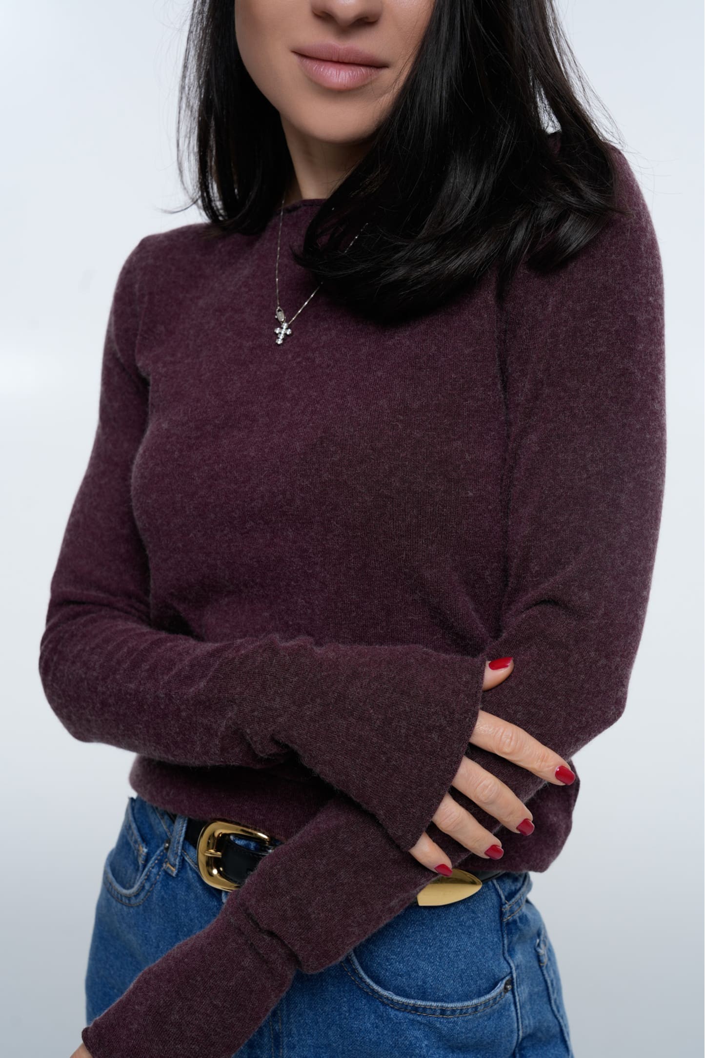 Лонгслів Cashmere Touch Plum створений із ніжної змішаної пряжі з кашемірним ефектом, що дарує м’якість, комфорт і преміальний вигляд. Насичений сливовий відтінок підкреслює витончений силует, а делікатна фактура робить річ універсальною для холодного сезону.