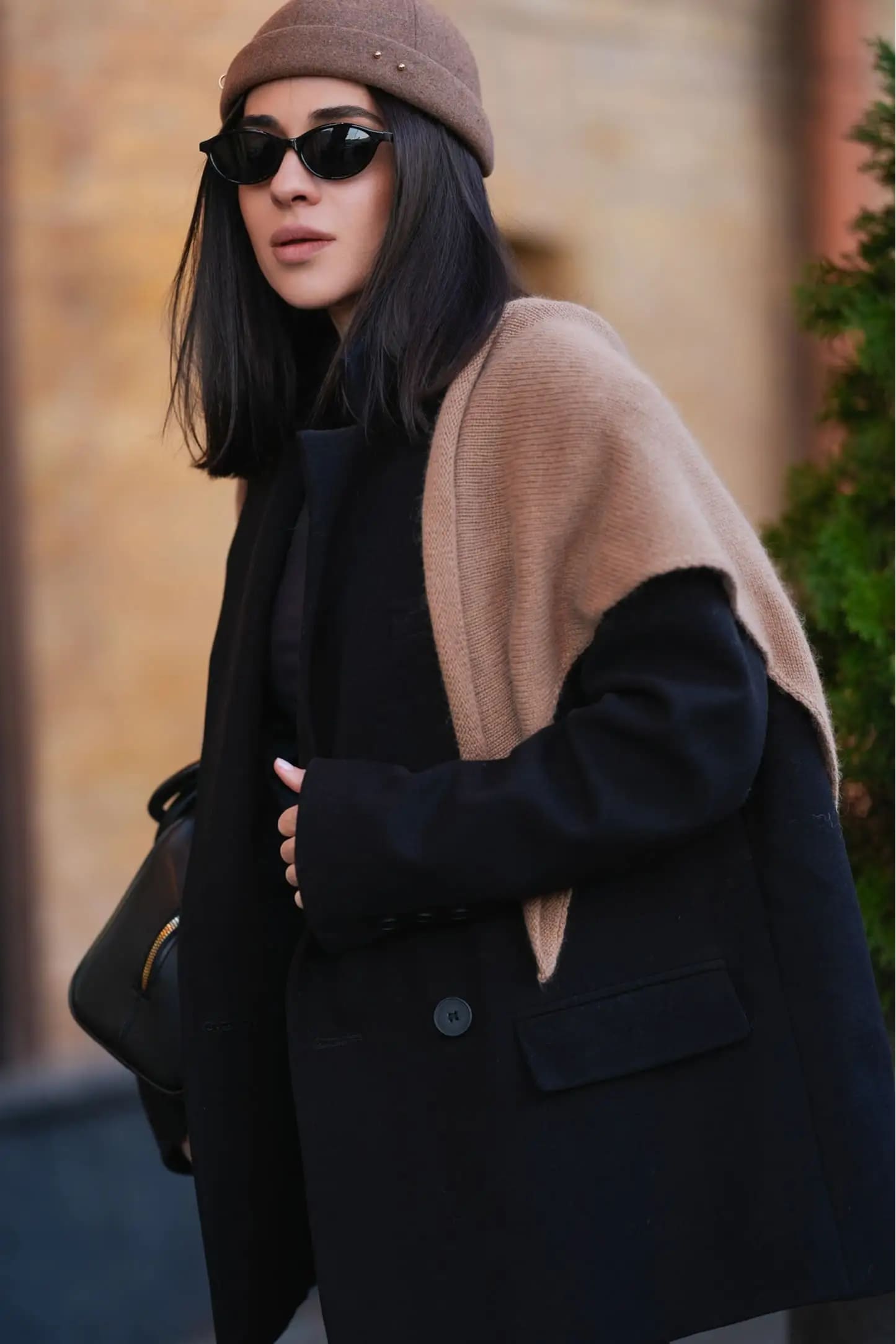 Щоб надати луку додаткової витонченості, варто звернути увагу на деталі: великий шарф, модні рукавички або шапка крупної в’язки. Пальто в стилі оверсайз легко поєднується з різними стилями, від casual до більш елегантного. Воно стане ідеальним вибором як для прогулянок містом, так і для офісних виходів, надаючи вашому образу актуальності та затишку.