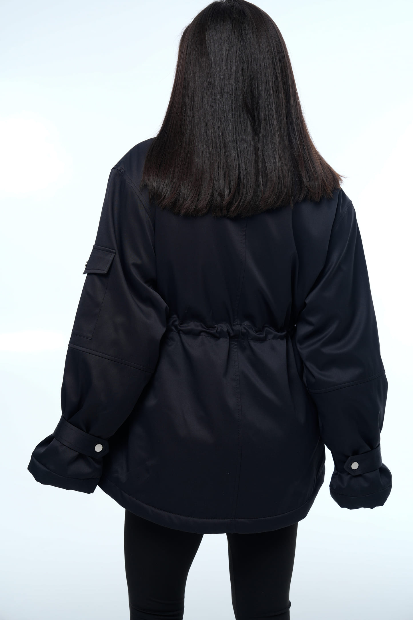 Модель доповнена функціональними деталями, які підкреслюють утилітарний стиль: об’ємні кишені, регульовані манжети та кишеня на рукаві. Металева фурнітура гармонійно завершує дизайн і додає виробу сучасного характеру.