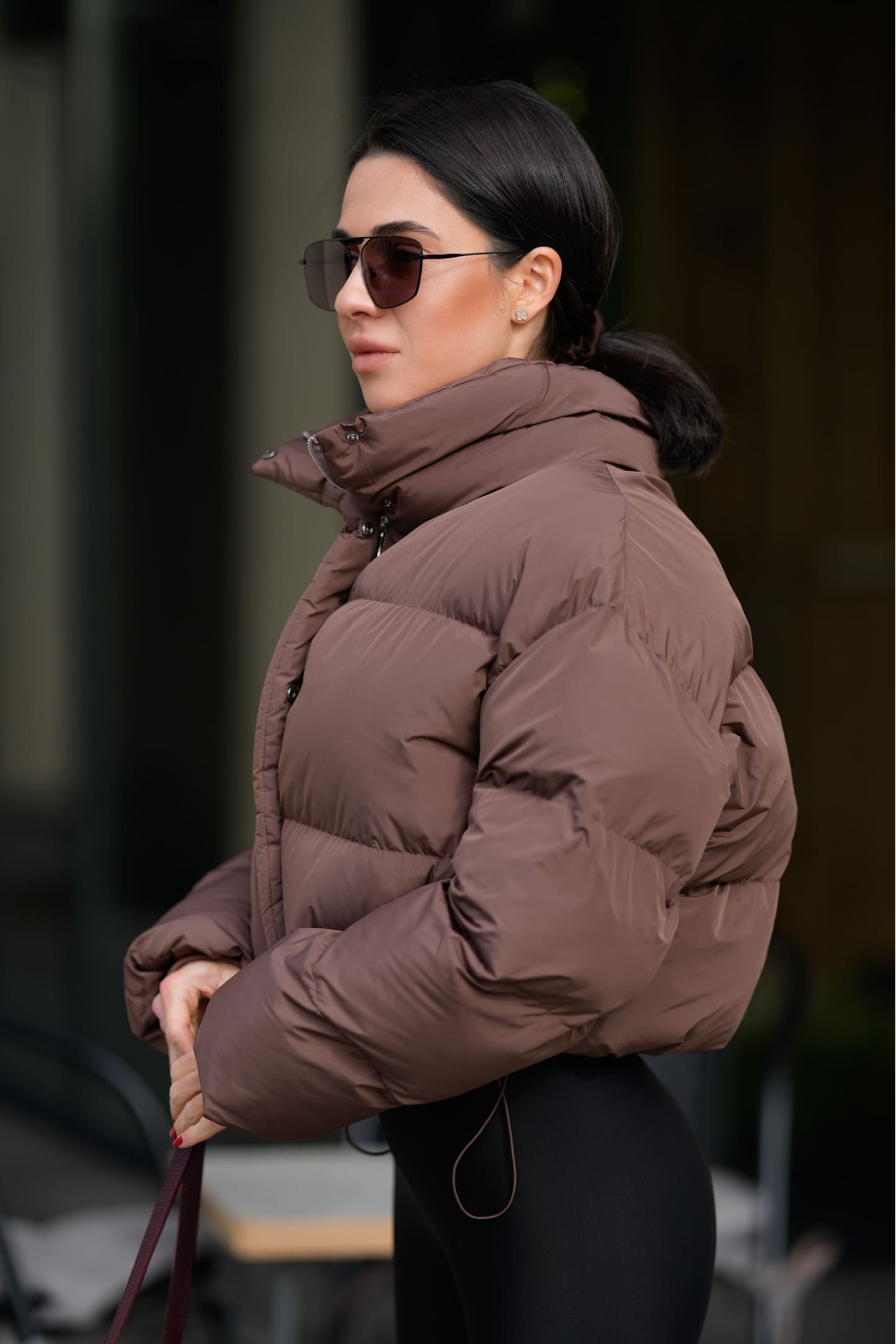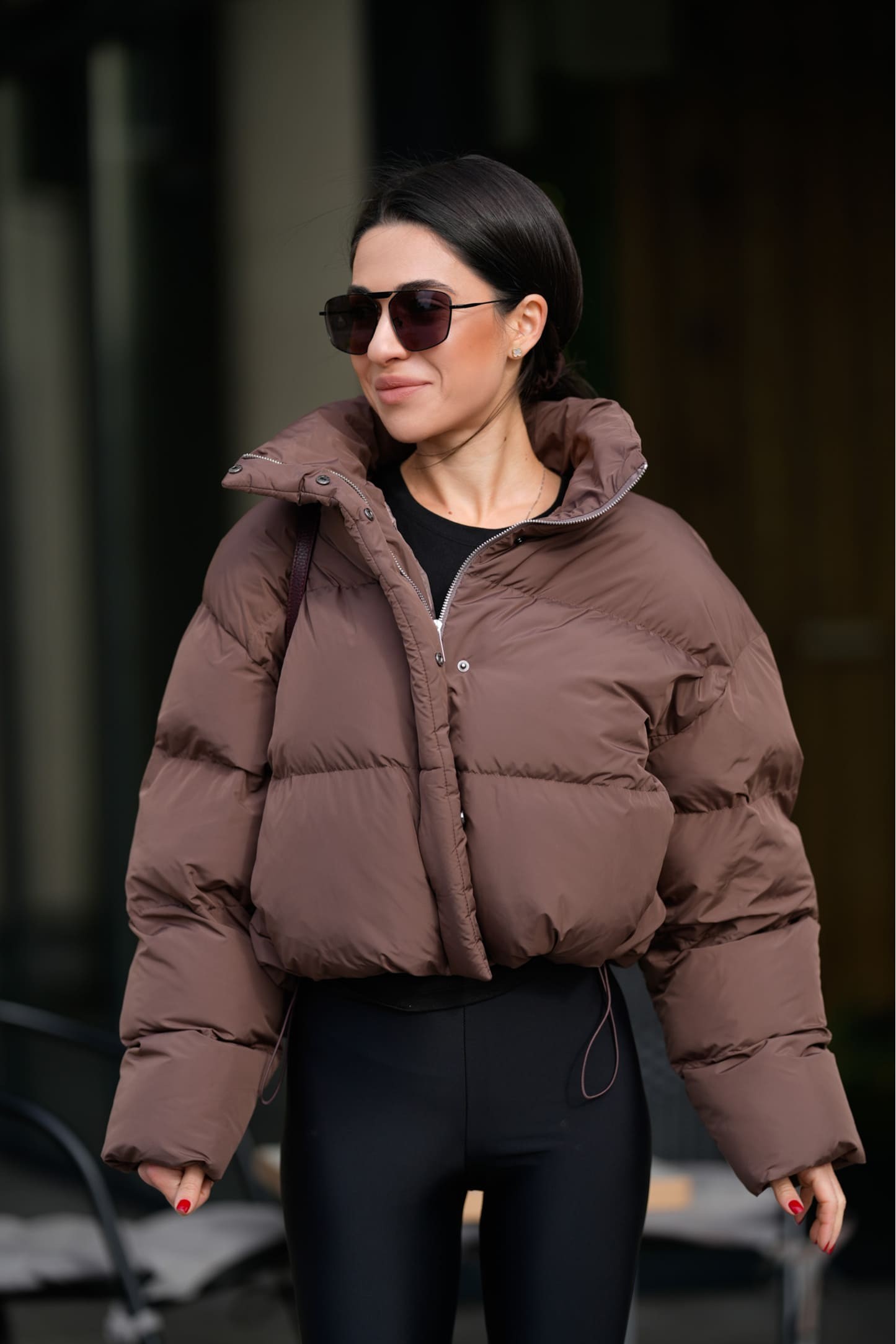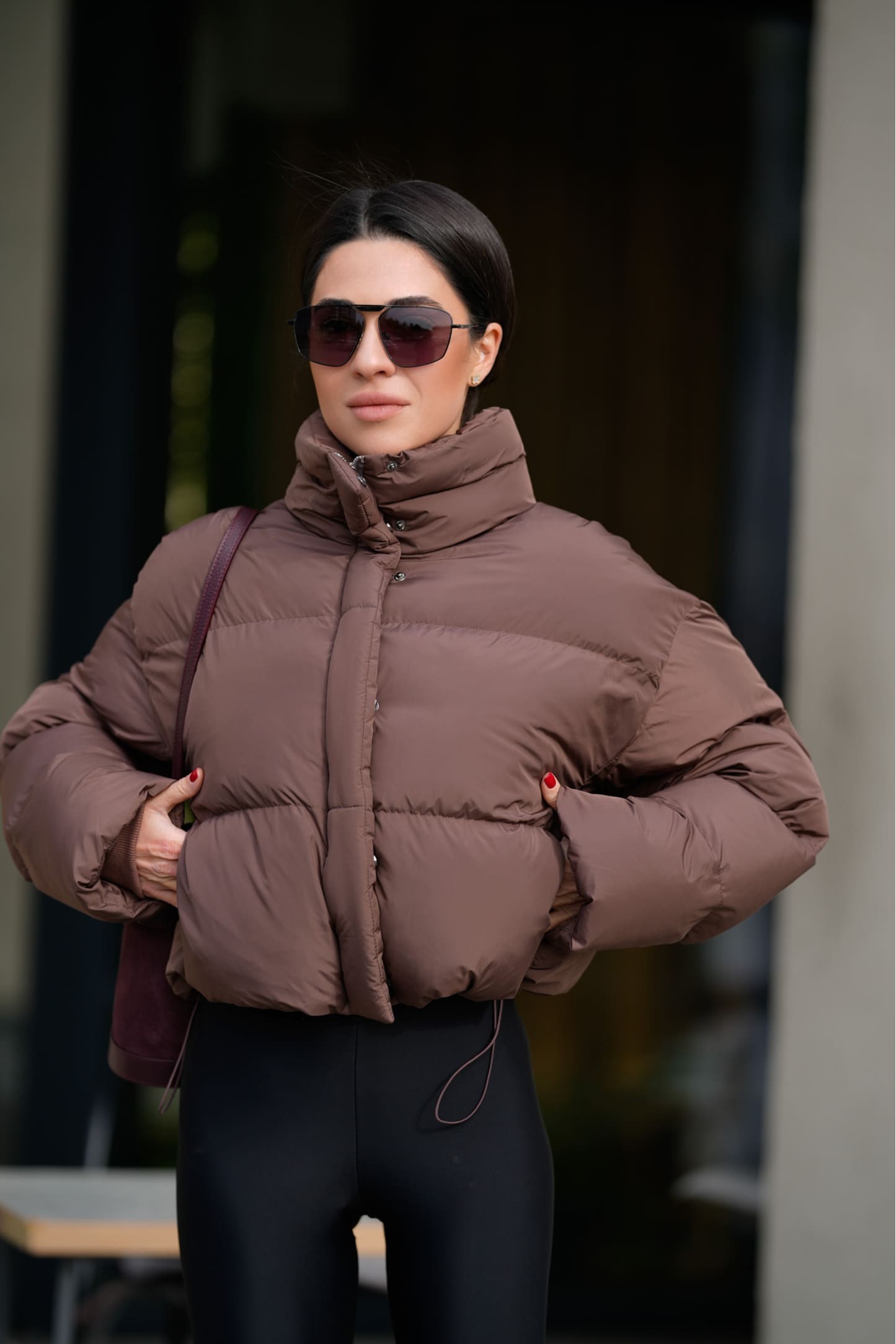 Стильний укорочений пуховик у трендовому кольорі сocoa, створений для тепла й комфорту у холодний сезон. Модель має об’ємний силует, що створює ефект “хмарки”, підкреслюючи сучасний, акуратний look.