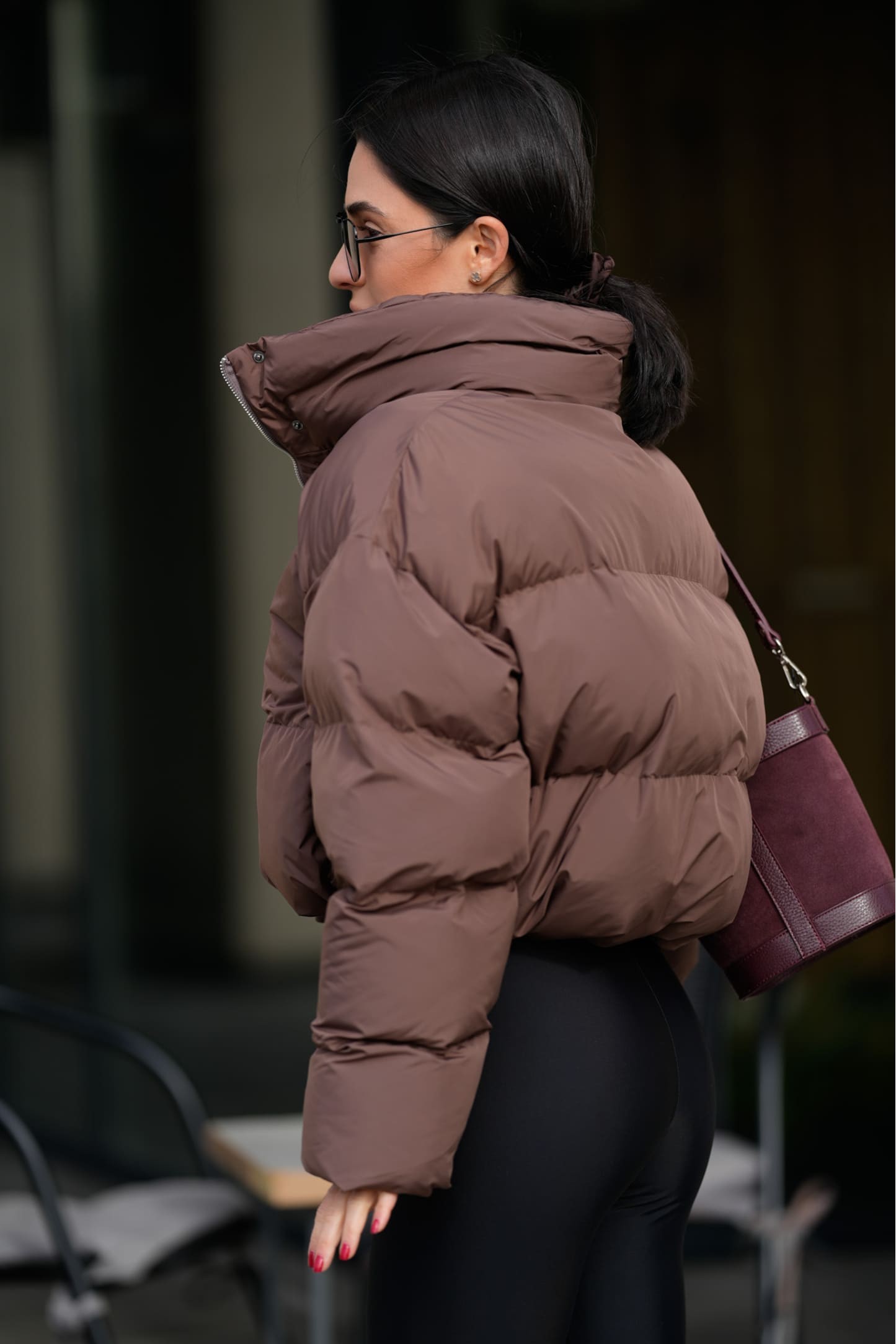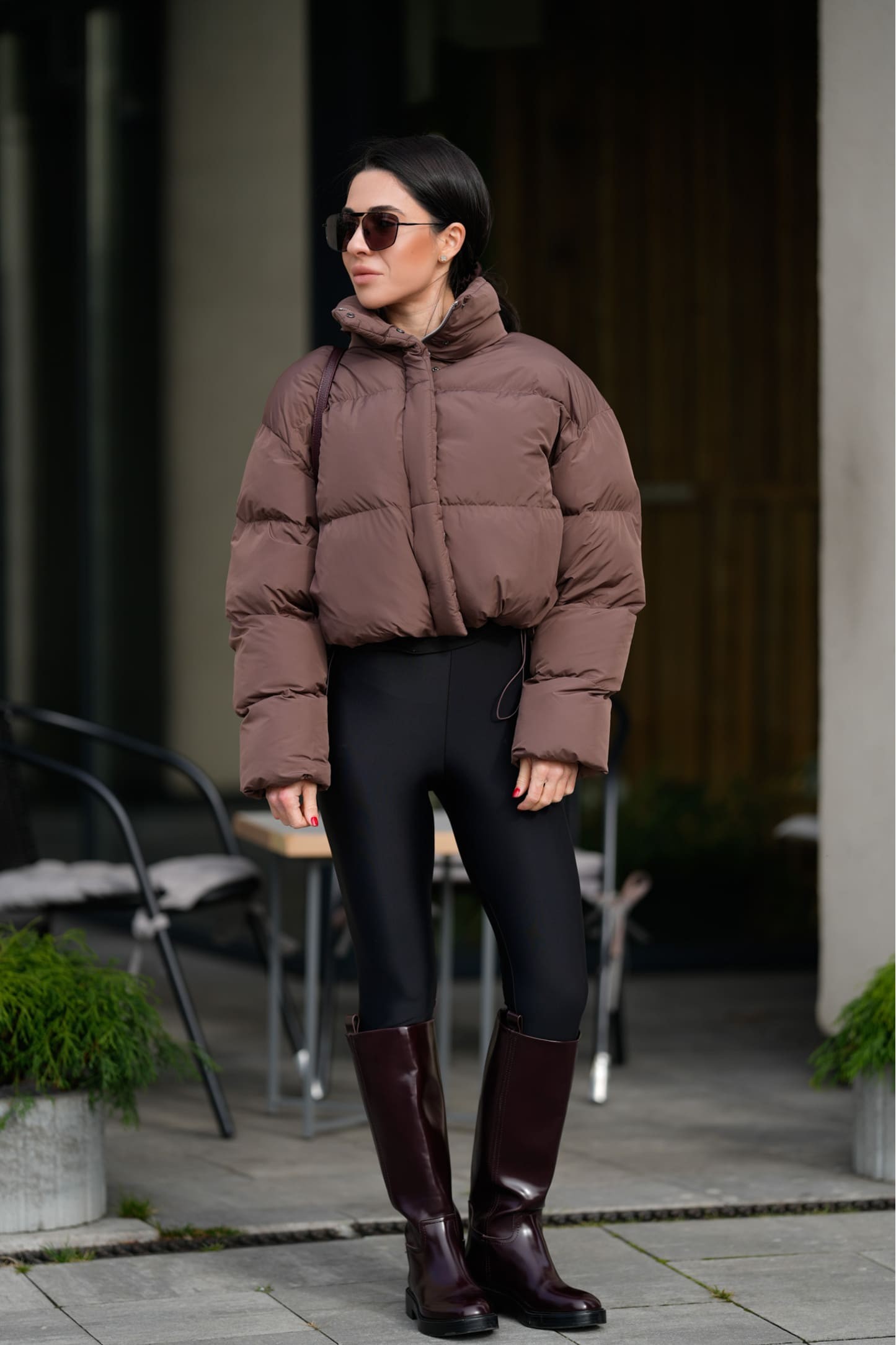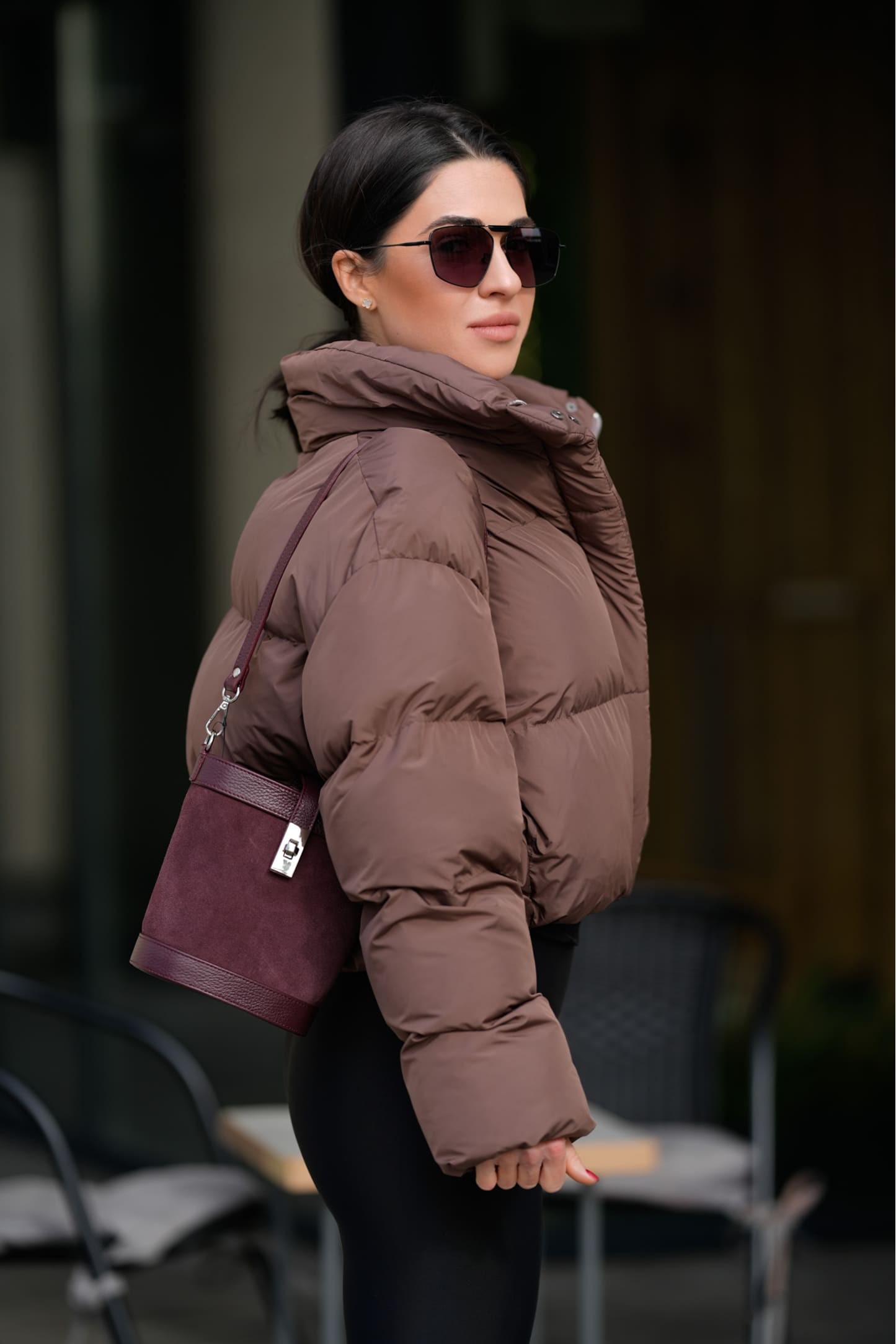 Стильний укорочений пуховик у трендовому кольорі сocoa, створений для тепла й комфорту у холодний сезон. Модель має об’ємний силует, що створює ефект “хмарки”, підкреслюючи сучасний, акуратний look.