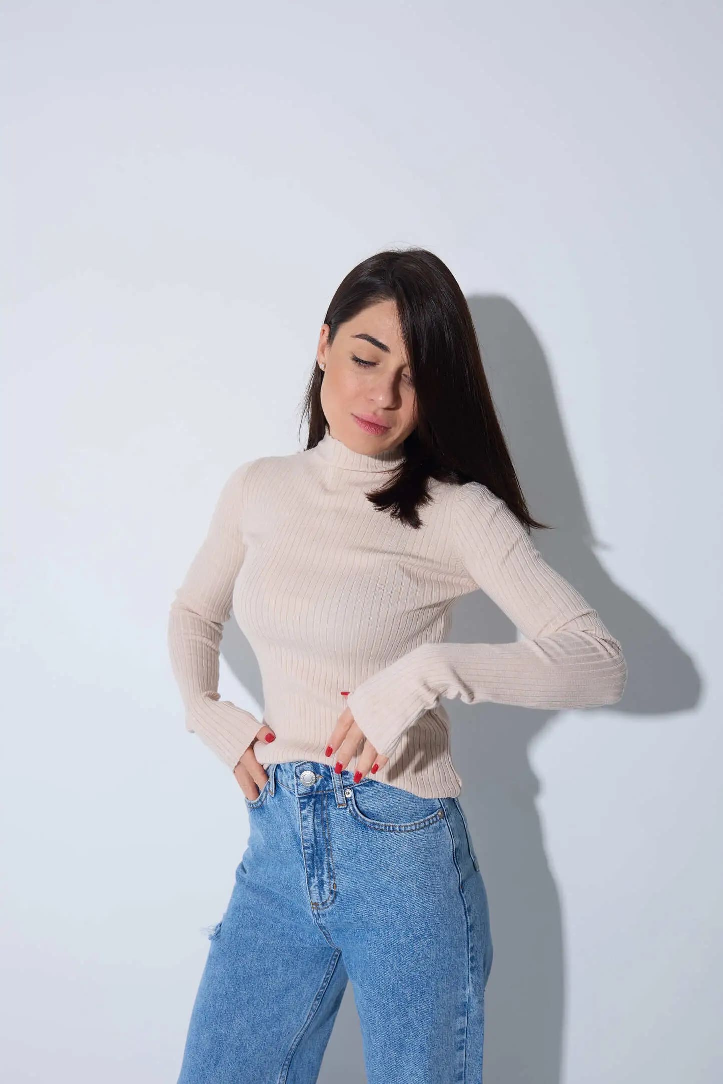 - Повсякденний образ. Для щоденних виходів водолазка стане базою для комфортного і стильного лука. Поєднуйте її з джинсами, кросівками або лоферами, додавайте легкі кардигани або куртки. Таке поєднання дозволяє швидко створювати готові образи, коли потрібно виглядати охайно, але зручно.