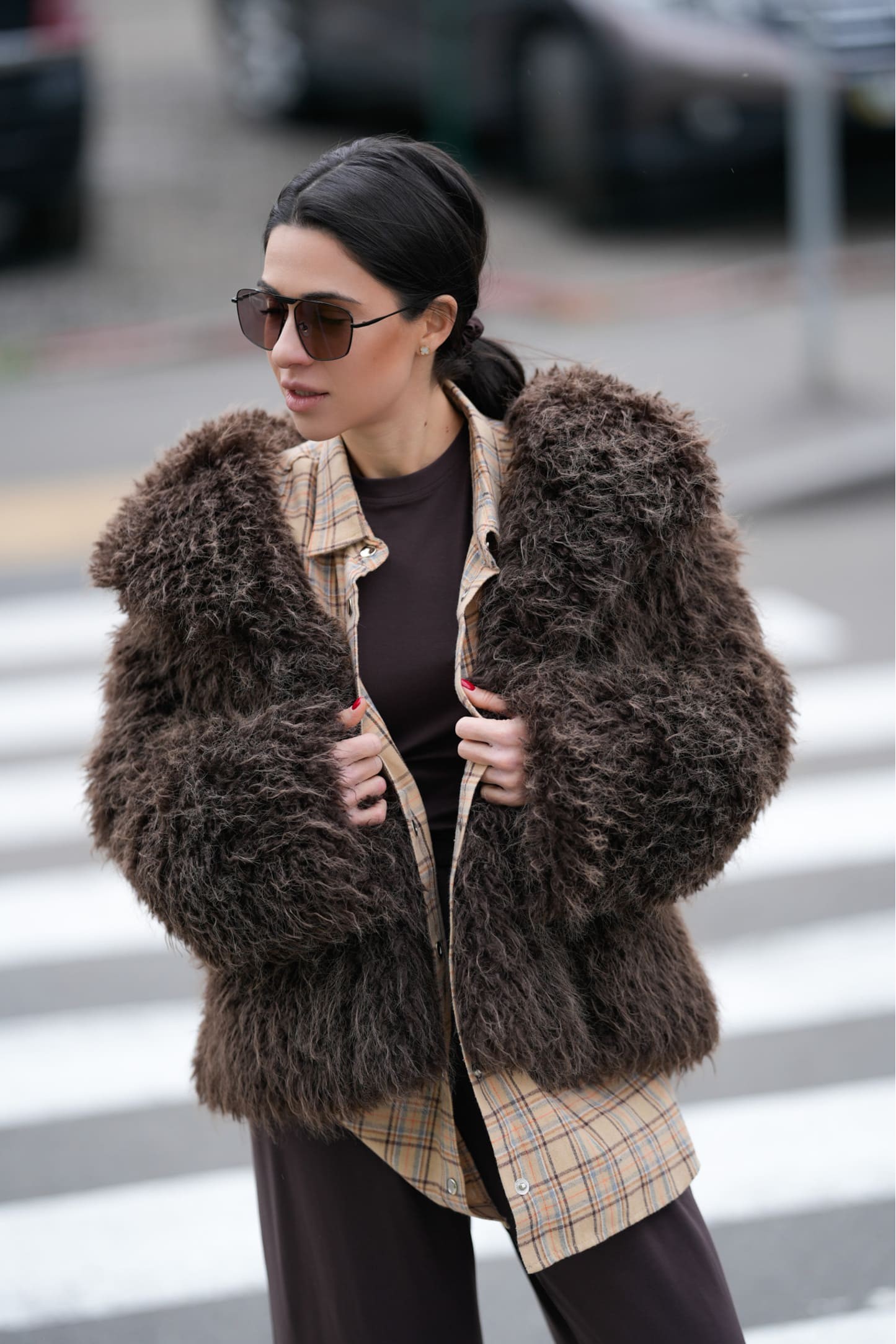 Пухнастий ворс із нерівною текстурою створює ефект дорогого еко-меху.