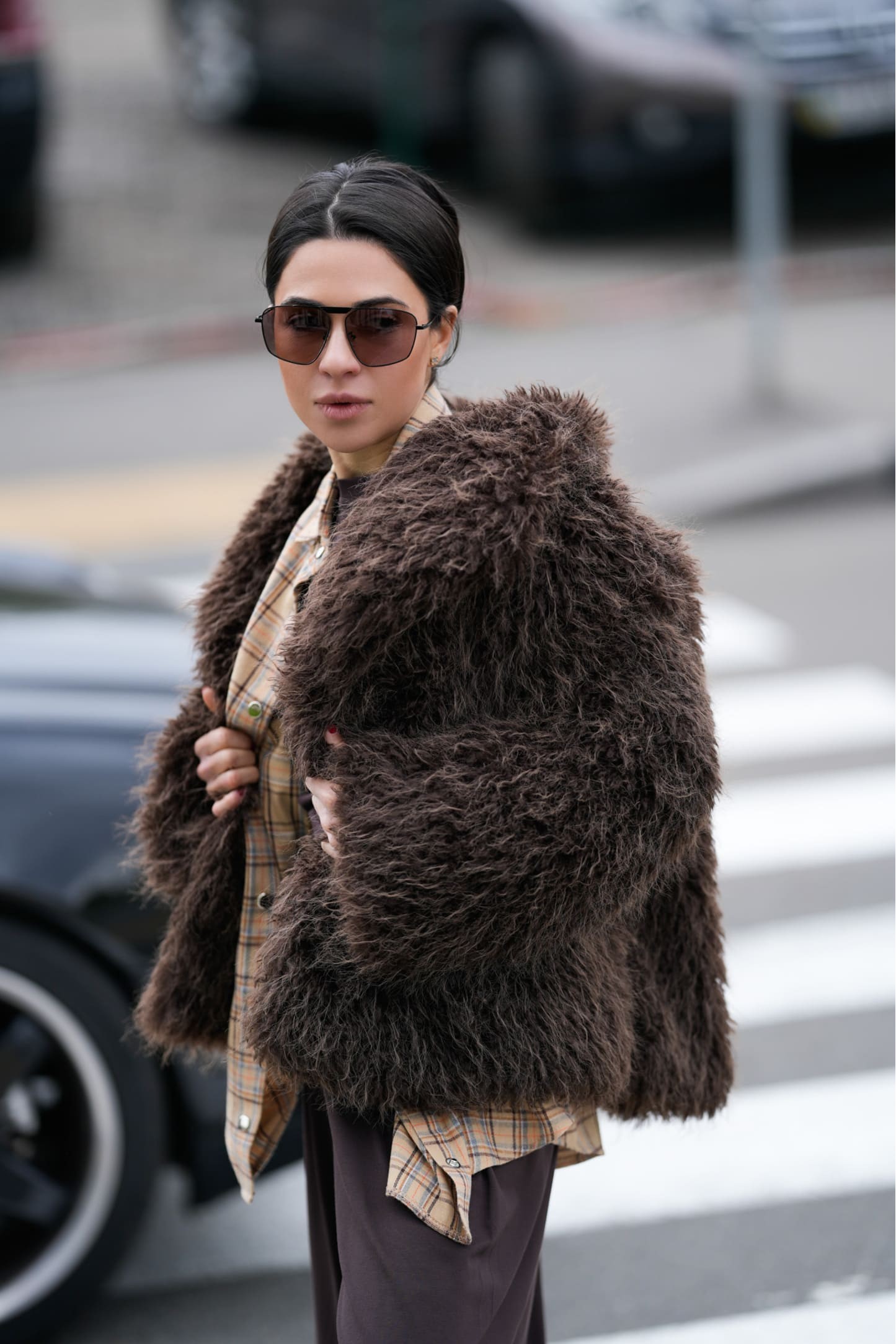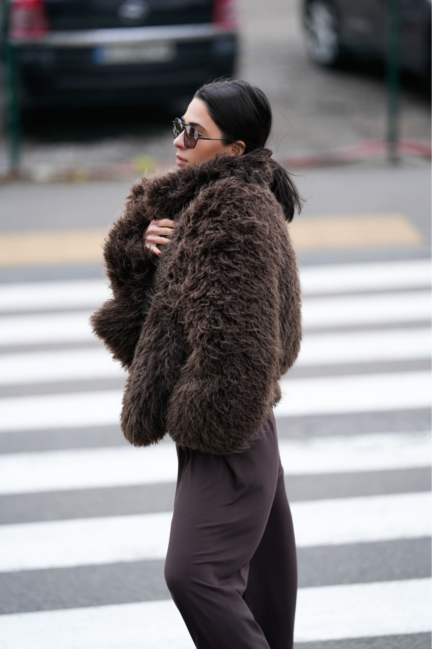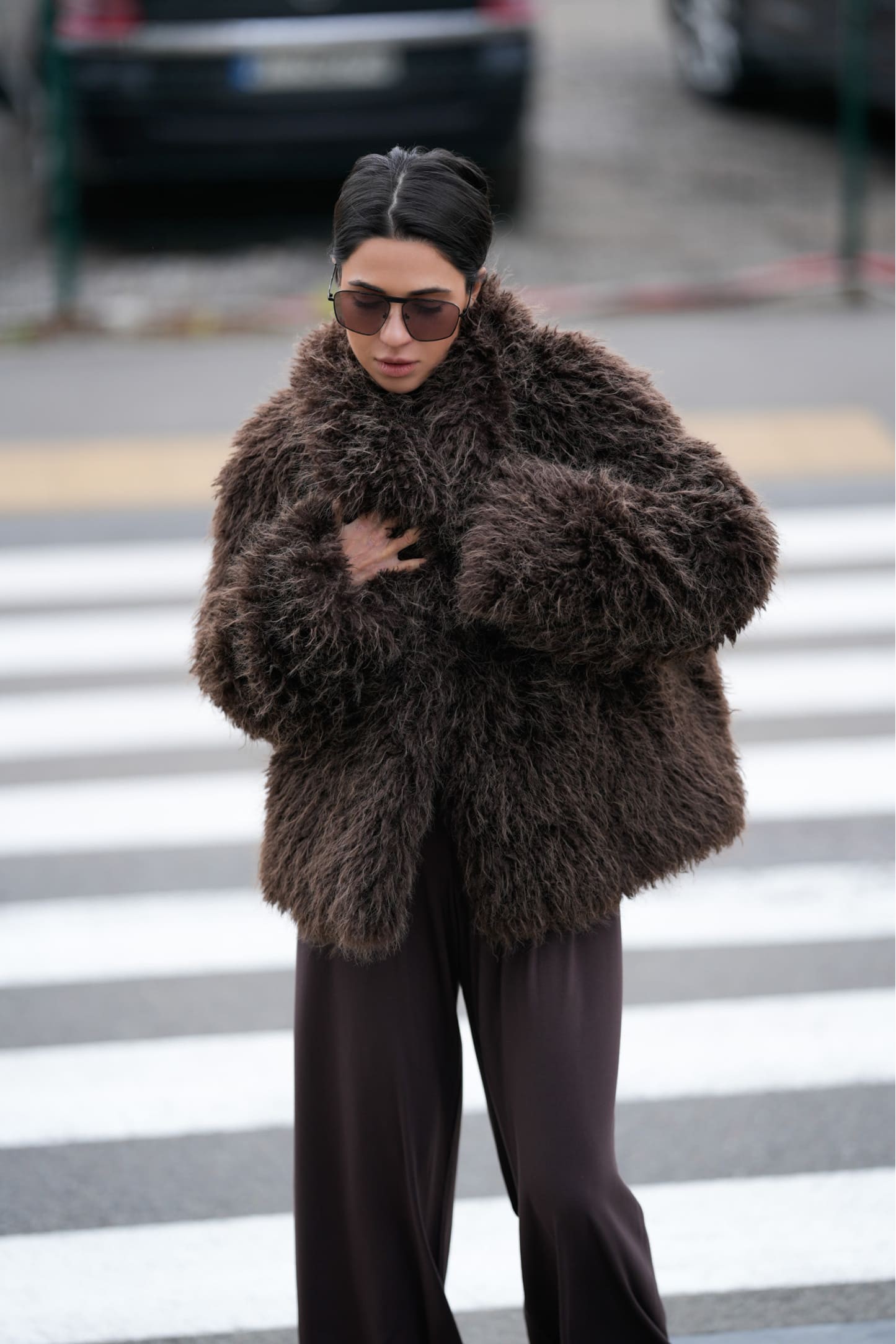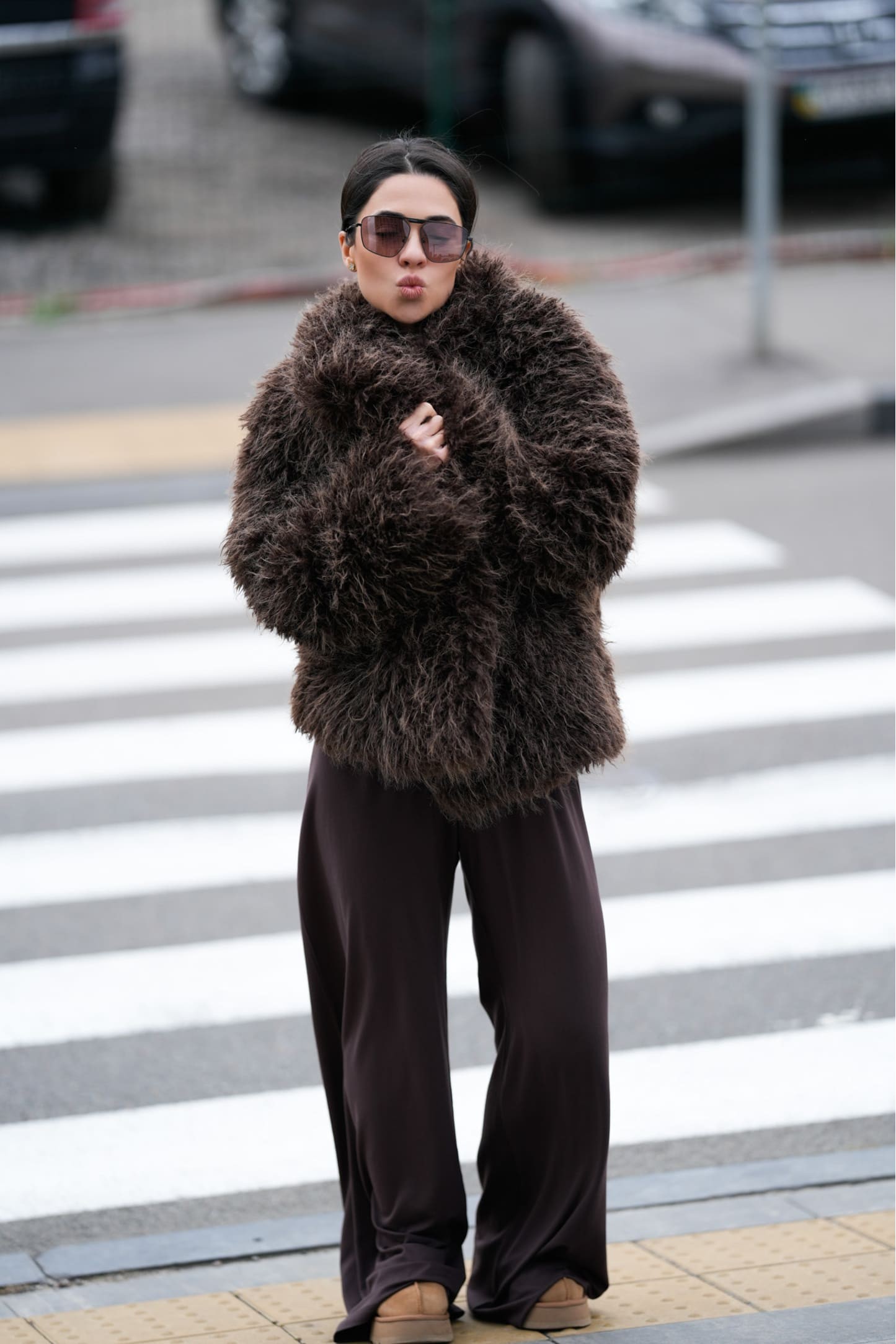 Шуба чудово тримає форму та виглядає масивно, але при цьому не обтяжує образ.