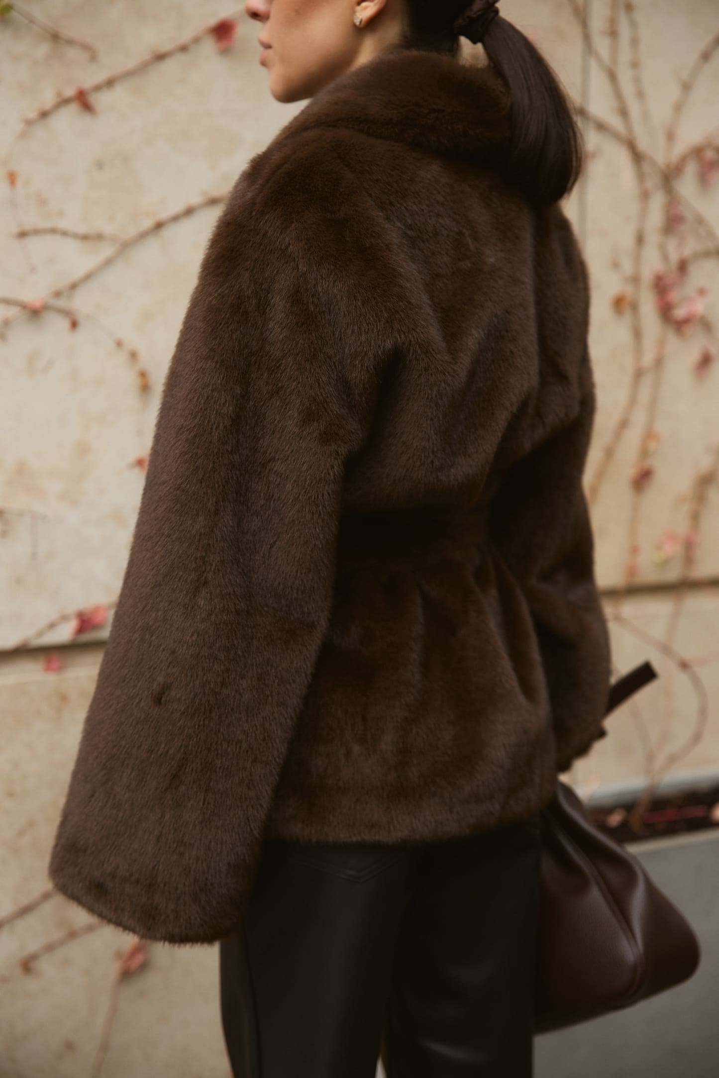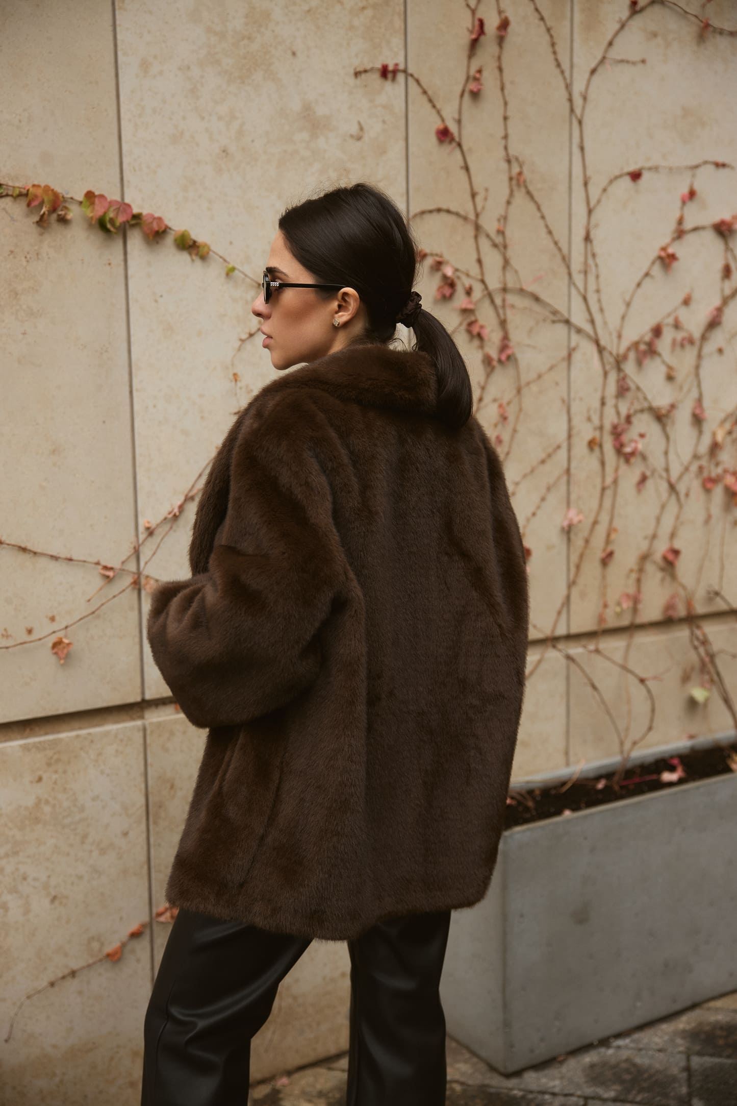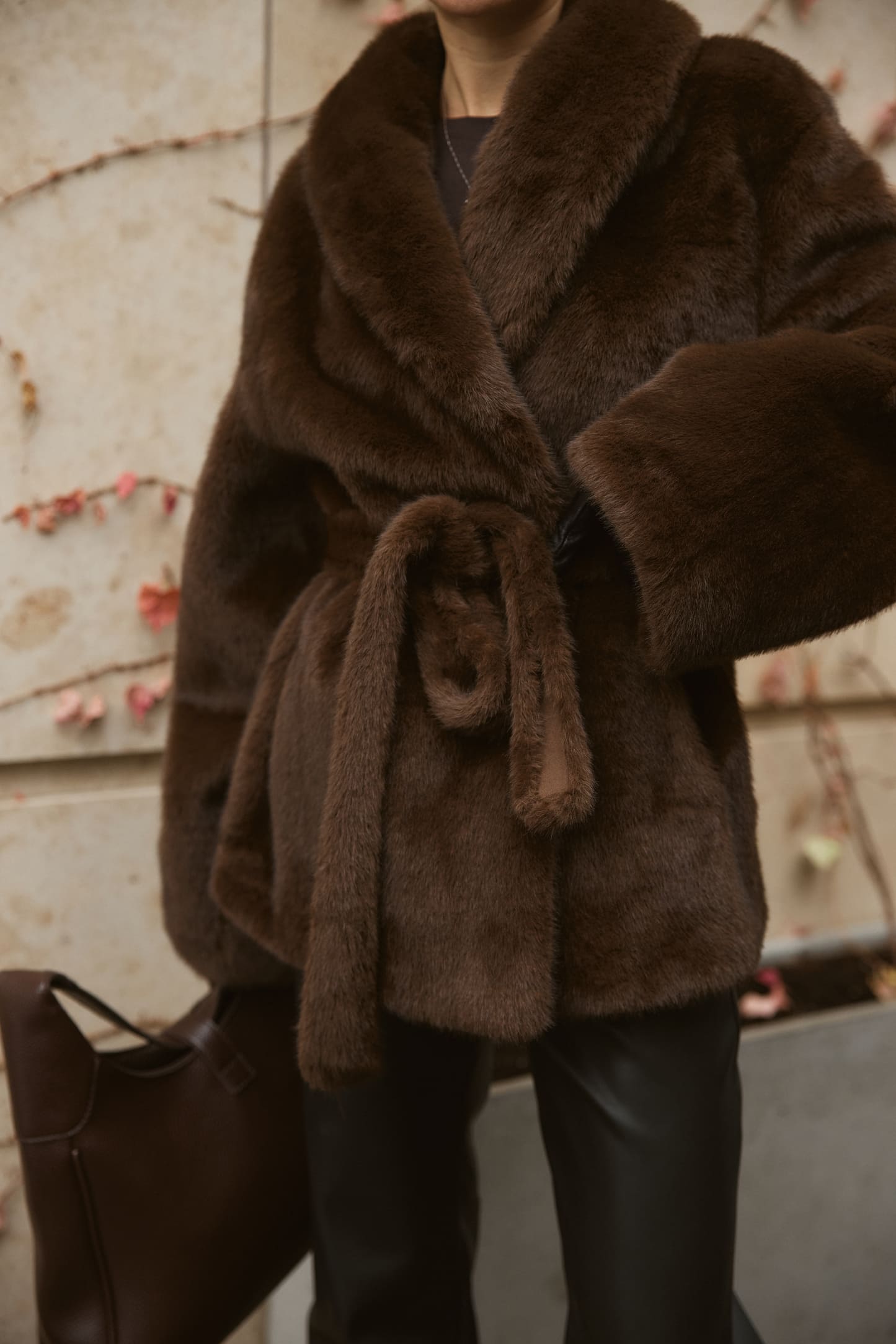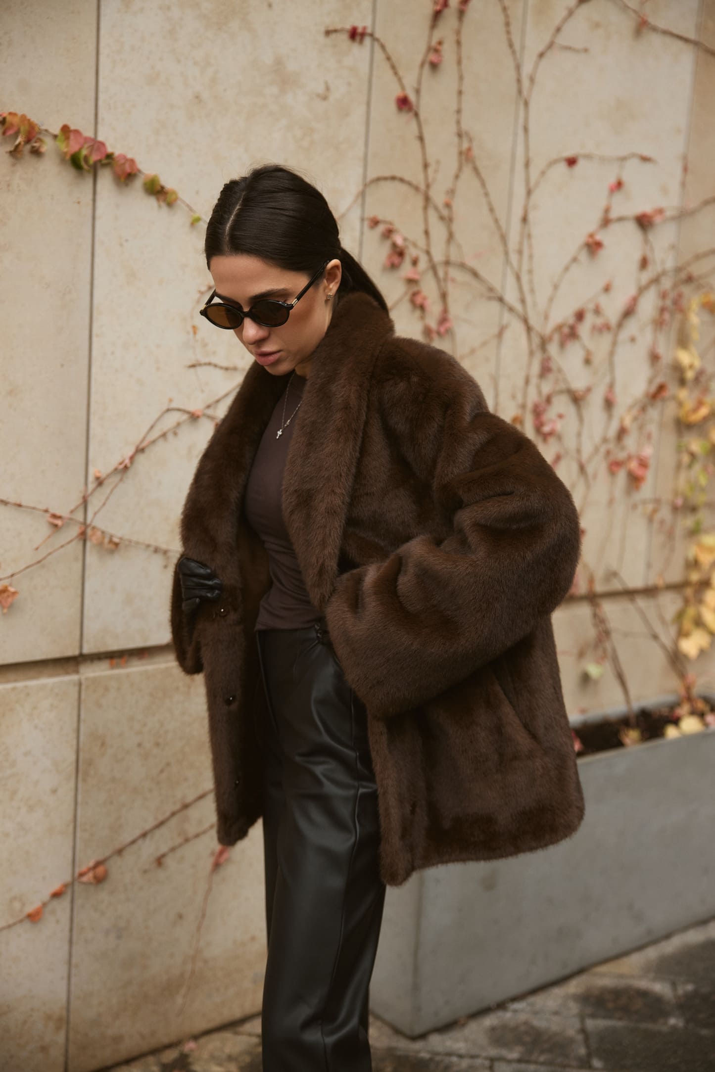 Шуба Fur Luxe Mocha – елегантна модель з насиченим шоколадним відтінком, що створює розкішний і сучасний образ. Вільний силует комфортно сідає поверх светрів та жакетів, а м’яке фактурне штучне хутро без додаткового утеплення дарує приємні тактильні відчуття й підходить для помірно холодного сезону. Широкий комір обрамляє шию та додає виробу статусності, акцентуючи верхню частину силуету.