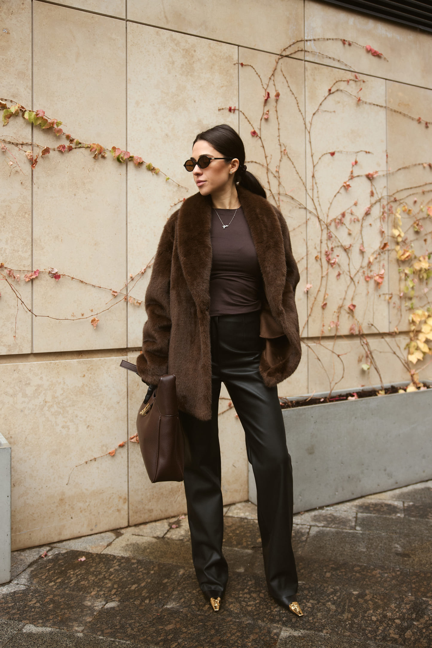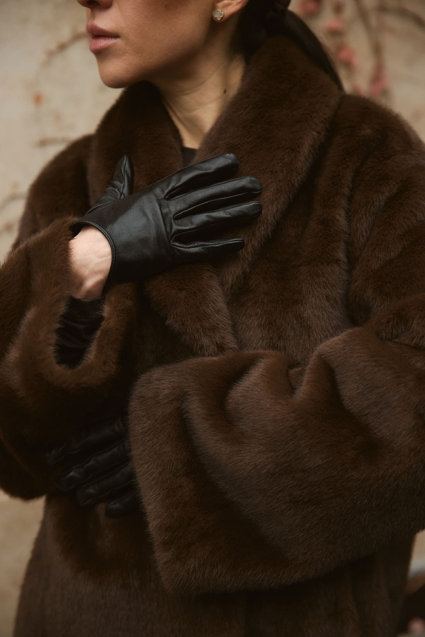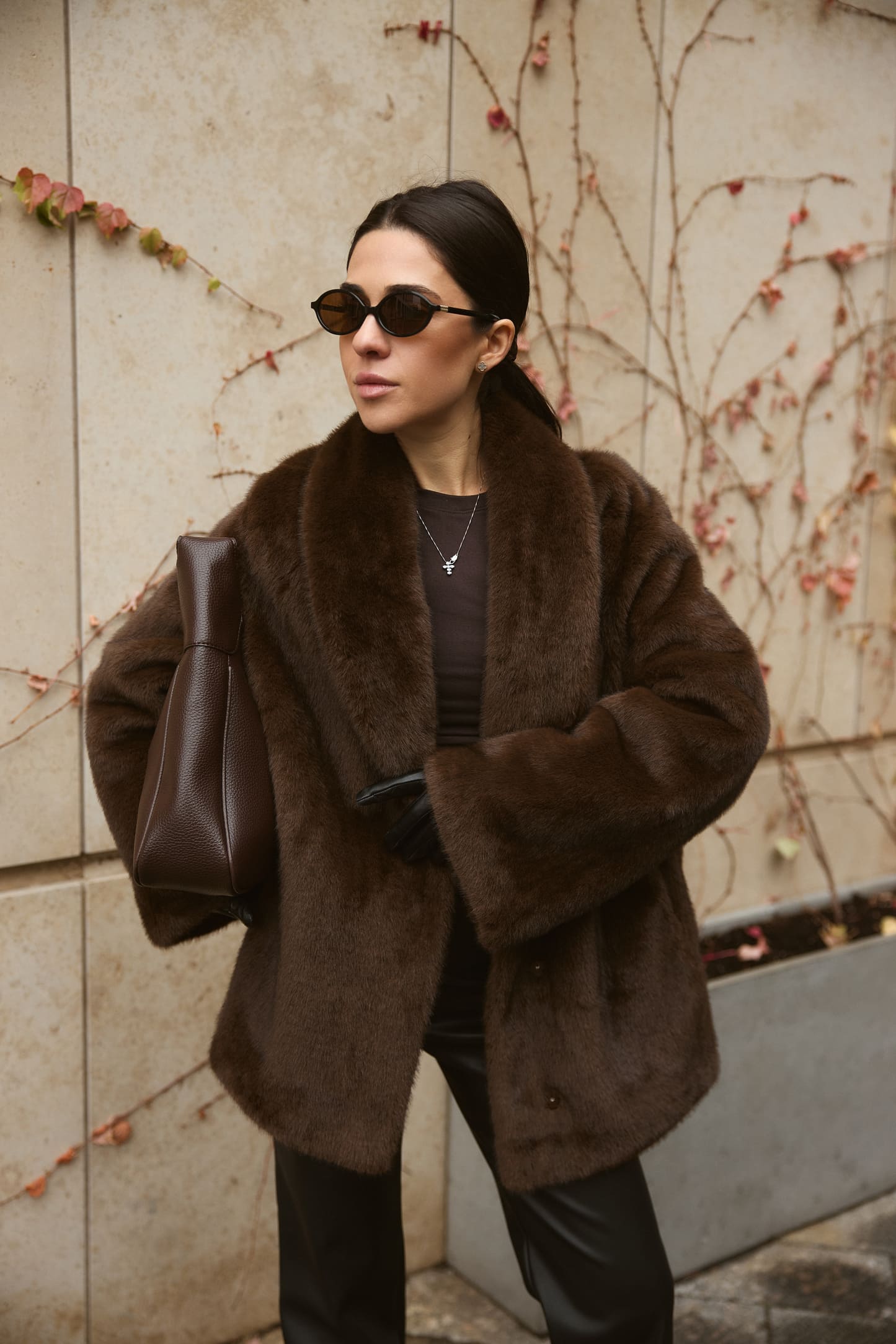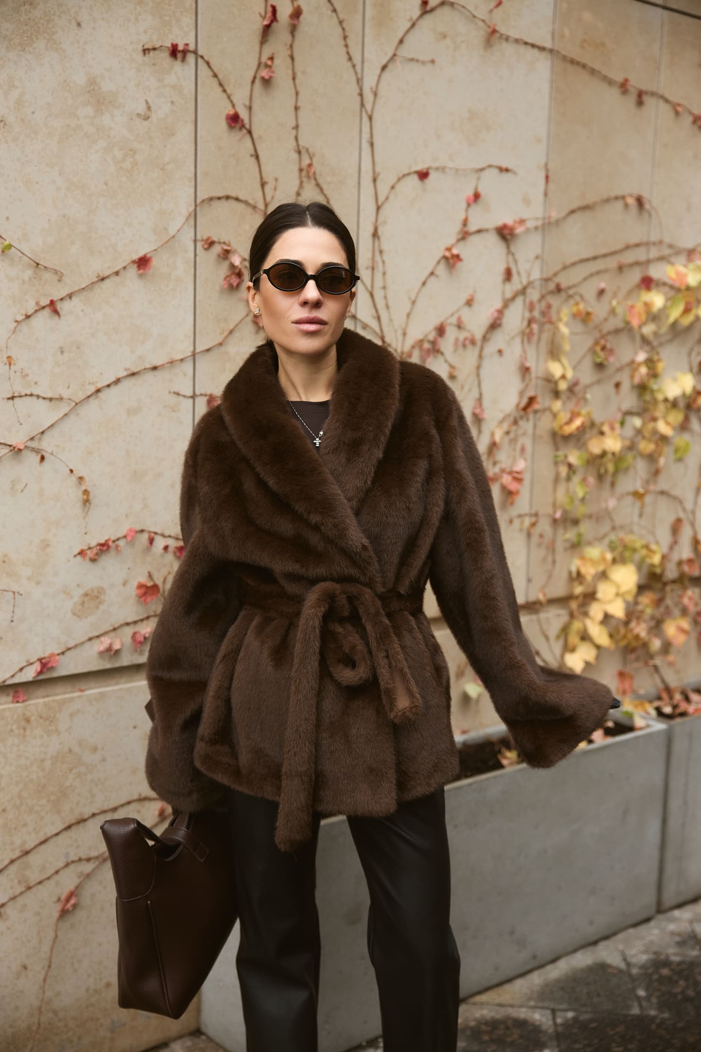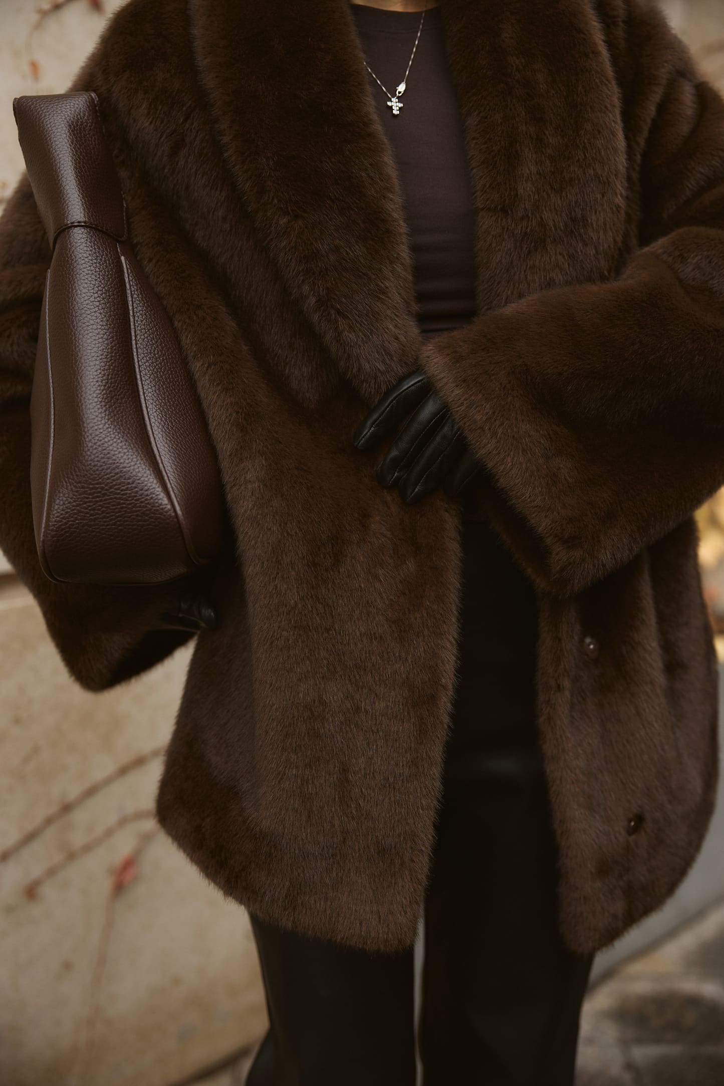 Шуба Fur Luxe Mocha – елегантна модель з насиченим шоколадним відтінком, що створює розкішний і сучасний образ. Вільний силует комфортно сідає поверх светрів та жакетів, а м’яке фактурне штучне хутро без додаткового утеплення дарує приємні тактильні відчуття й підходить для помірно холодного сезону. Широкий комір обрамляє шию та додає виробу статусності, акцентуючи верхню частину силуету.
