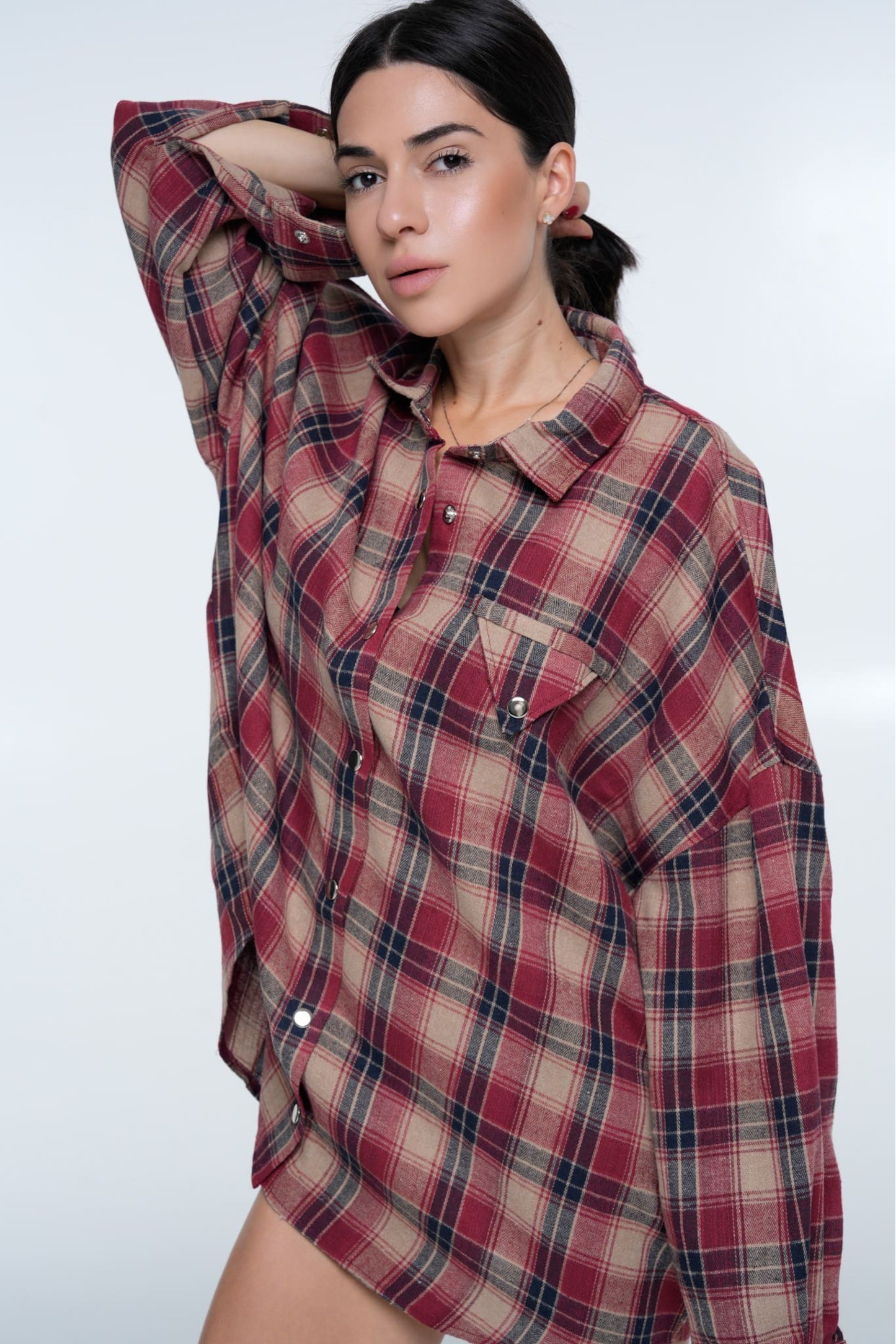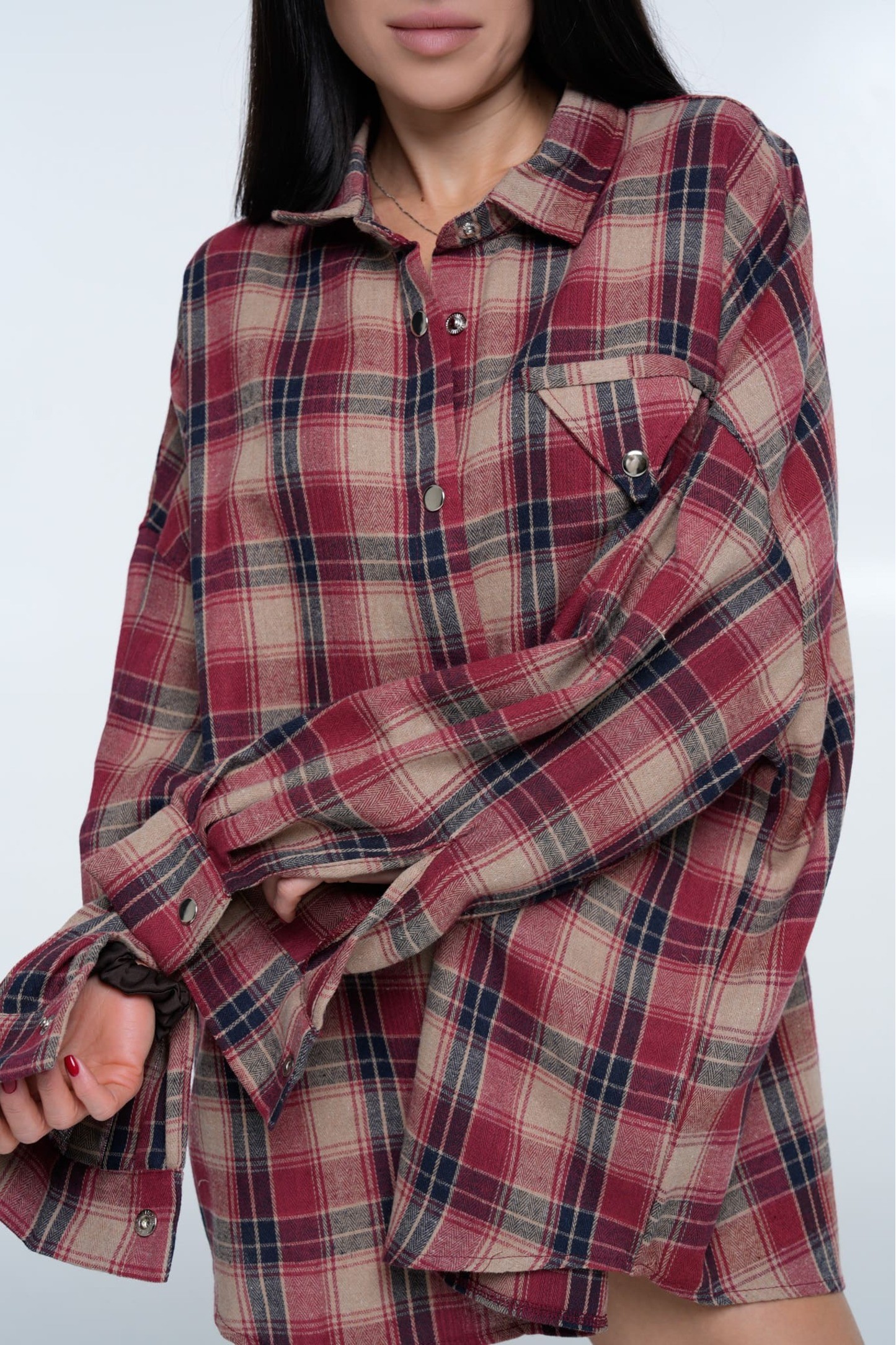 Сорочка Triangle Plaid Burgundy ідеально підходить для повсякденних луків, прогулянок або затишних вечорів. Її можна поєднувати з джинсами, легінсами чи короткими шортами — виглядає однаково стильно у будь-якому варіанті.