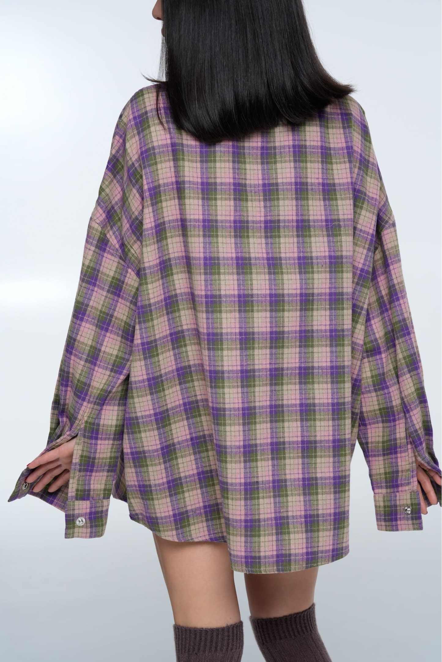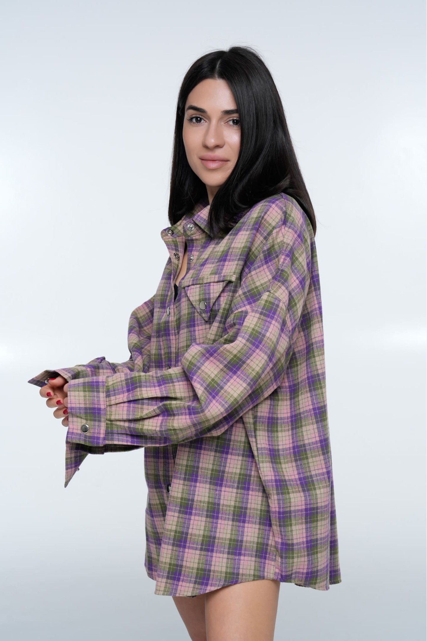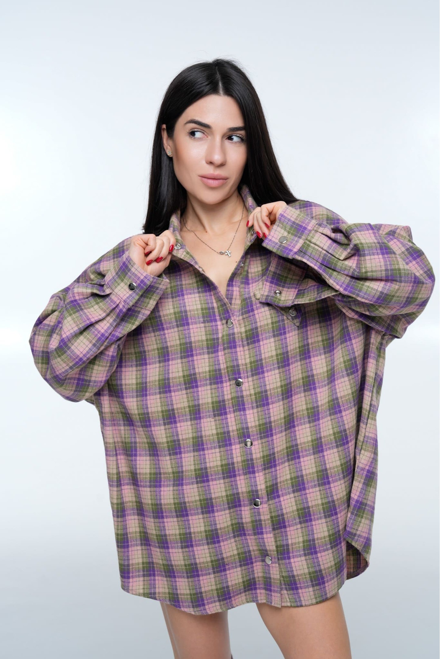 Сорочка Triangle Plaid Фіолетово-оливкова — стильний акцент у вашому гардеробі, який поєднує комфорт і сучасний дизайн. Насичене поєднання фіолетових та оливкових відтінків створює гармонійний візерунок у клітинку, що додає образу виразності та шарму.