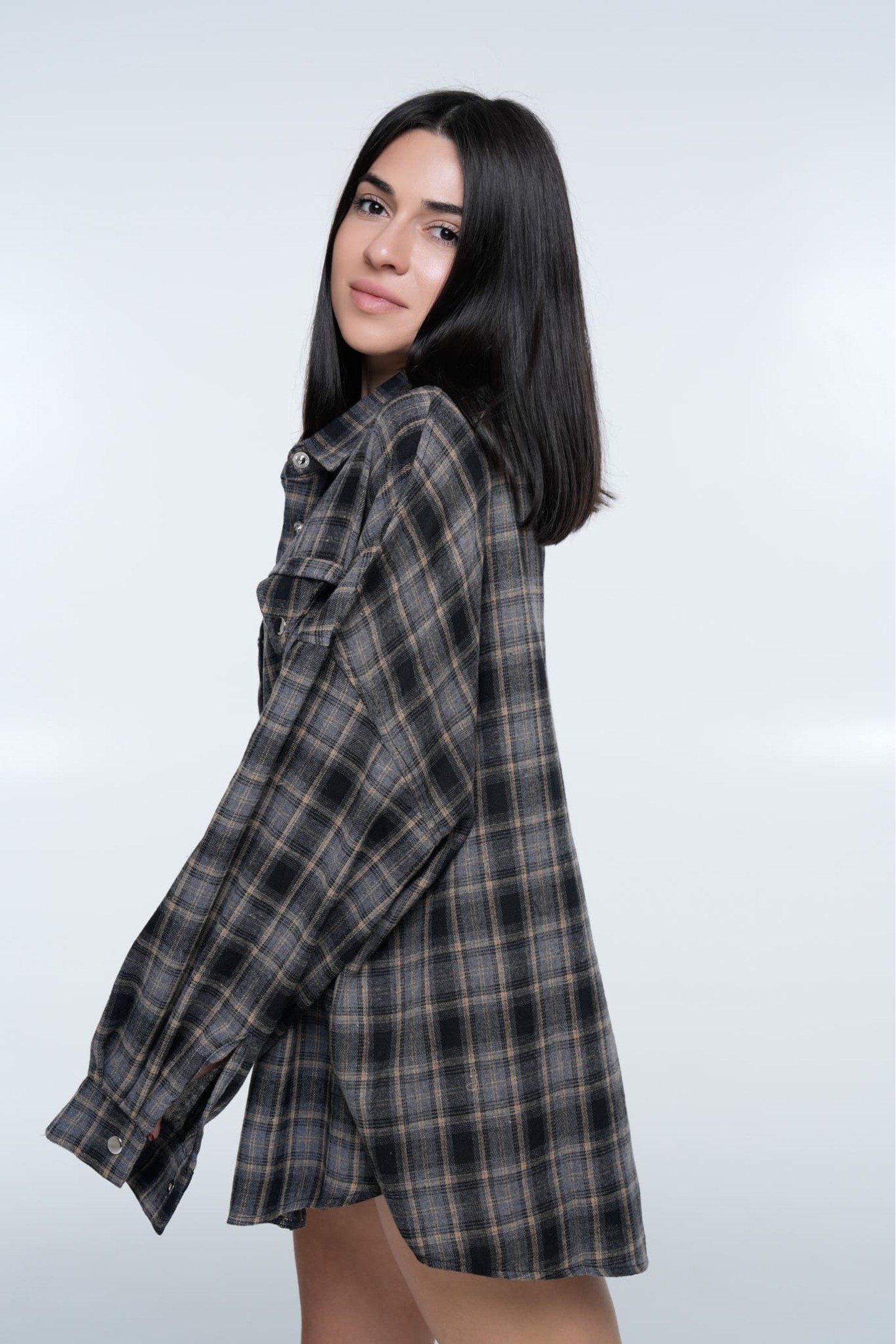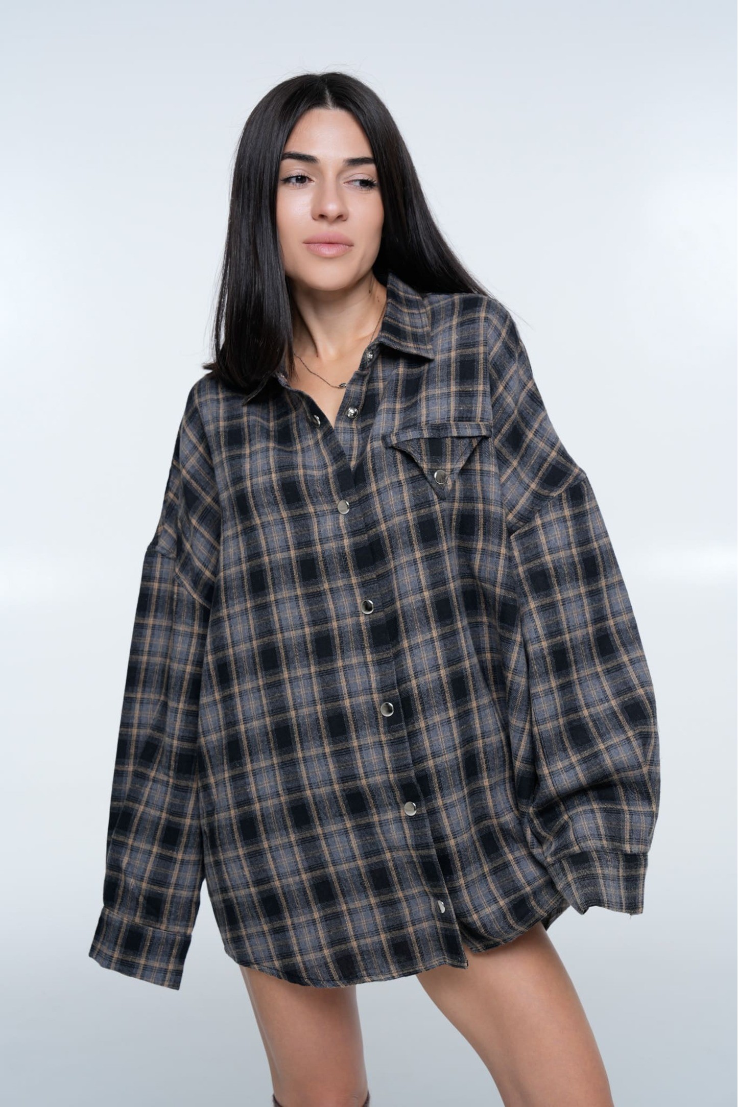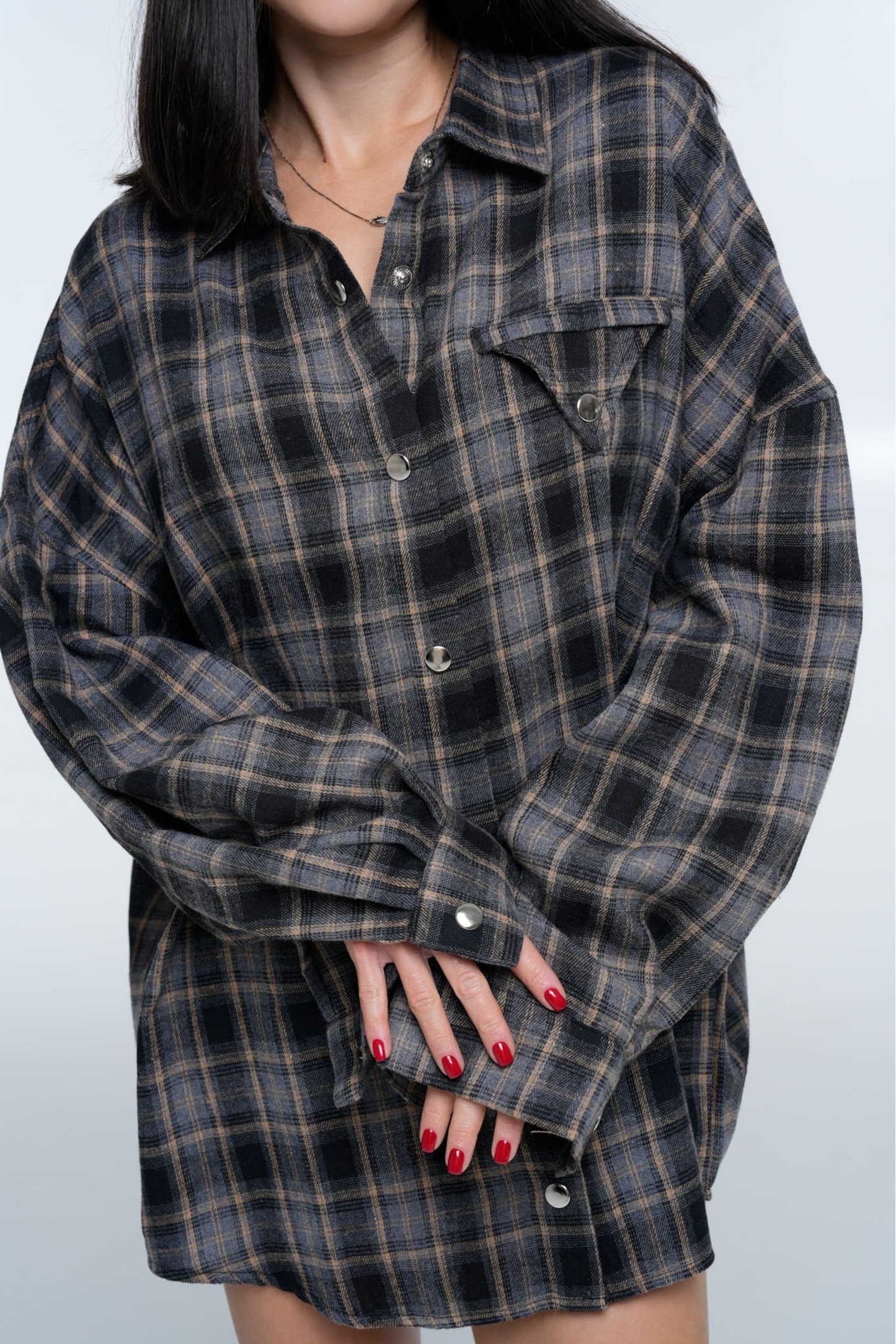 Сорочка в трендовій графітовій клітинці — стильна база для осінньо-зимового гардероба. Модель створена з м’якої фланелі, приємної до тіла, що надає відчуття комфорту й тепла. Вільний крій oversize підкреслює невимушений стиль і дозволяє носити сорочку як самостійний елемент або як легкий верхній шар.