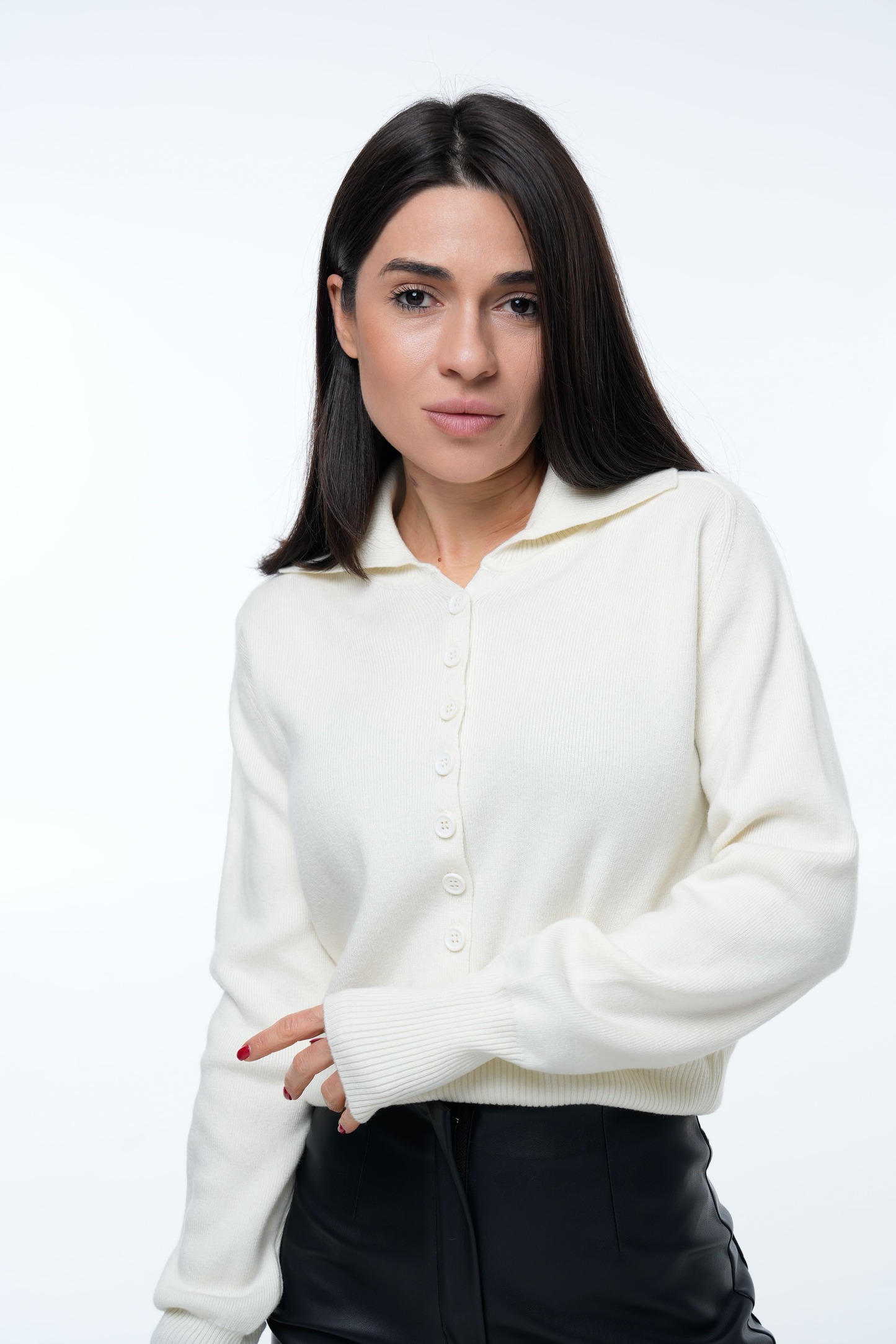 Светр Collar Mood Молочний — стильна та лаконічна модель, виконана у ніжному молочному відтінку. Має акуратний відкладний комір, що додає образу елегантності та сучасності. Завдяки продуманому крою та м’якій фактурі виглядає вишукано як у повсякденних, так і в більш стриманих образах.