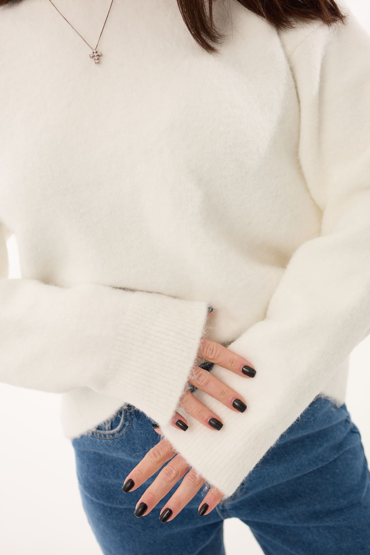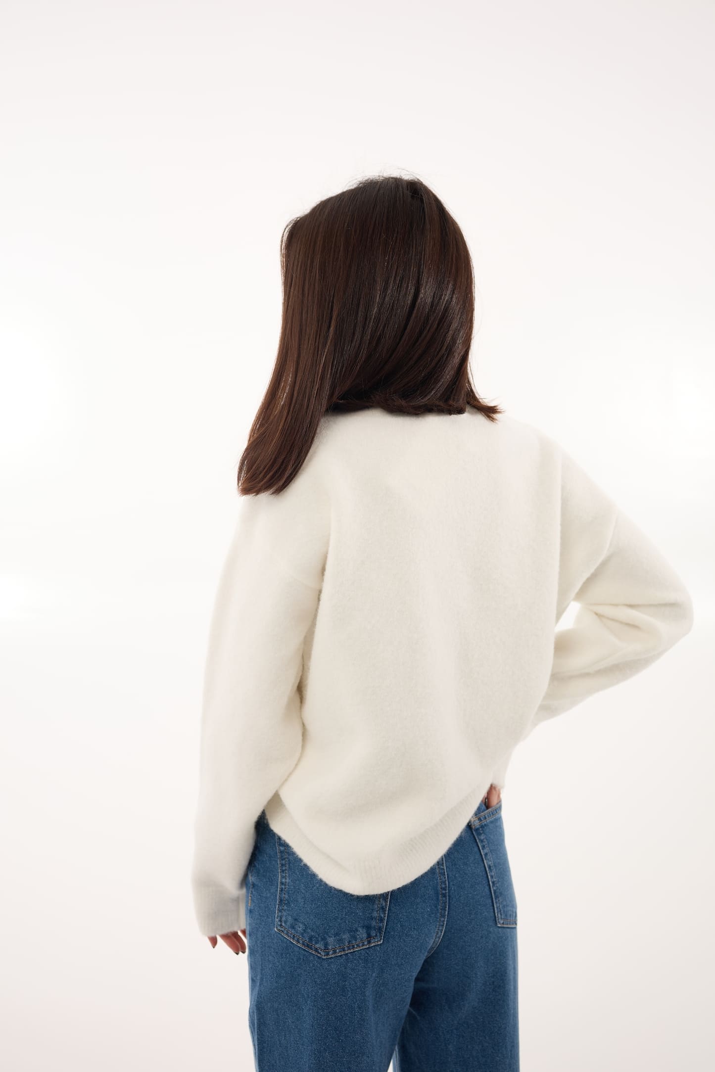 Светр Cozy Aura Білий – стильна база, яка поєднує комфорт і елегантність. Білий відтінок додає образу свіжості та універсальності, роблячи цей светр ідеальним вибором як для повсякденних виходів, так і для більш вишуканих поєднань.