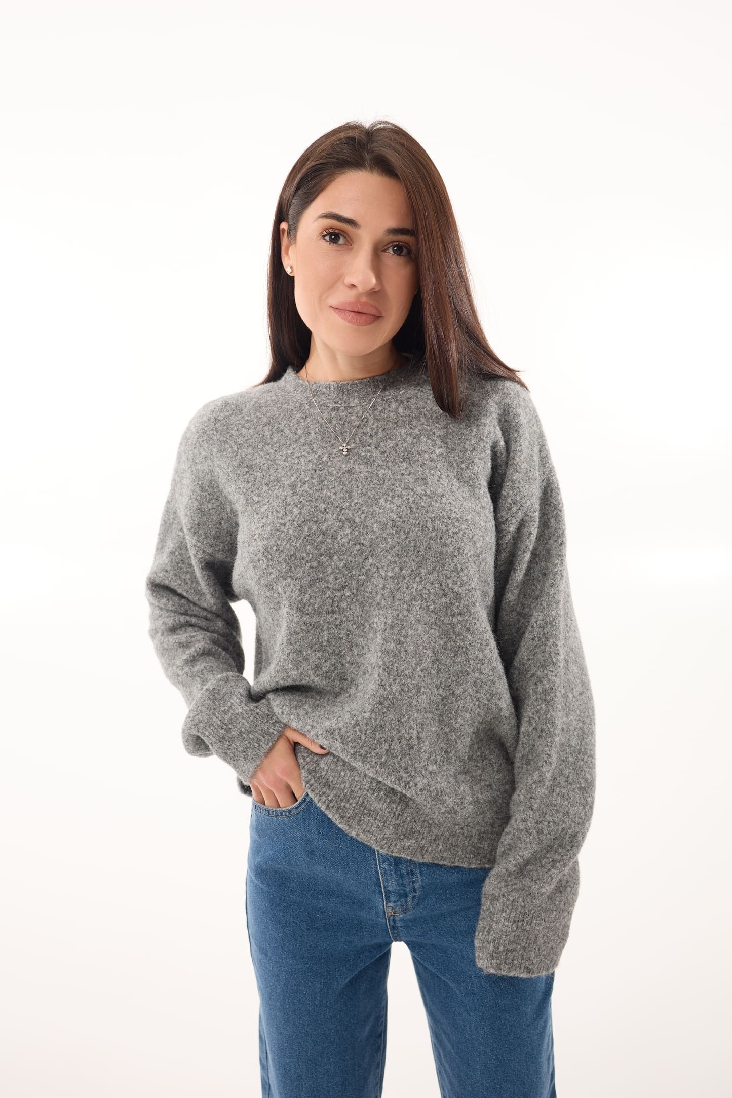 Светр у графітовому кольорі — практичний вибір на щодень і база для створення стильних багатошарових образів.