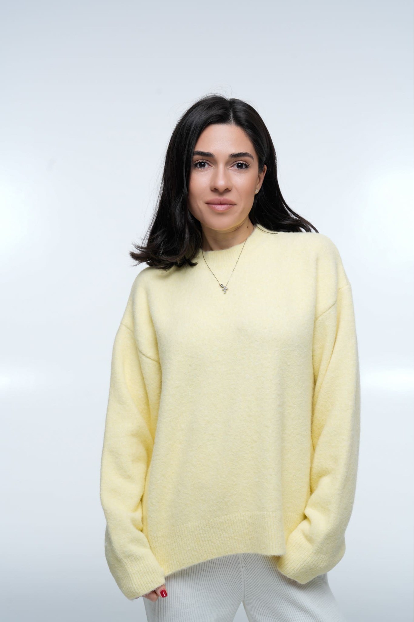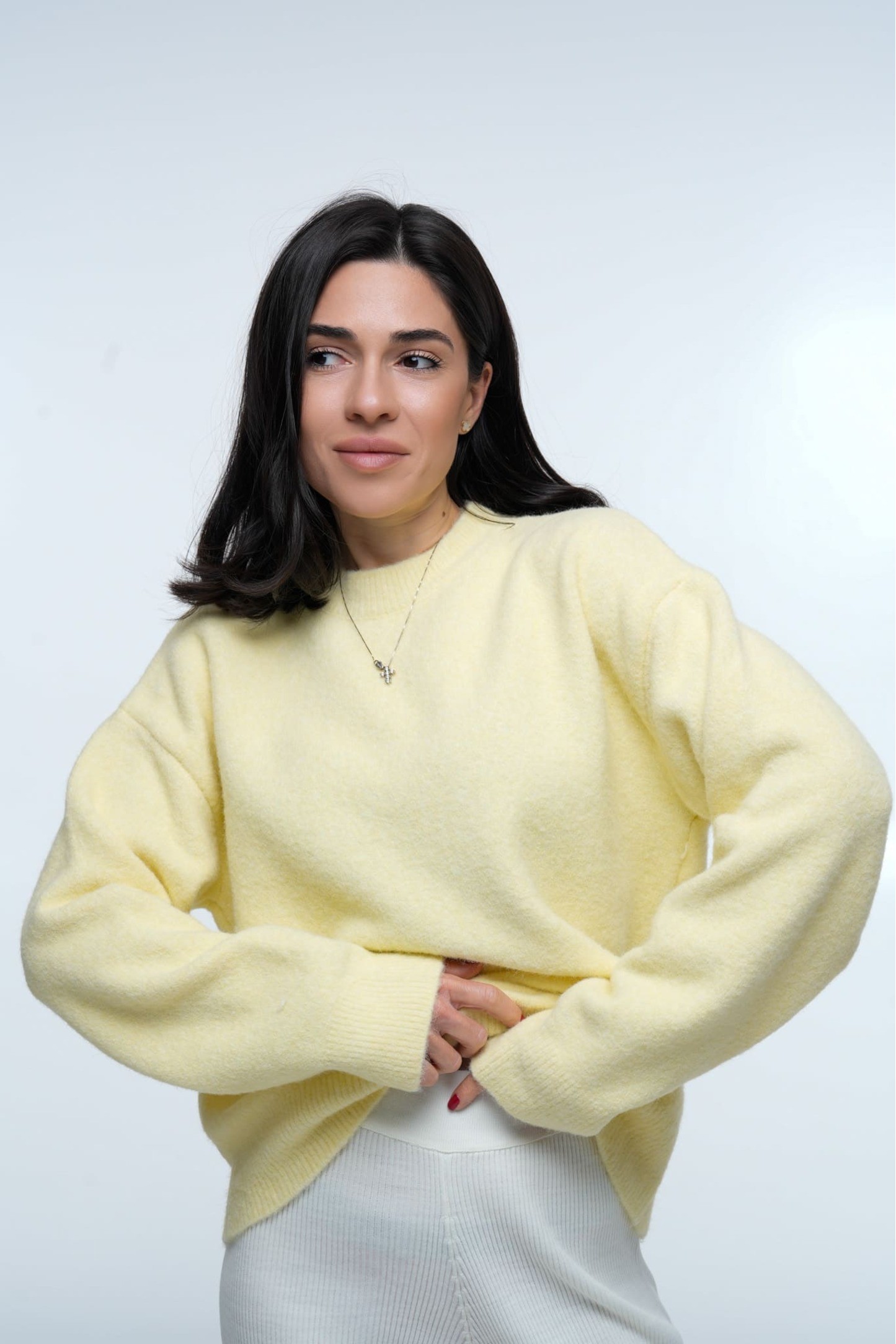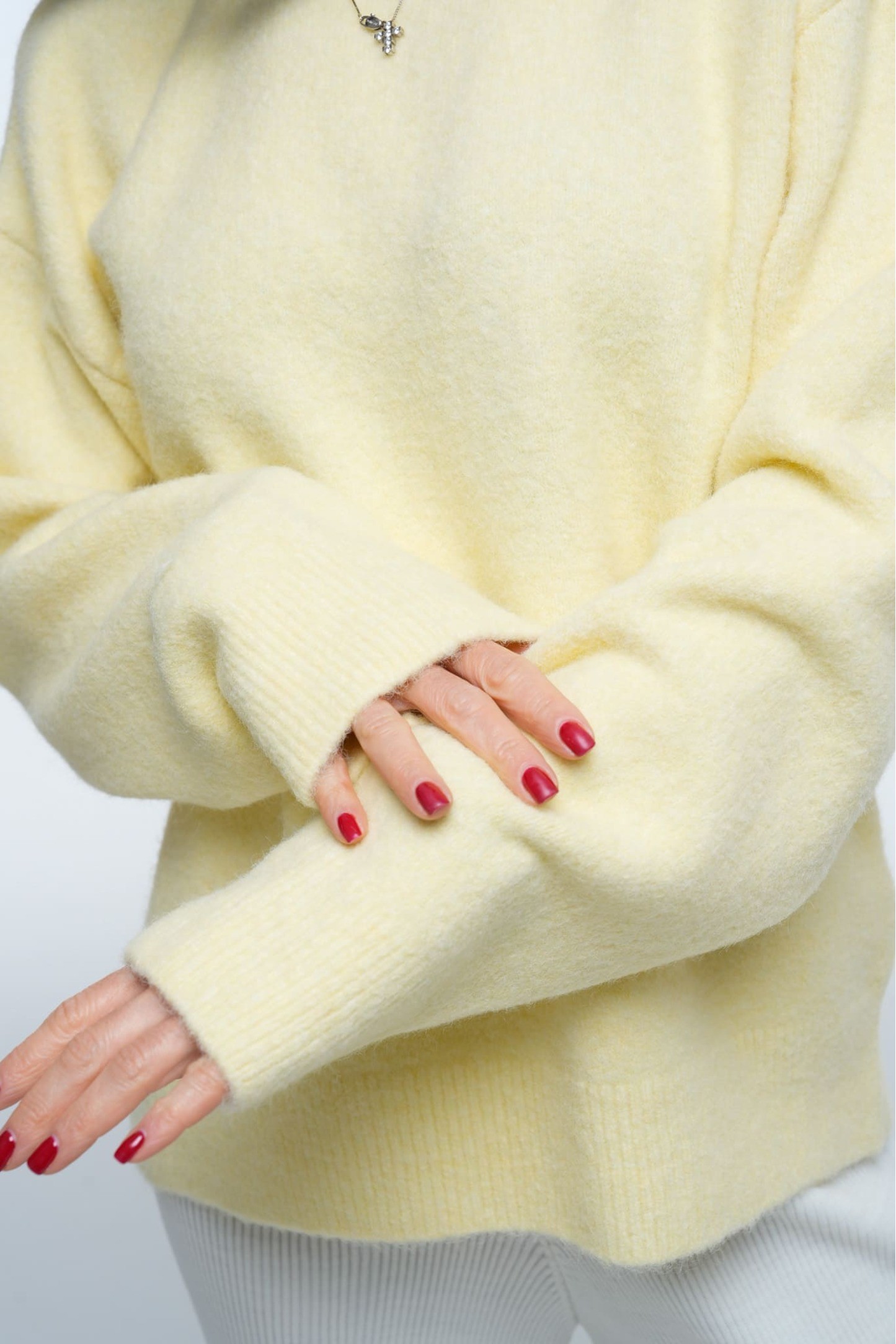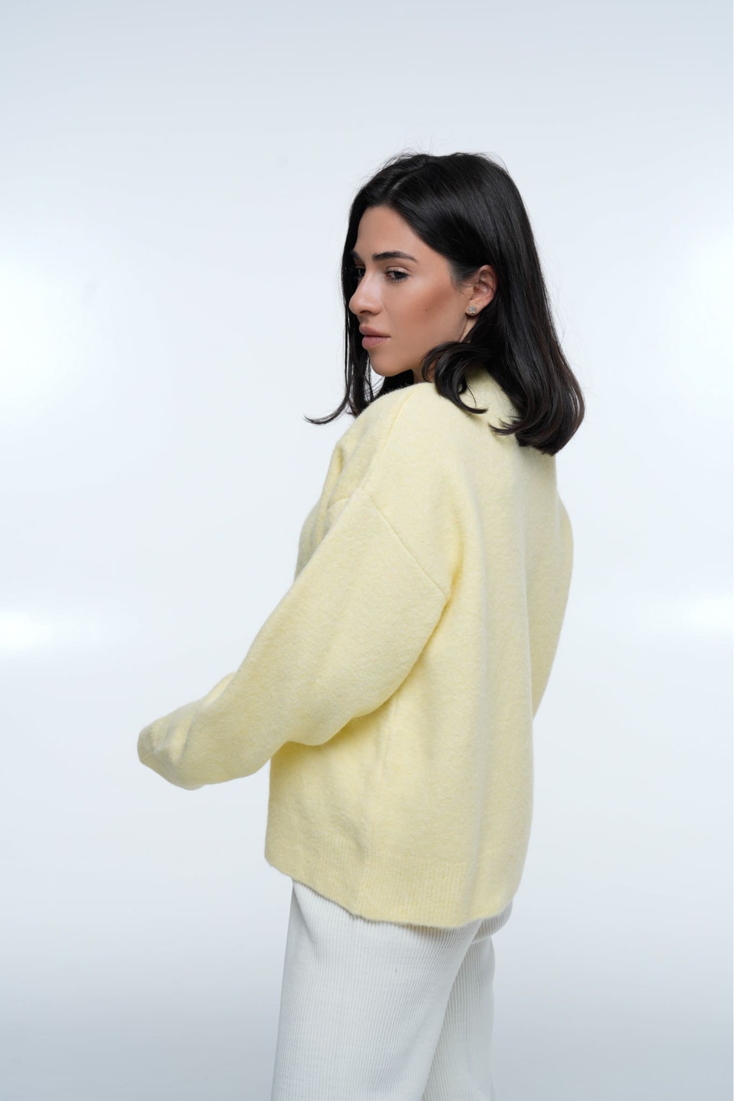 Светр Cozy Aura Light Lemon — це поєднання ніжності, комфорту та мінімалістичного преміум-дизайну. Модель виконана у світло-лимонному відтінку, який додає образу легкості та тепла. М’яка фактурна пряжа робить светр об’ємним, повітряним і надзвичайно приємним на дотик.
