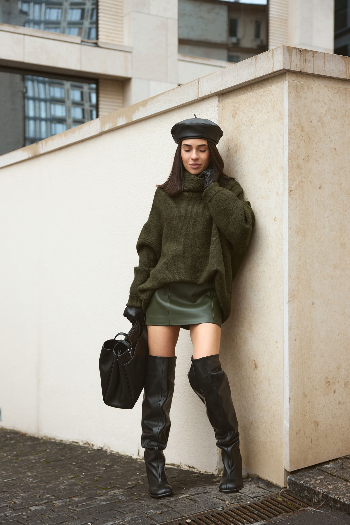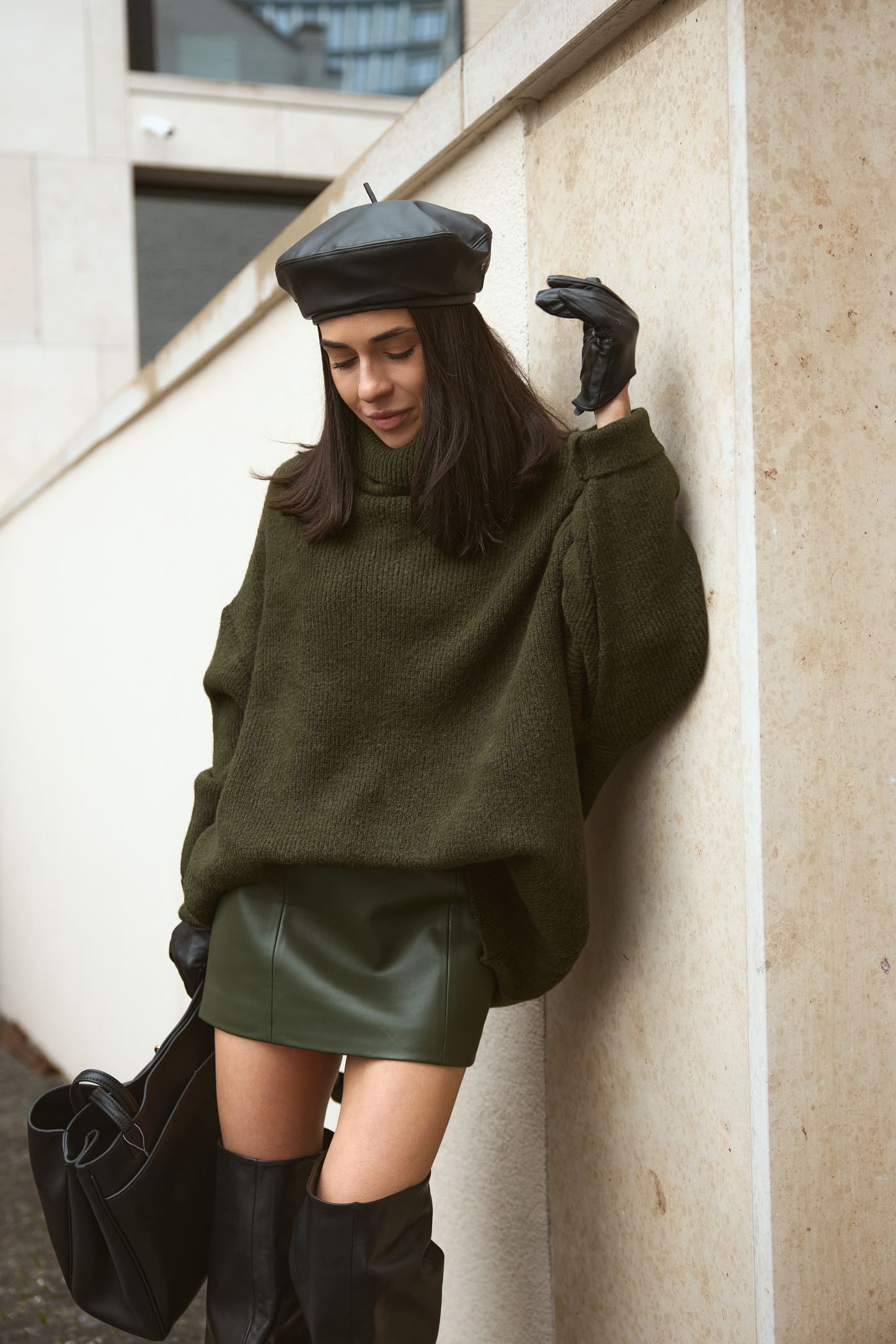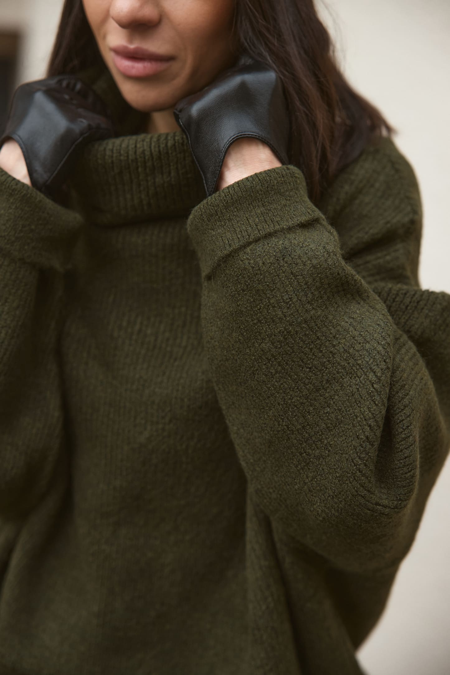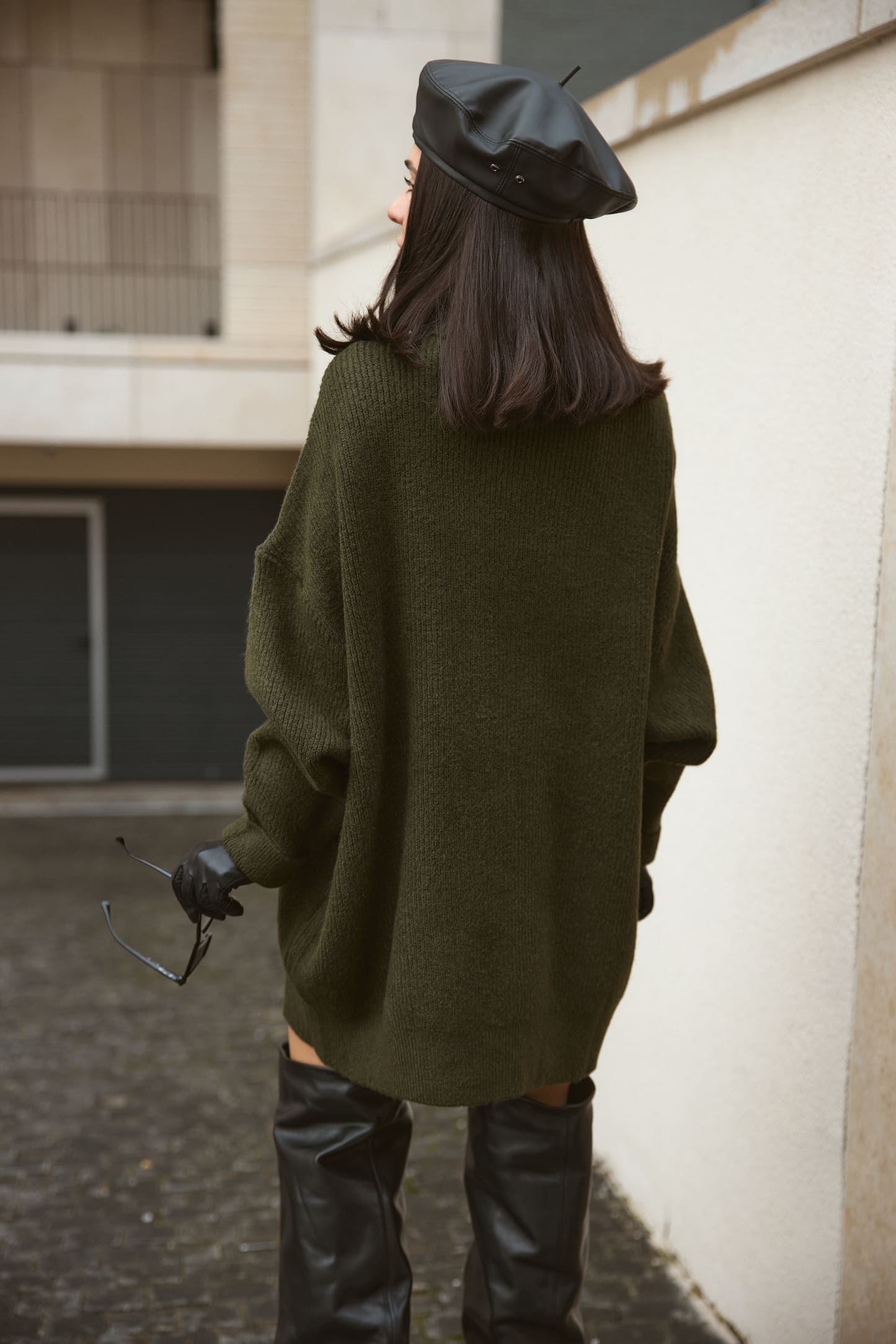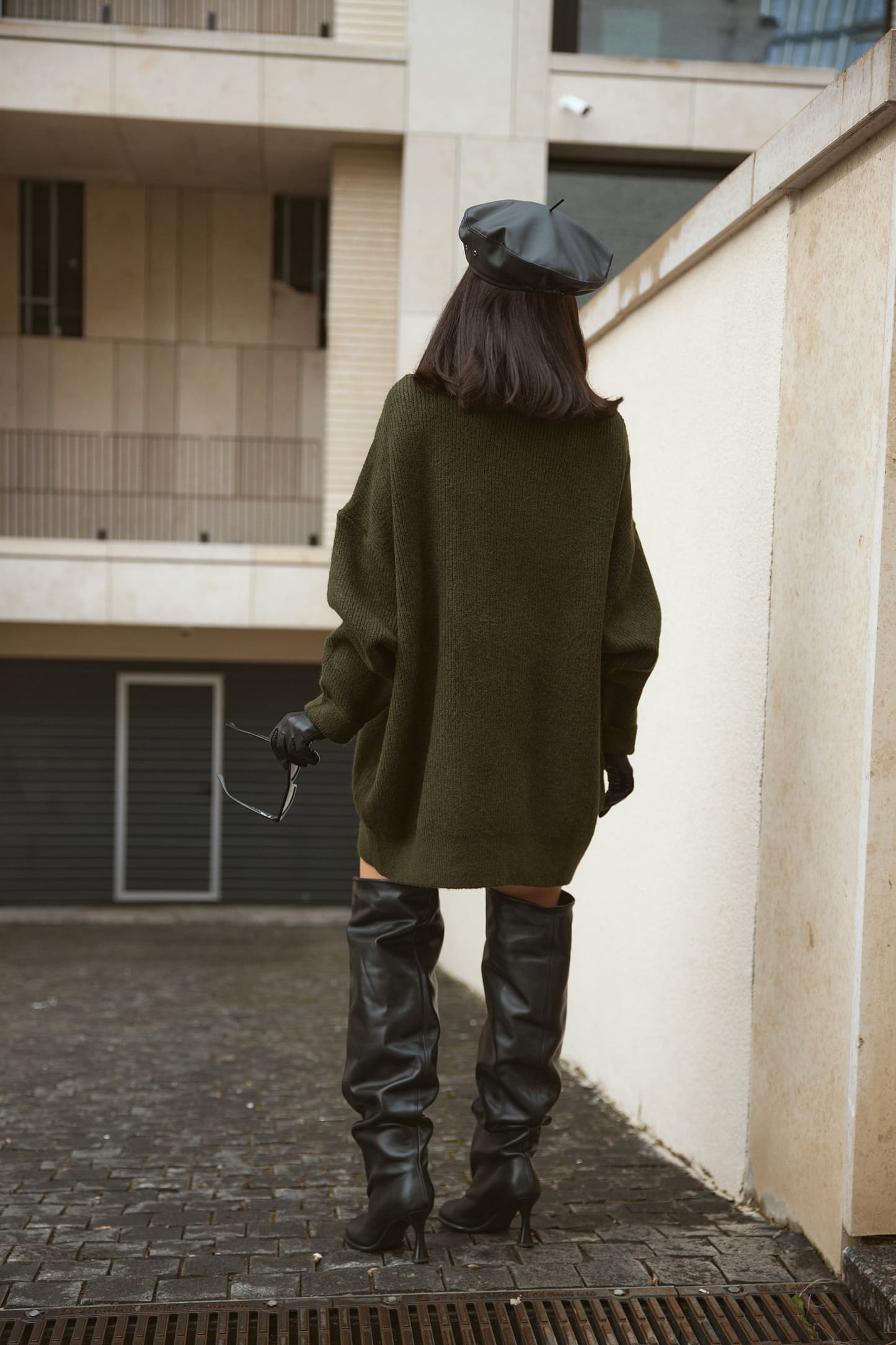 Стильний oversize-светр Warm Hug у глибокому хакі відтінку — це універсальна річ, що поєднує комфорт, трендовий об’ємний силует і м’яку фактуру. Ідеально підходить як для повсякденних образів, так і для стильних виходів у прохолодну погоду.