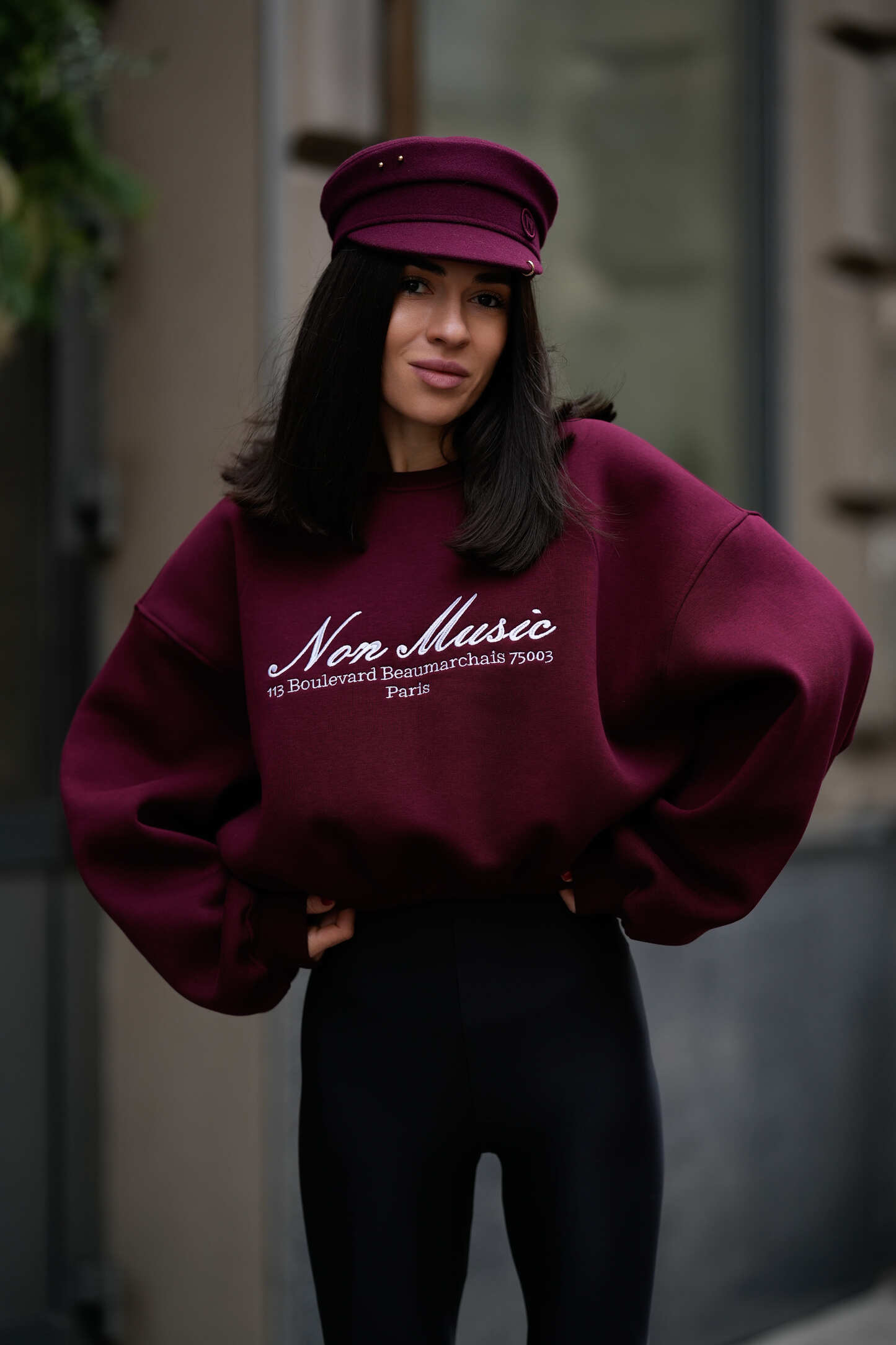 На передній частині — фірмовий принт Non Music із французьким вайбом, що додає виробу стильного характеру. Світшот ідеально підходить для casual-луків, поєднується зі штанами, легінсами, денімом та спідницями.
