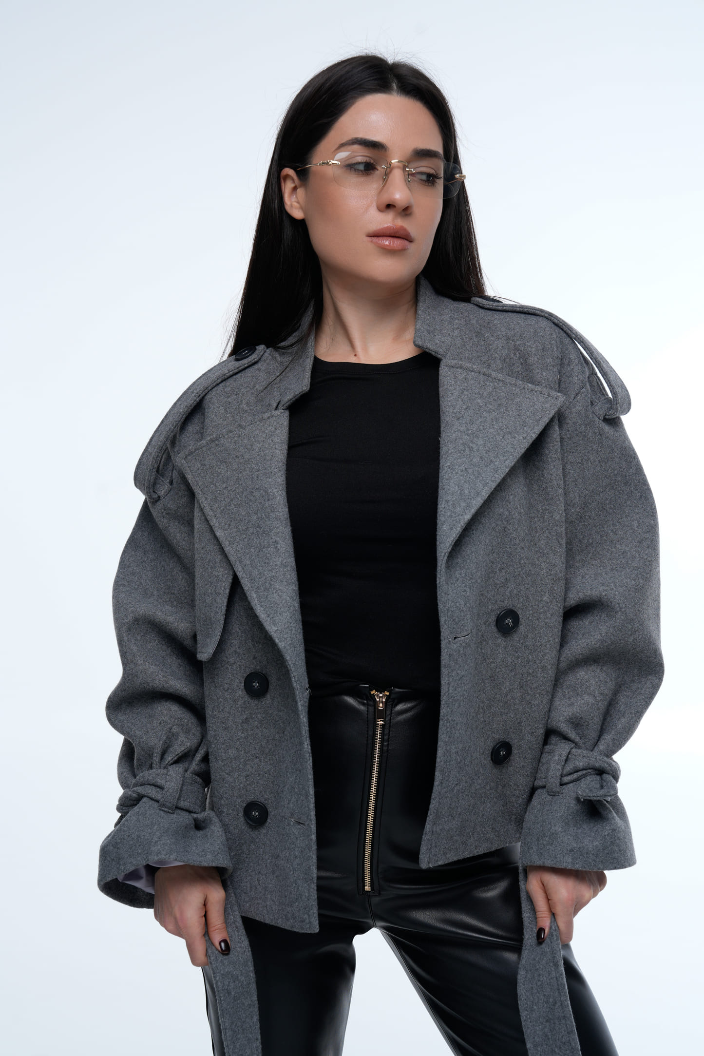 Стильний укорочений жакет у стилі тренча, який поєднує класичні елементи тренча та сучасний силует. Завдяки укороченій довжині модель виглядає актуально та легко поєднується як з брюками, так і зі спідницями чи джинсами. Сірий колір робить жакет універсальним елементом гардероба та дозволяє створювати як повсякденні, так і більш елегантні образи.