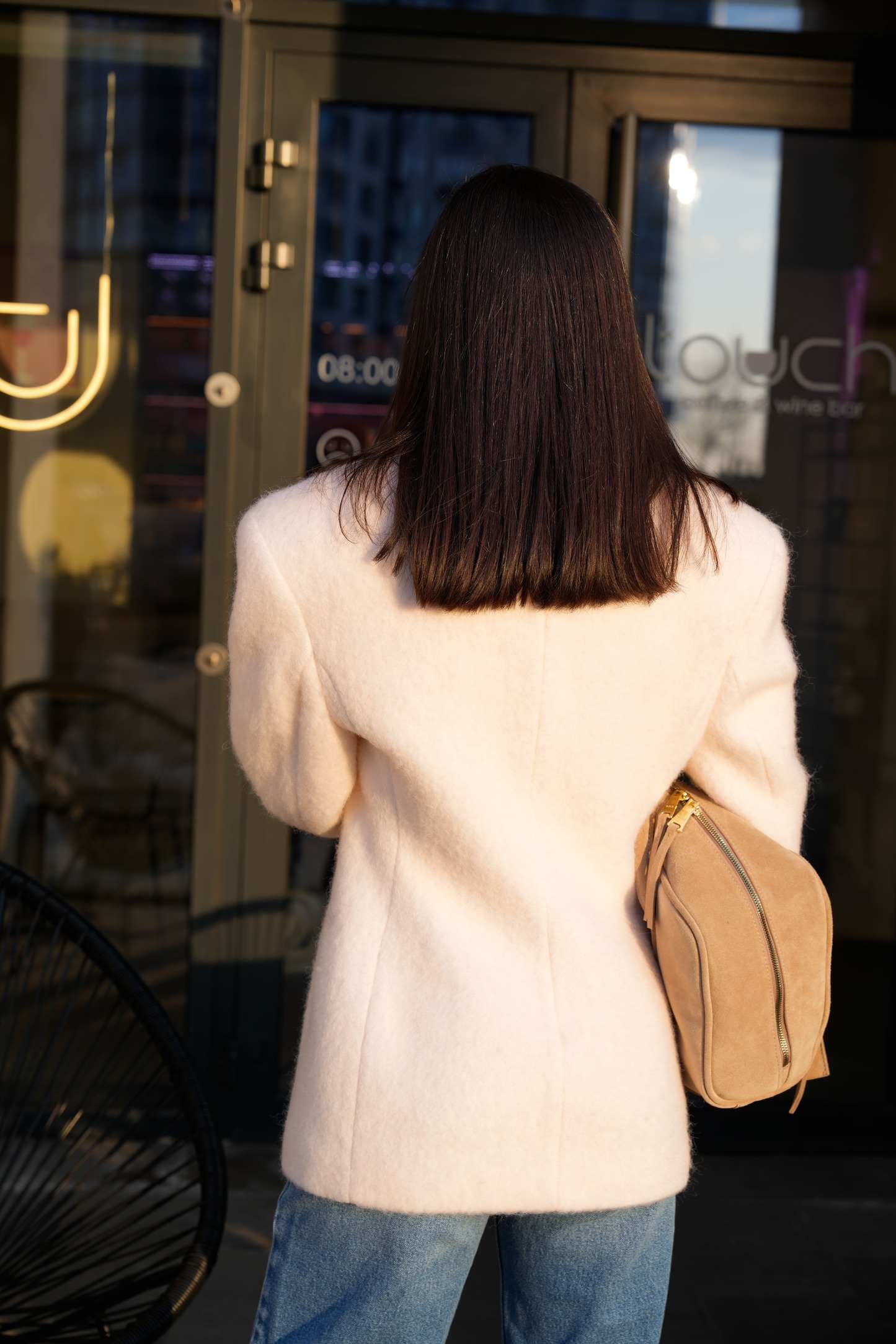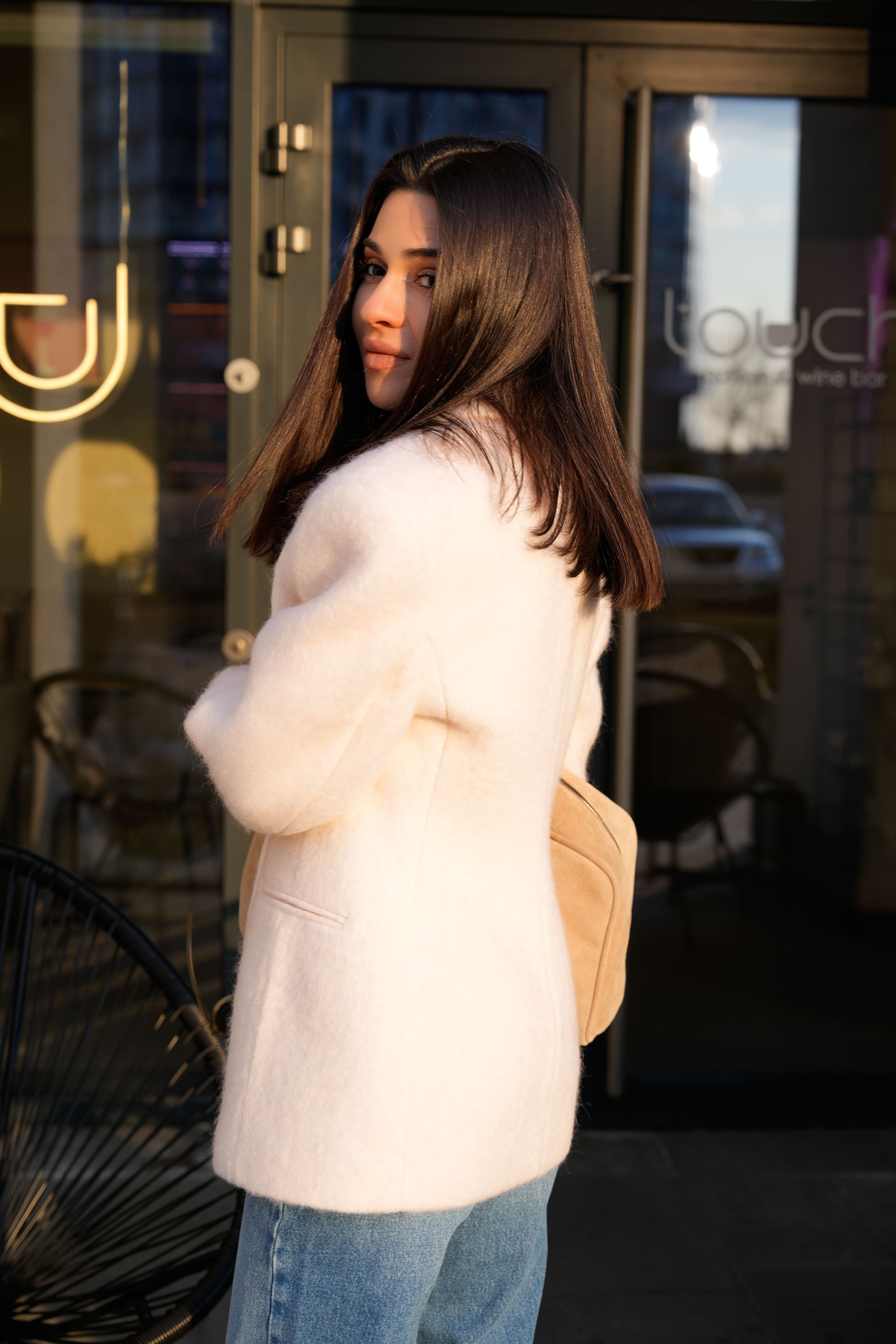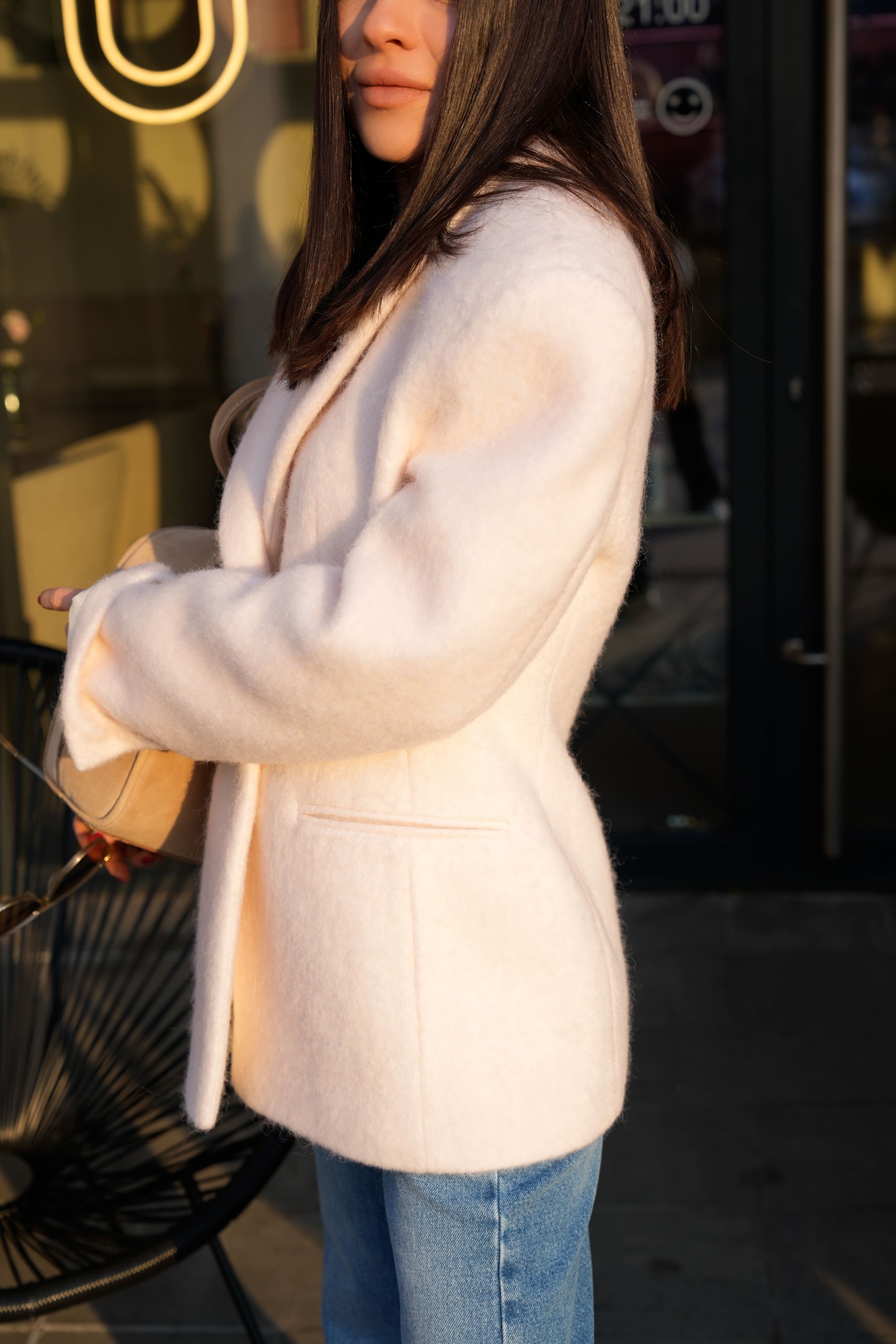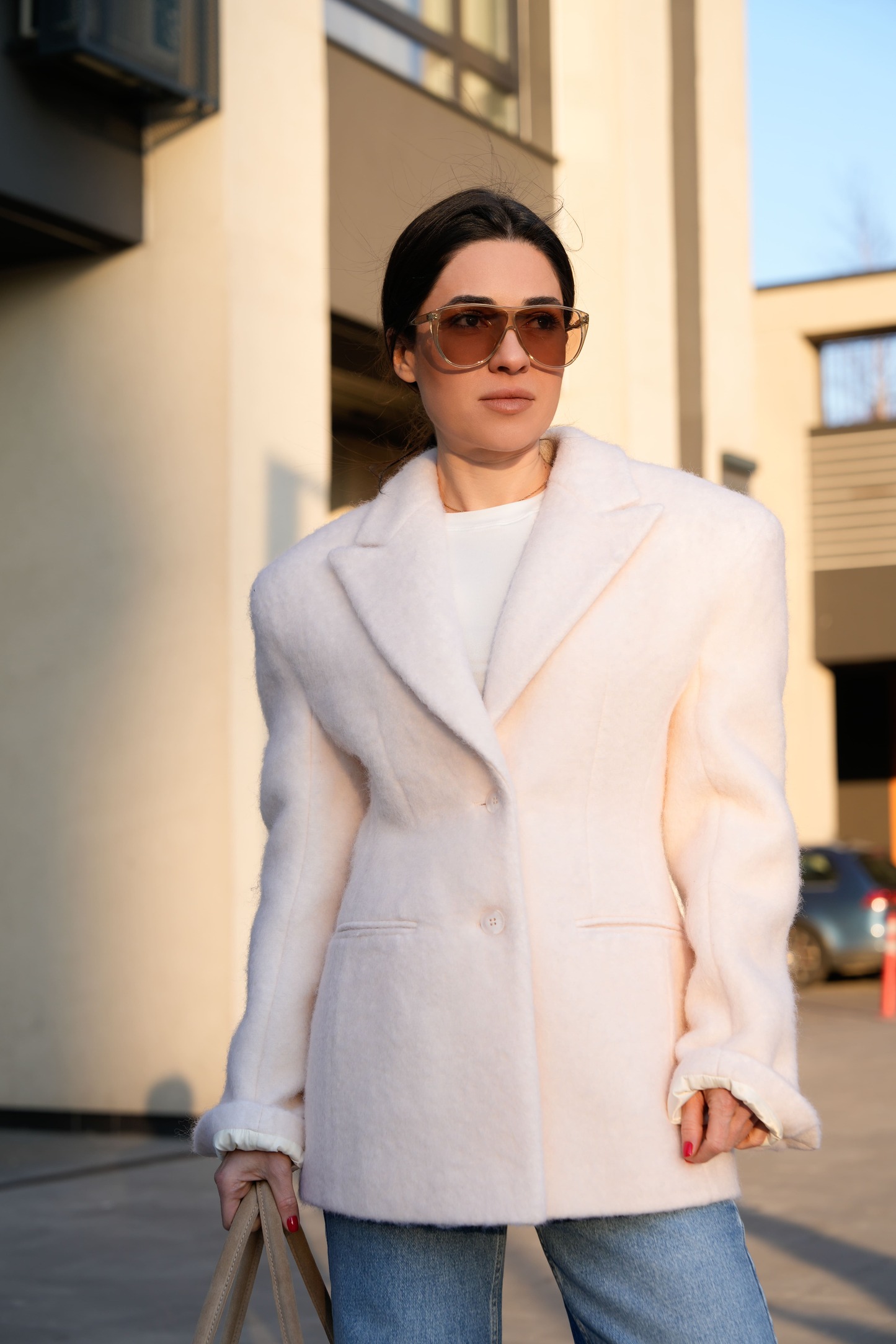 Елегантний молочний жакет Soft Touch — це втілення стриманої розкоші та сучасної жіночності. Завдяки м’якій фактурі з делікатним ворсом і світлому, благородному відтінку, модель виглядає дорого та витончено. Ідеально підходить для створення як базових повсякденних образів, так і більш зібраних, стильних луків у прохолодну пору.