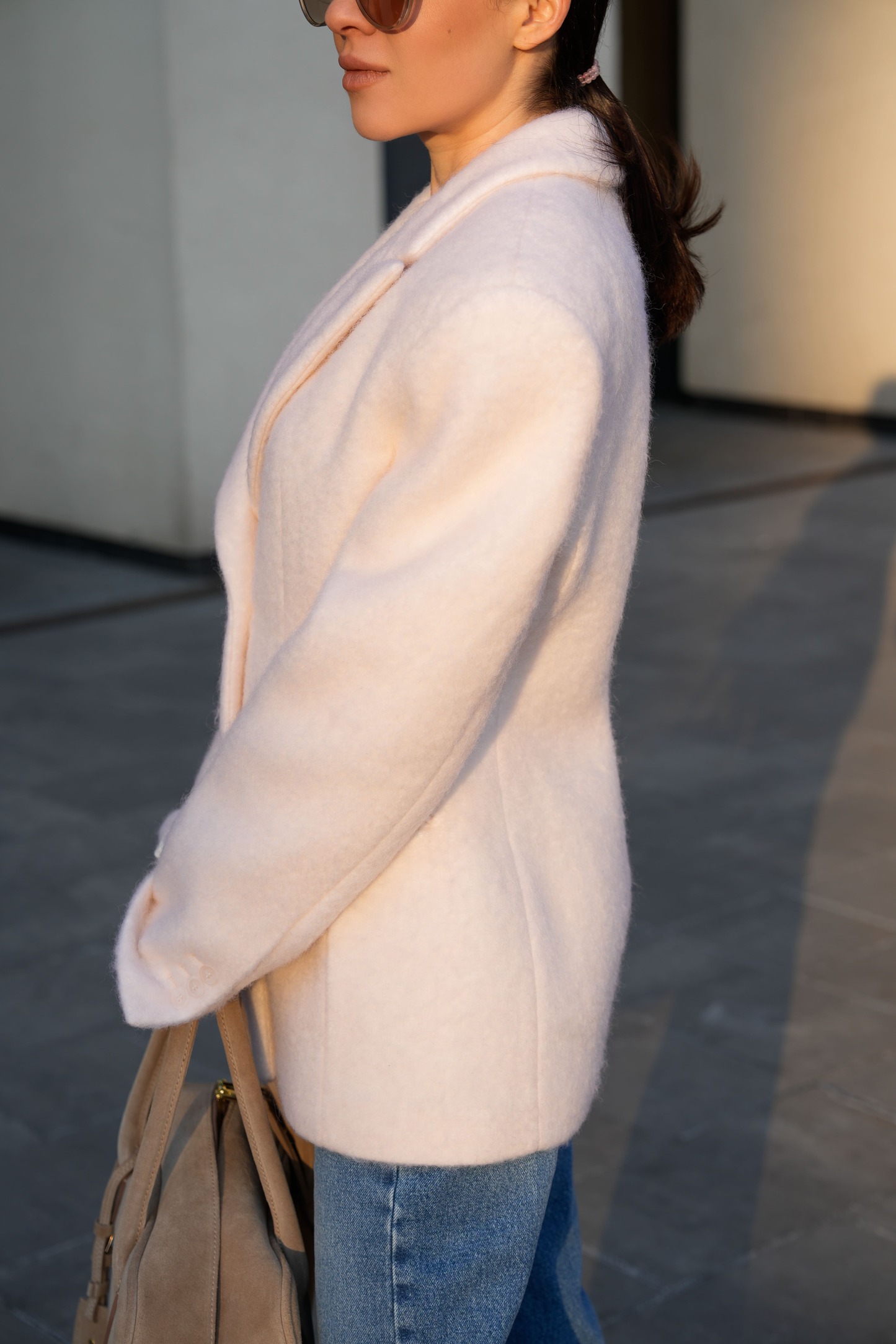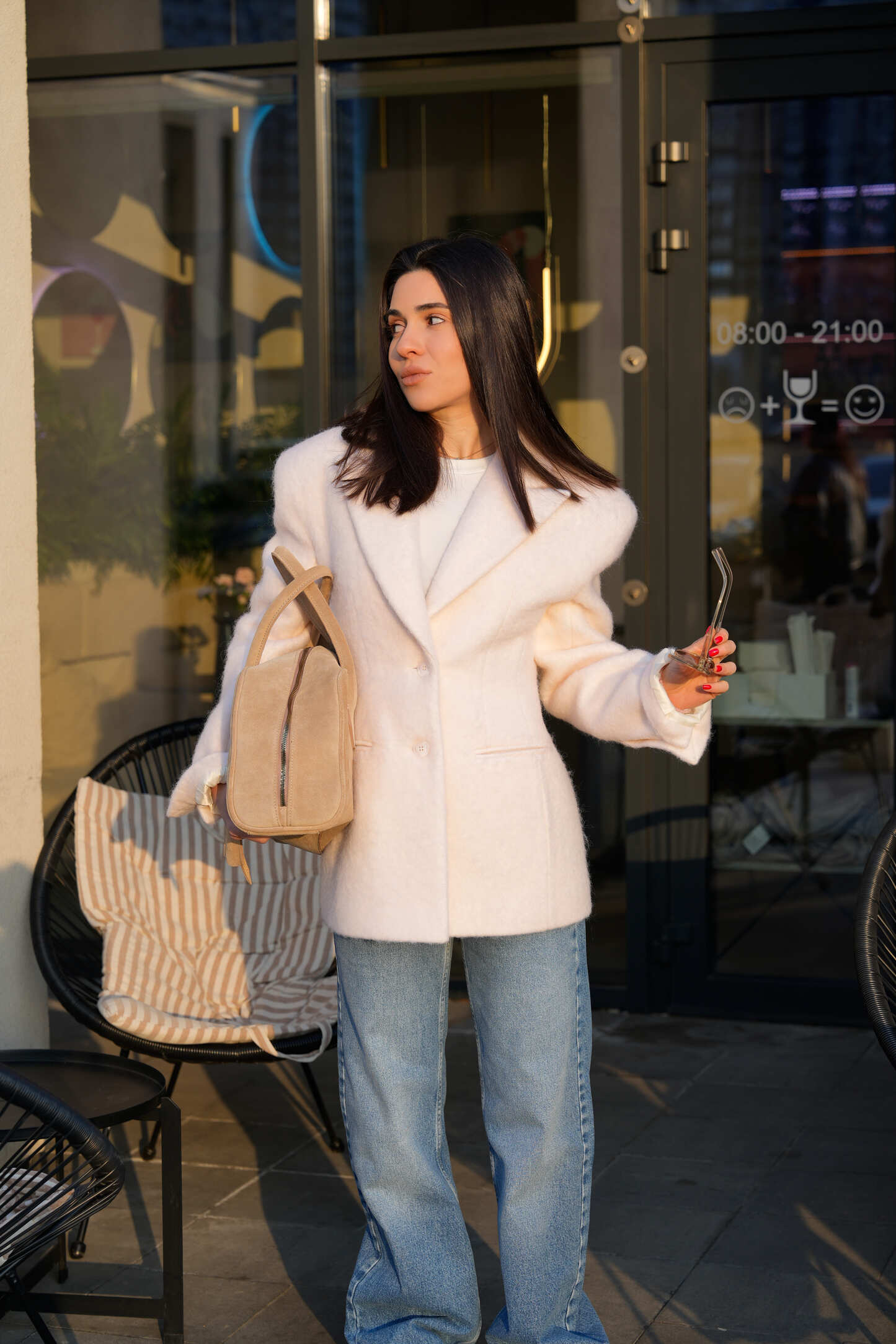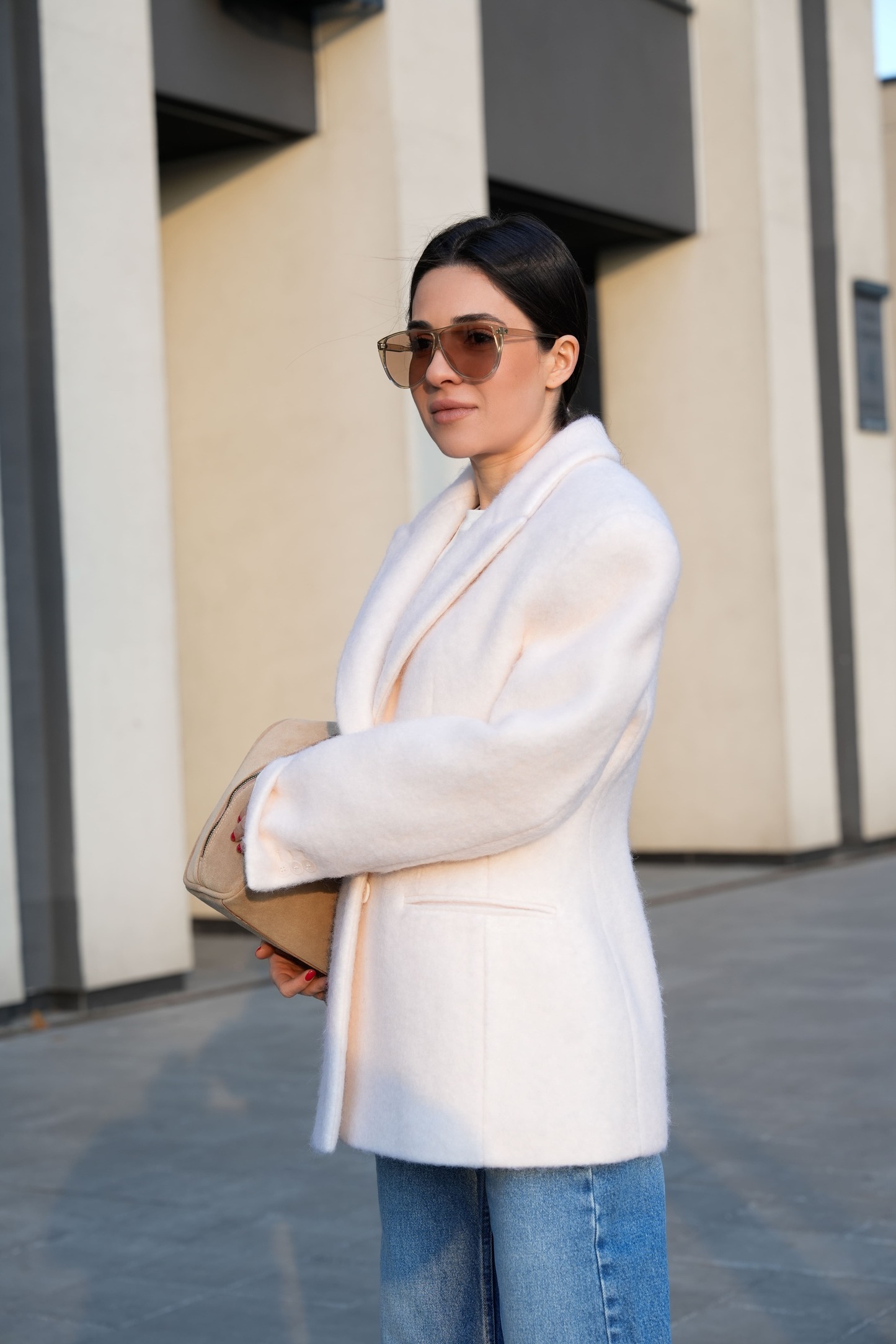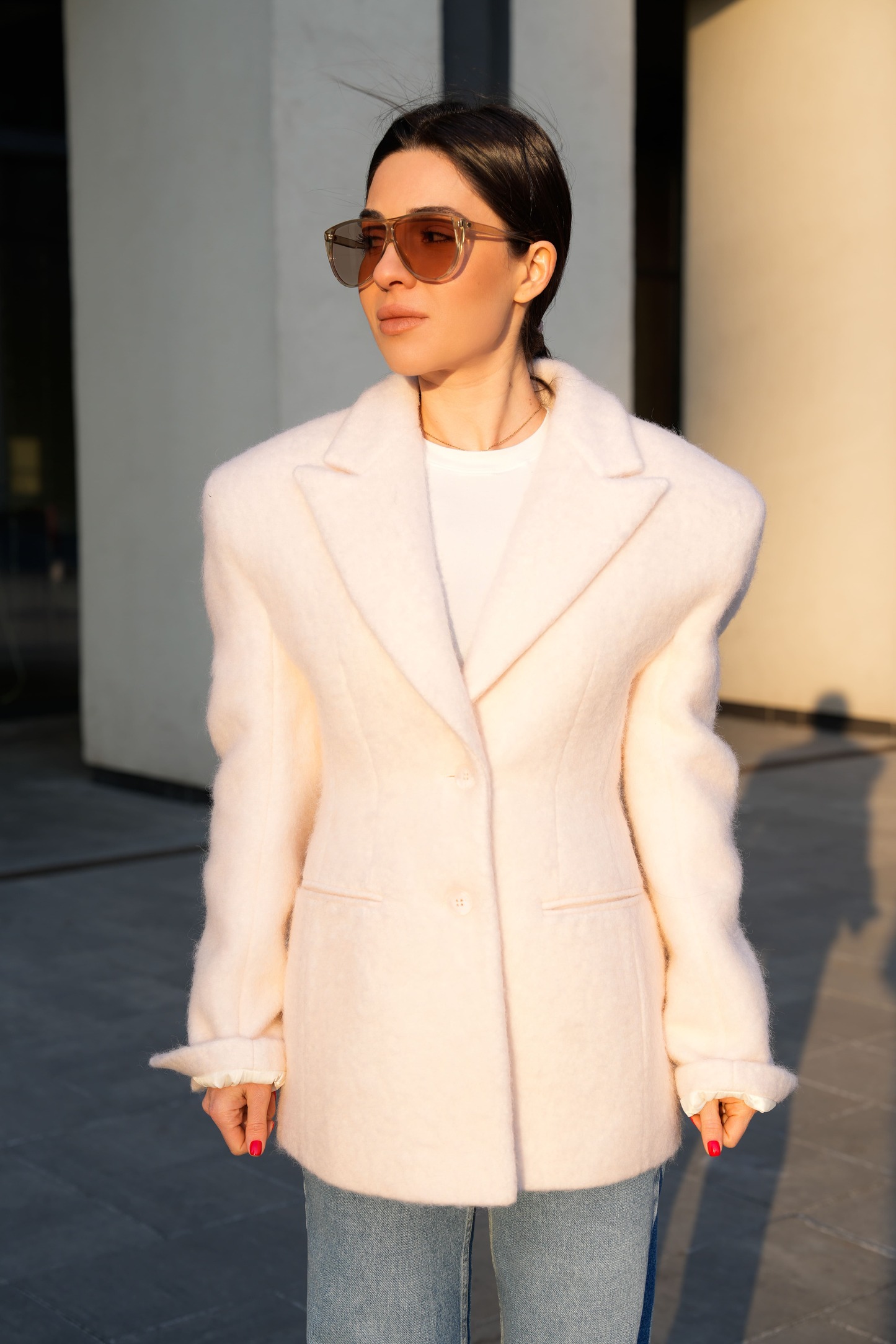 Елегантний молочний жакет Soft Touch — це втілення стриманої розкоші та сучасної жіночності. Завдяки м’якій фактурі з делікатним ворсом і світлому, благородному відтінку, модель виглядає дорого та витончено. Ідеально підходить для створення як базових повсякденних образів, так і більш зібраних, стильних луків у прохолодну пору.