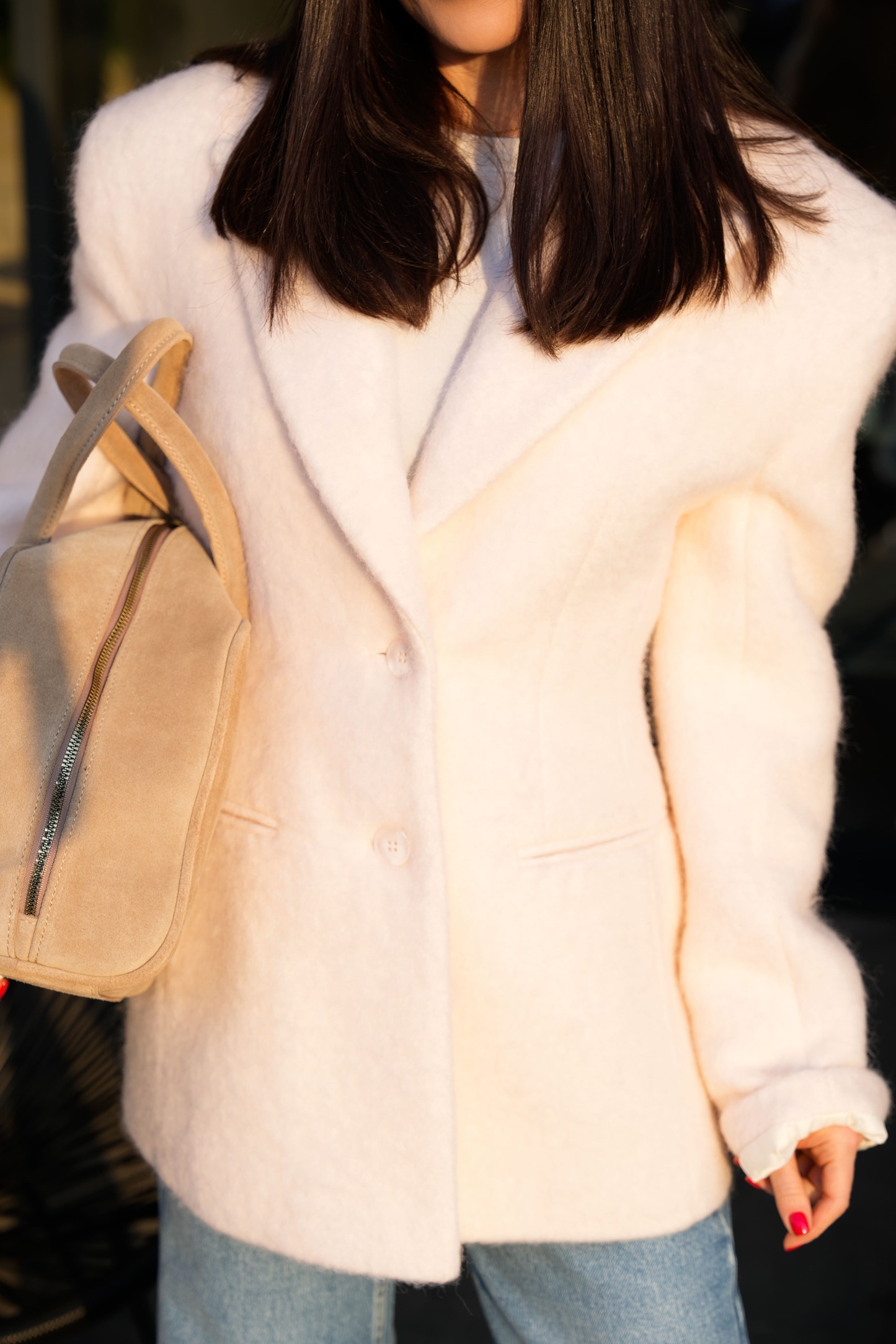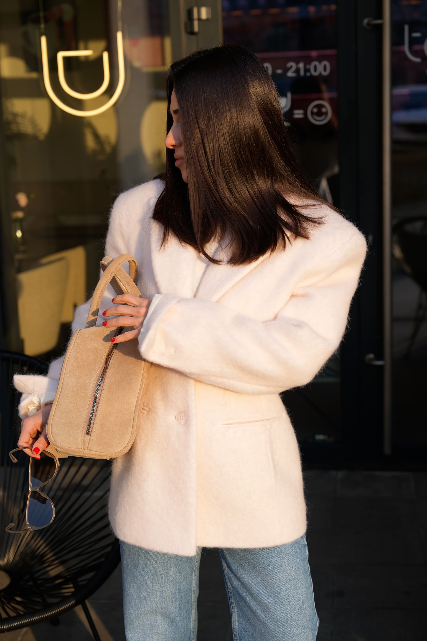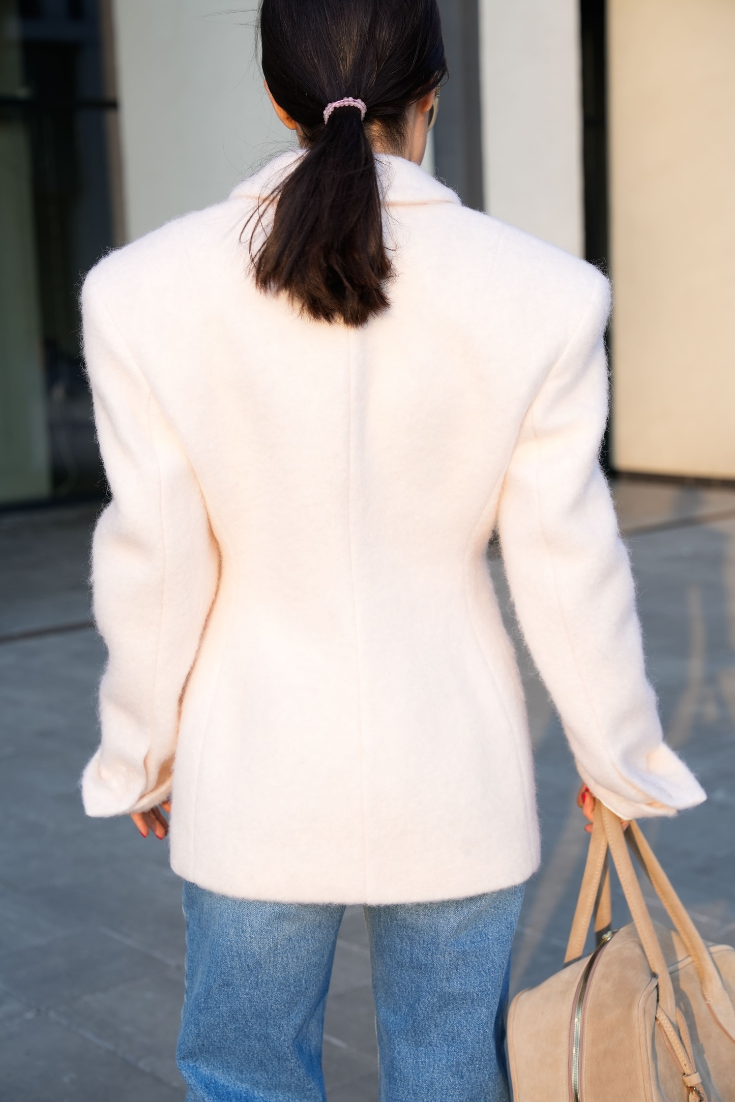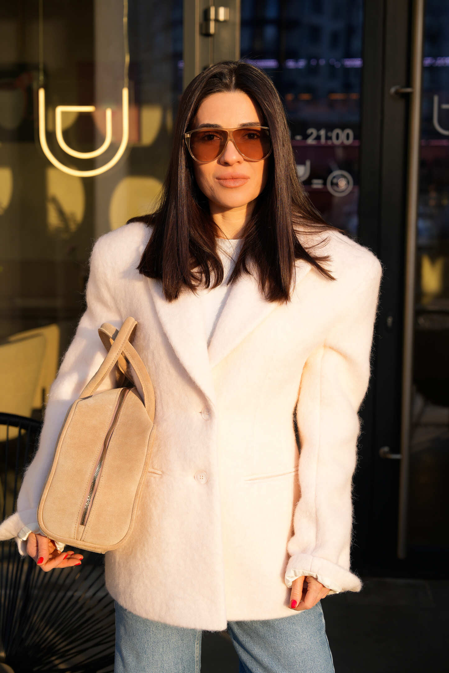 Елегантний молочний жакет Soft Touch — це втілення стриманої розкоші та сучасної жіночності. Завдяки м’якій фактурі з делікатним ворсом і світлому, благородному відтінку, модель виглядає дорого та витончено. Ідеально підходить для створення як базових повсякденних образів, так і більш зібраних, стильних луків у прохолодну пору.